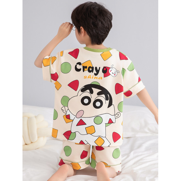 兒童睡衣純棉短袖卡通蠟筆小新2025新款套裝男童薄款家居服可外穿