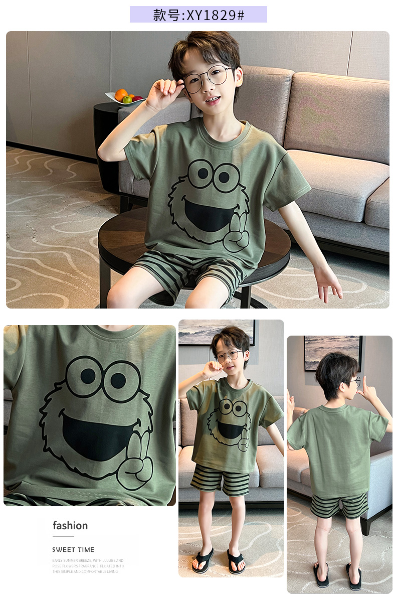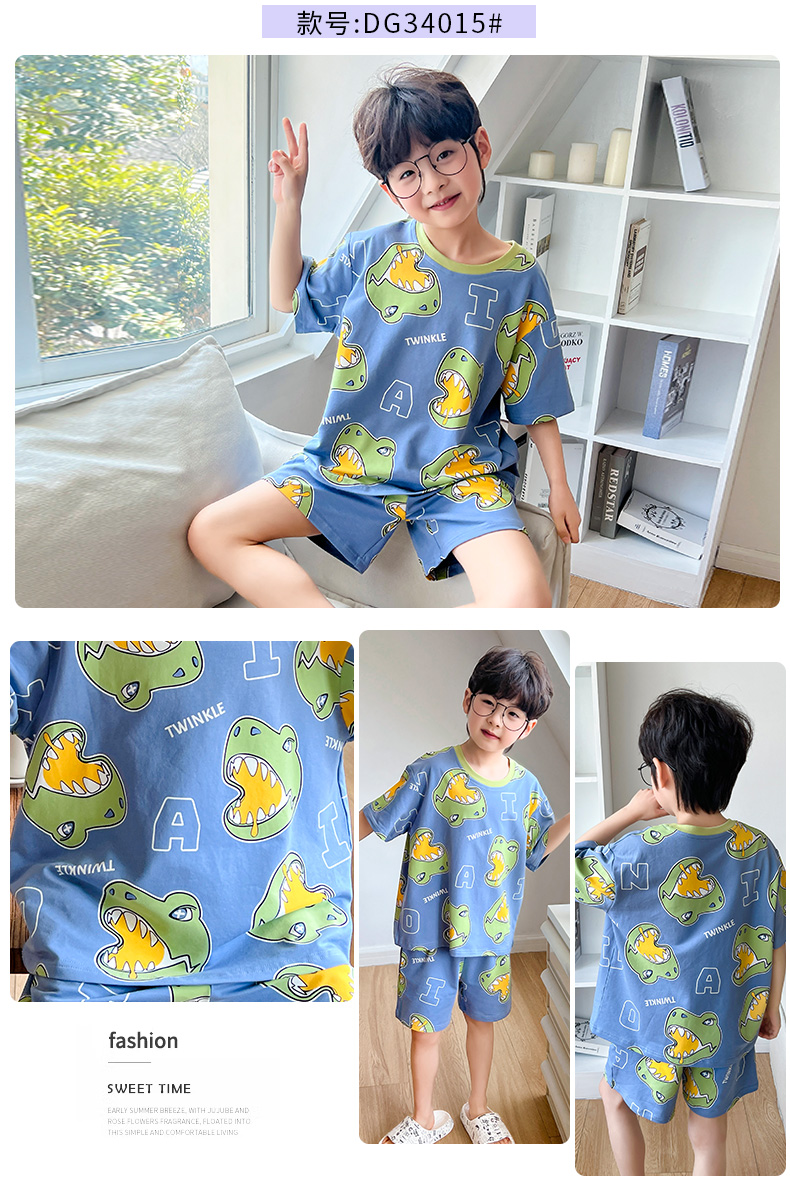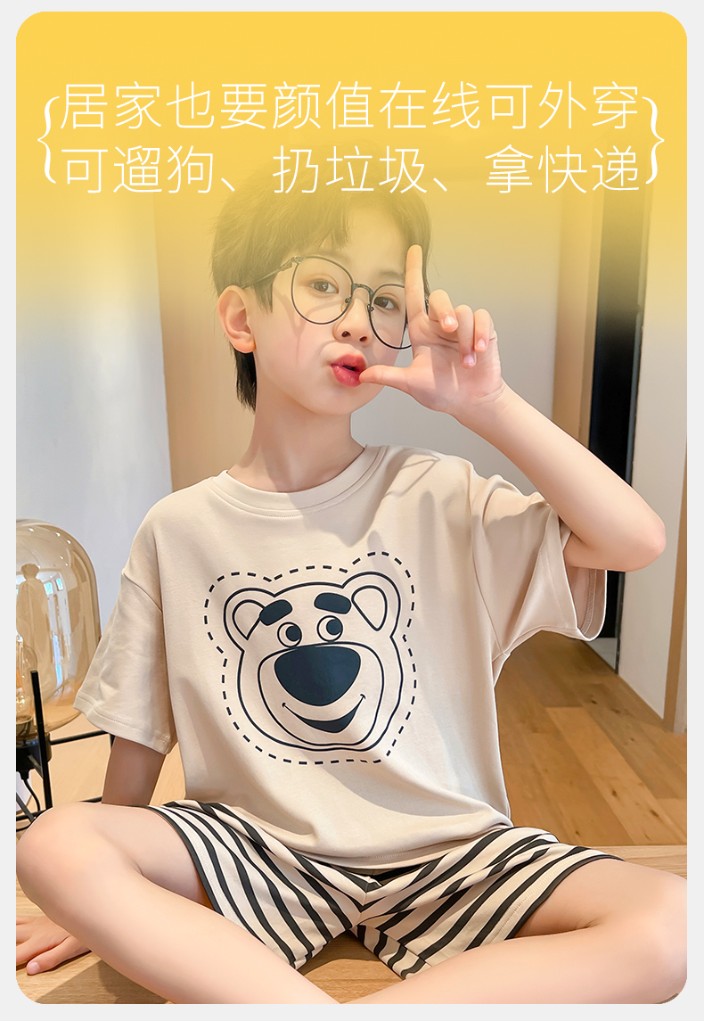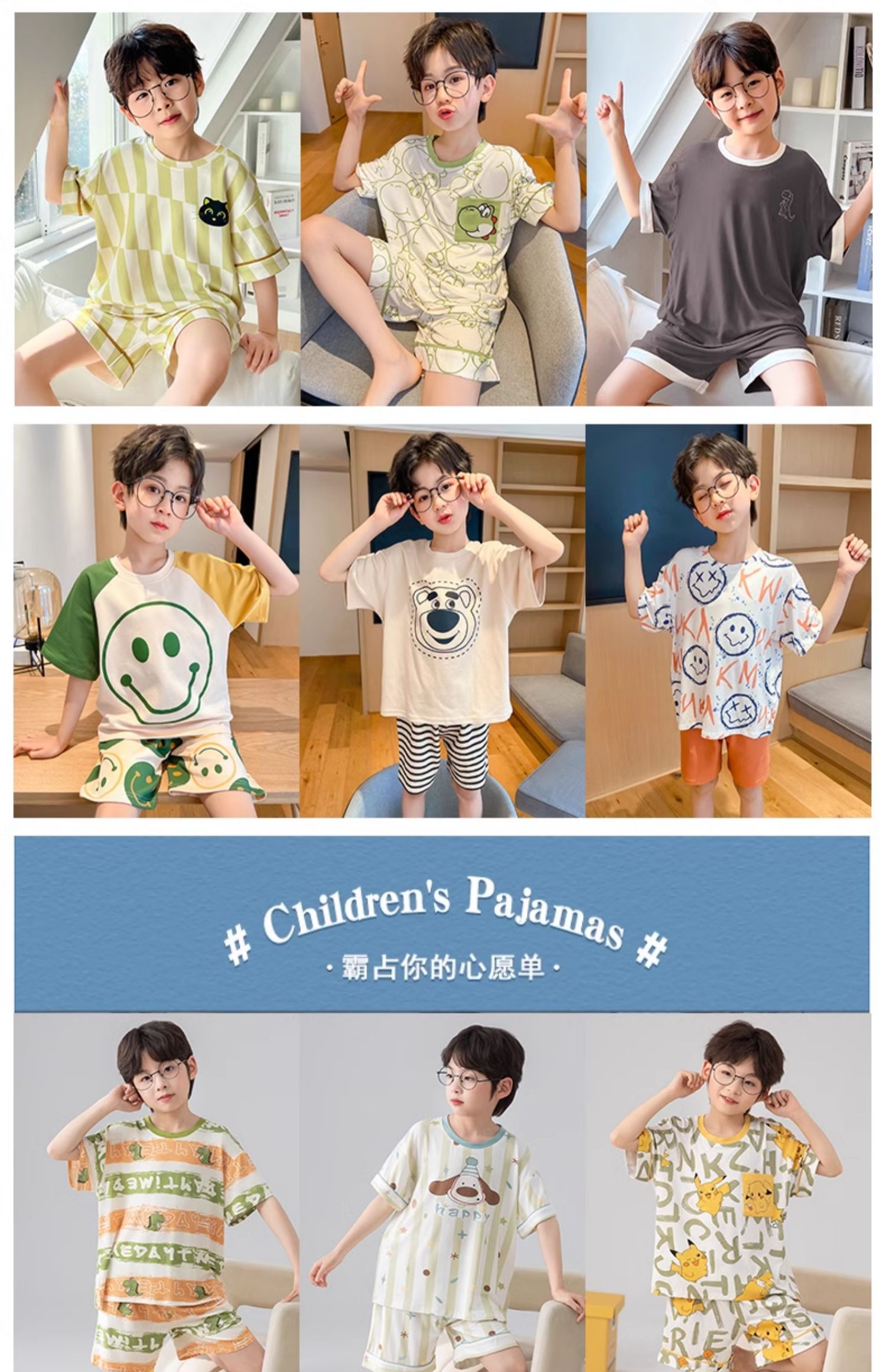 芬騰兒童男童睡衣夏季薄款短袖純棉夏天家居服中大童男孩套裝新款
