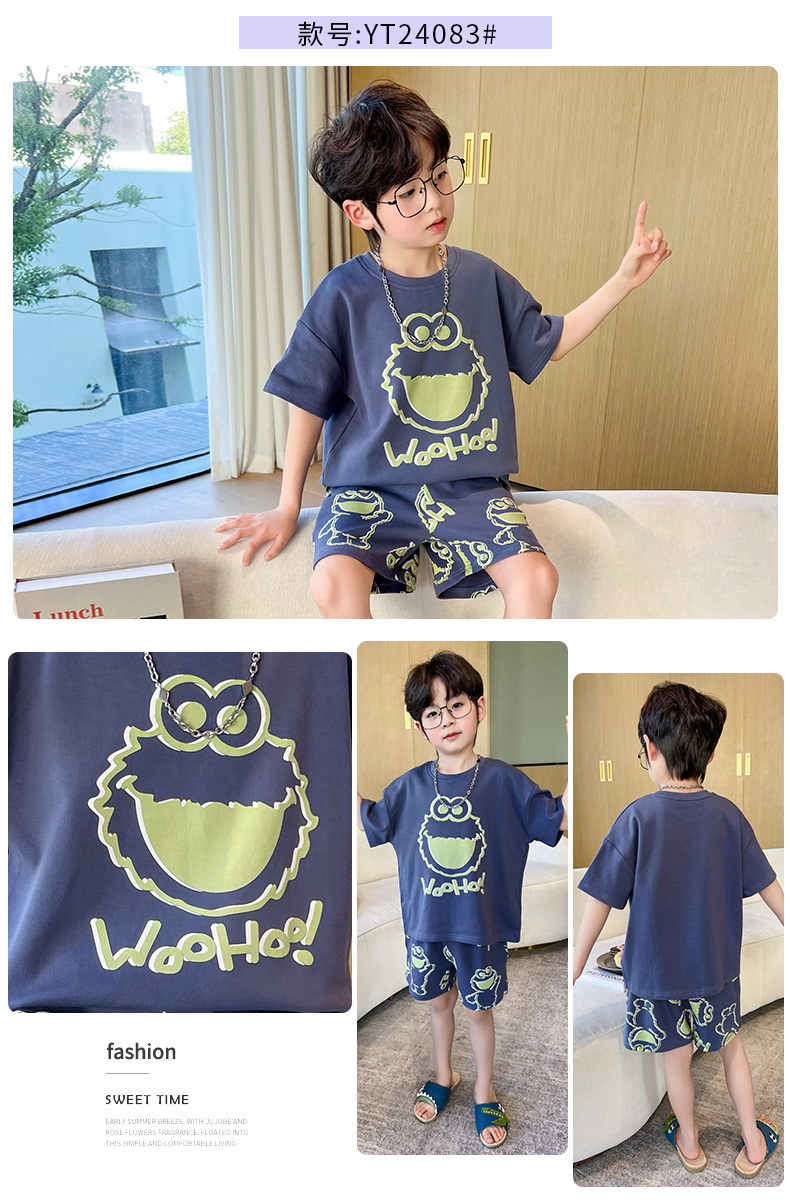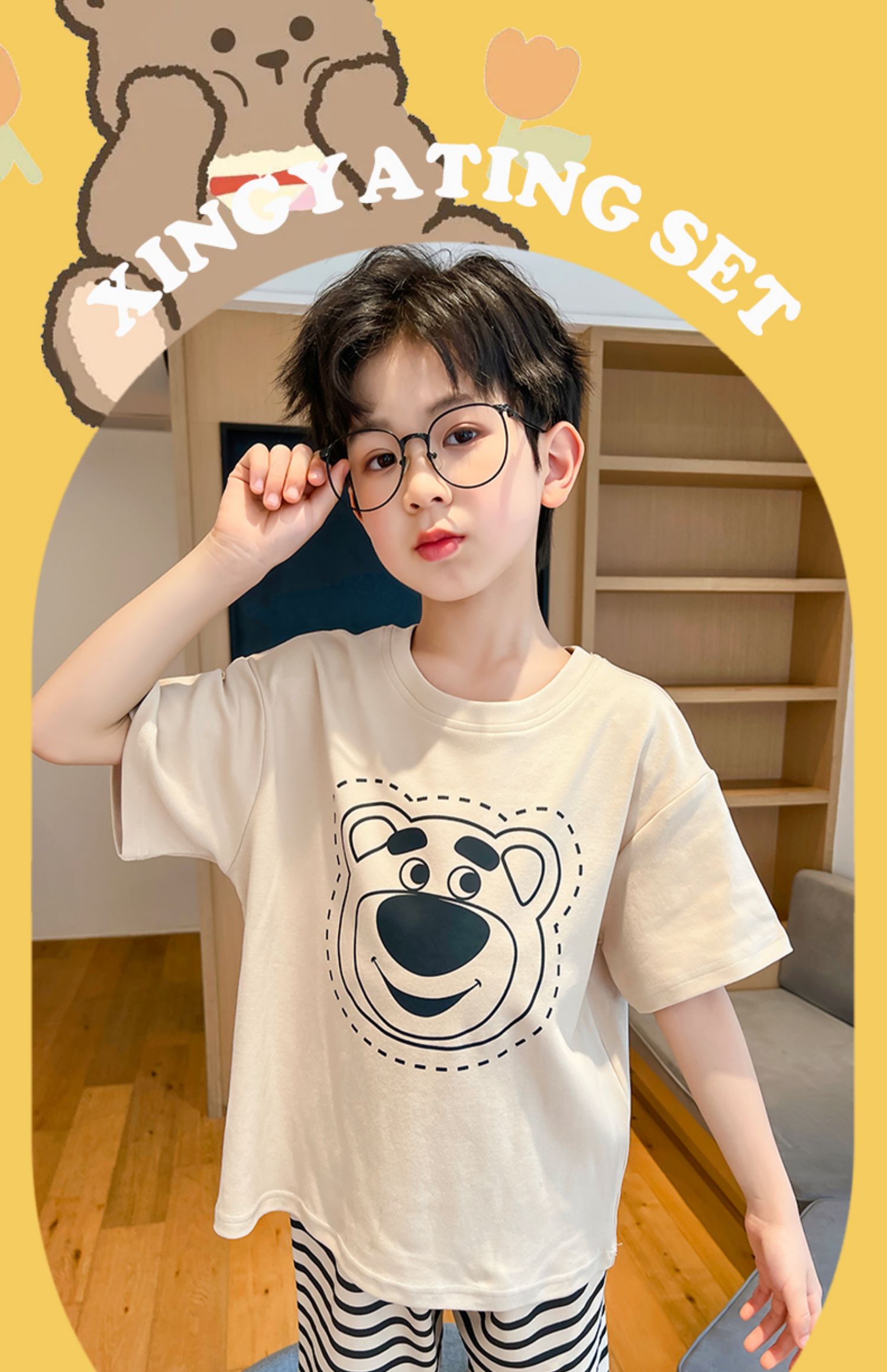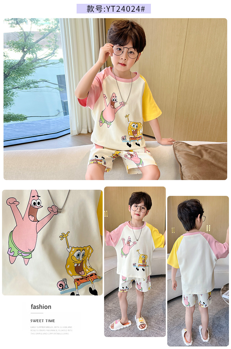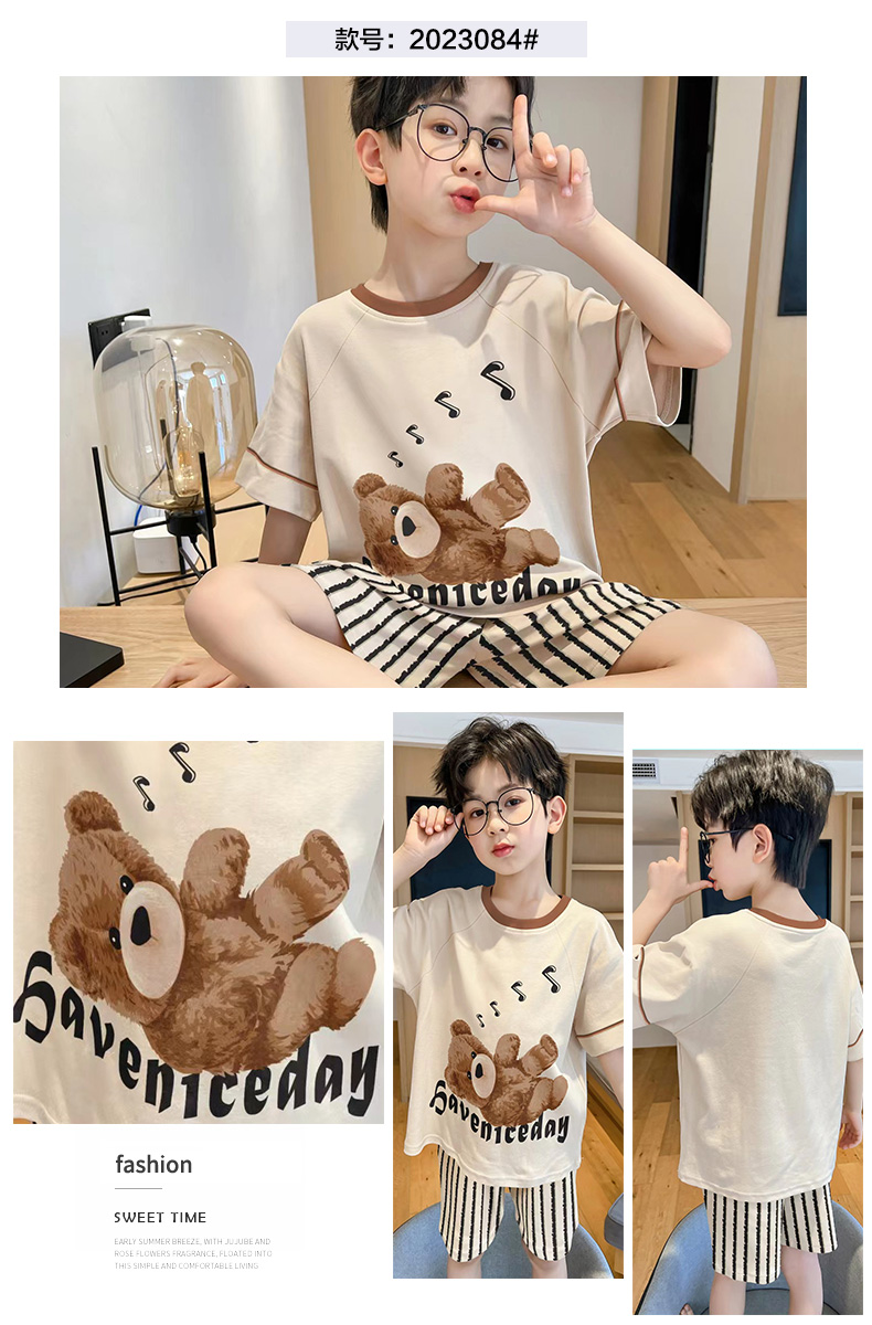 芬騰兒童男童睡衣夏季薄款短袖純棉夏天家居服中大童男孩套裝新款