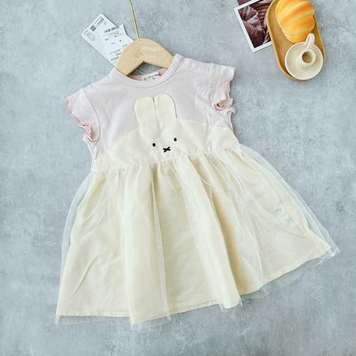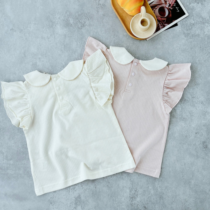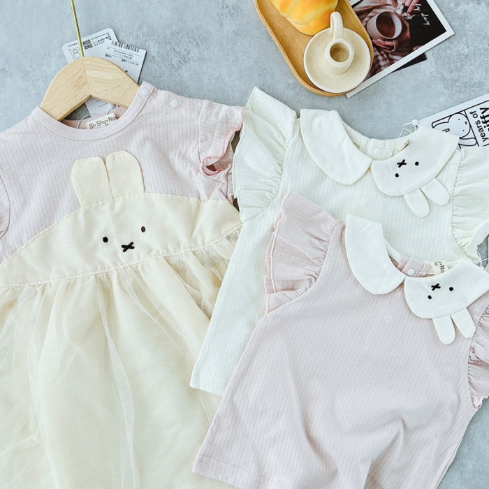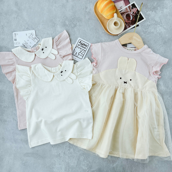日單米菲兒童夏季短袖娃娃領女童網眼純棉上衣短袖無袖女寶連衣裙