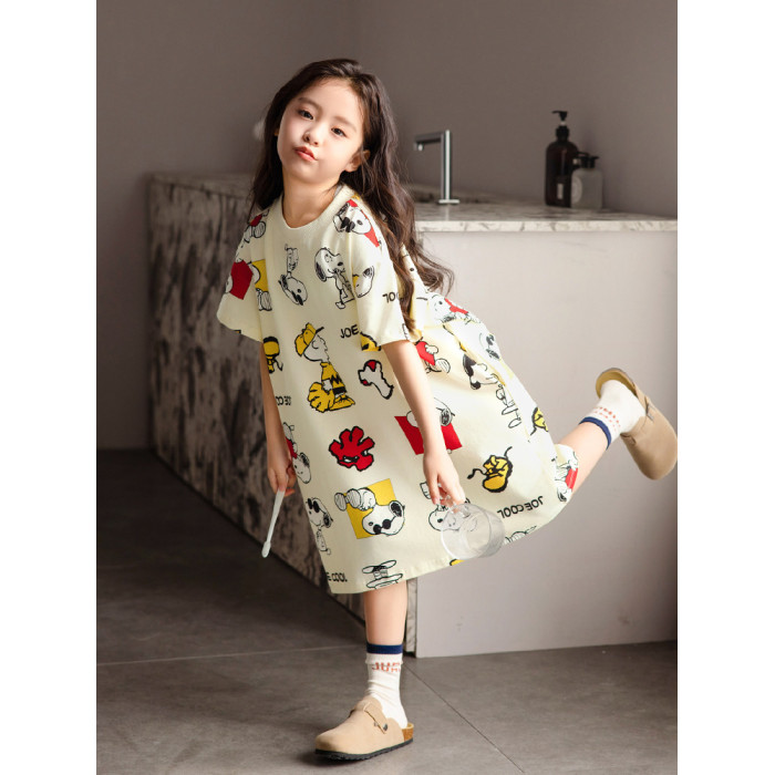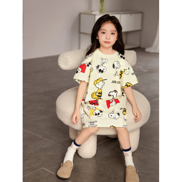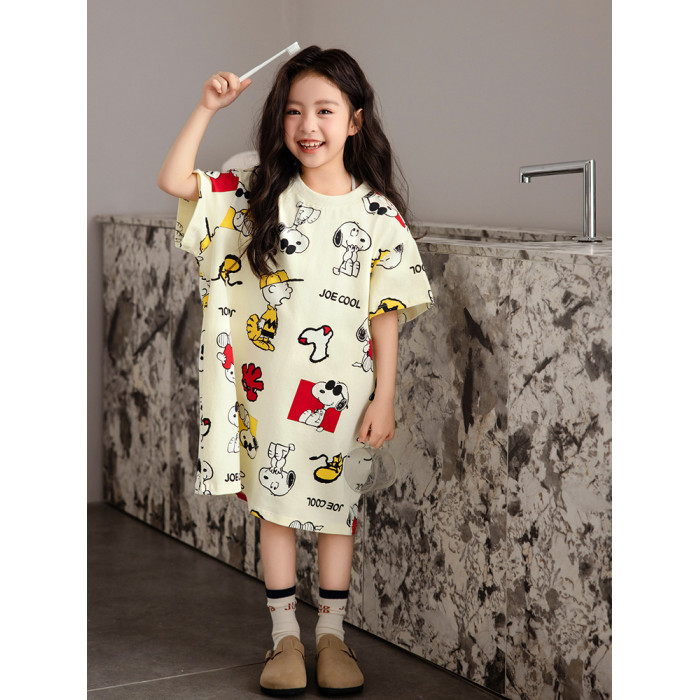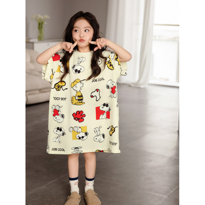 貝妍兒童睡衣夏季新款可愛史努比親子裝薄款純棉短袖女童睡裙