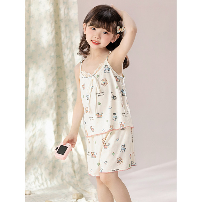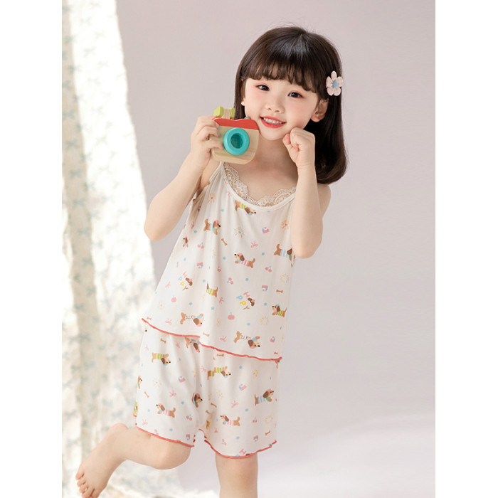 女童睡衣2025新款夏季莫代爾吊帶短褲親子裝可愛超萌女大童家居服