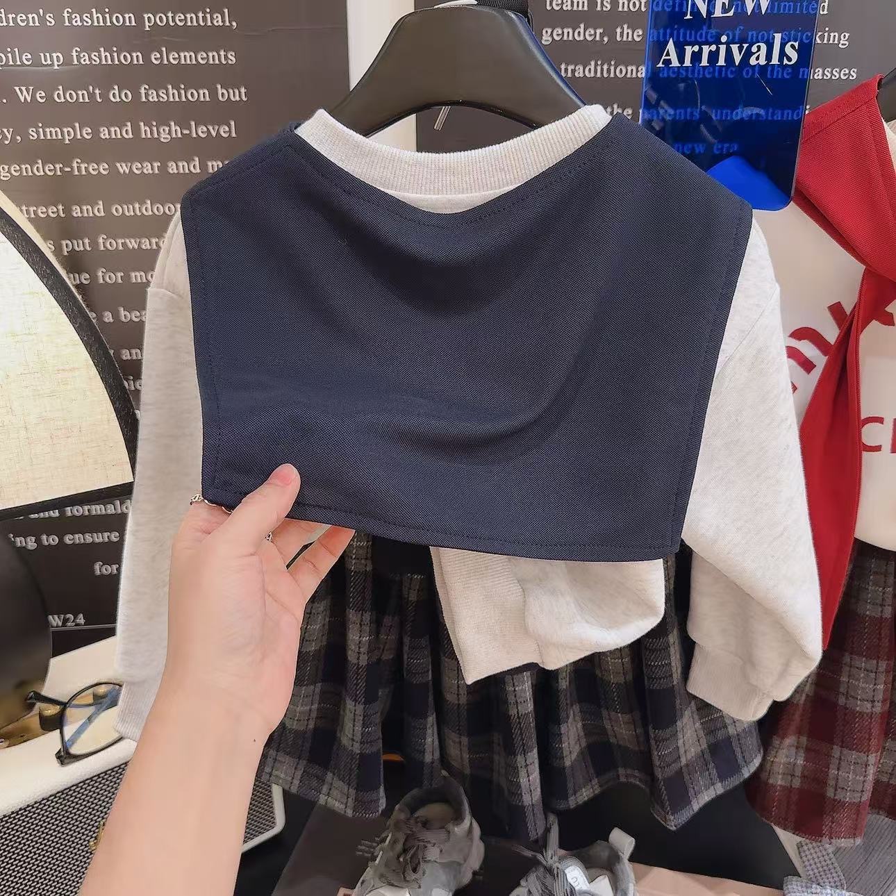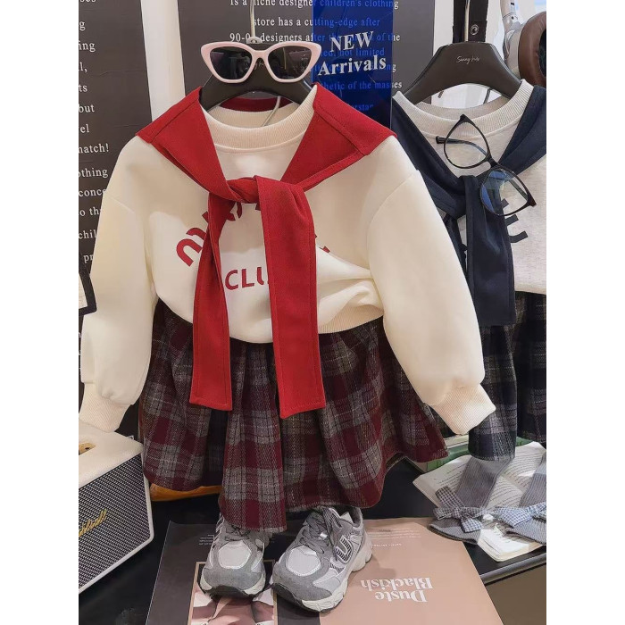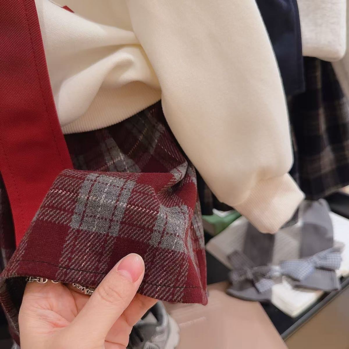 女童三件套秋季親子裝韓版英倫學院風衛衣格子裙套裝洋氣潮中大童
