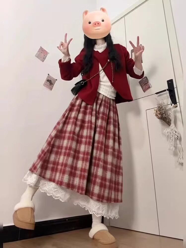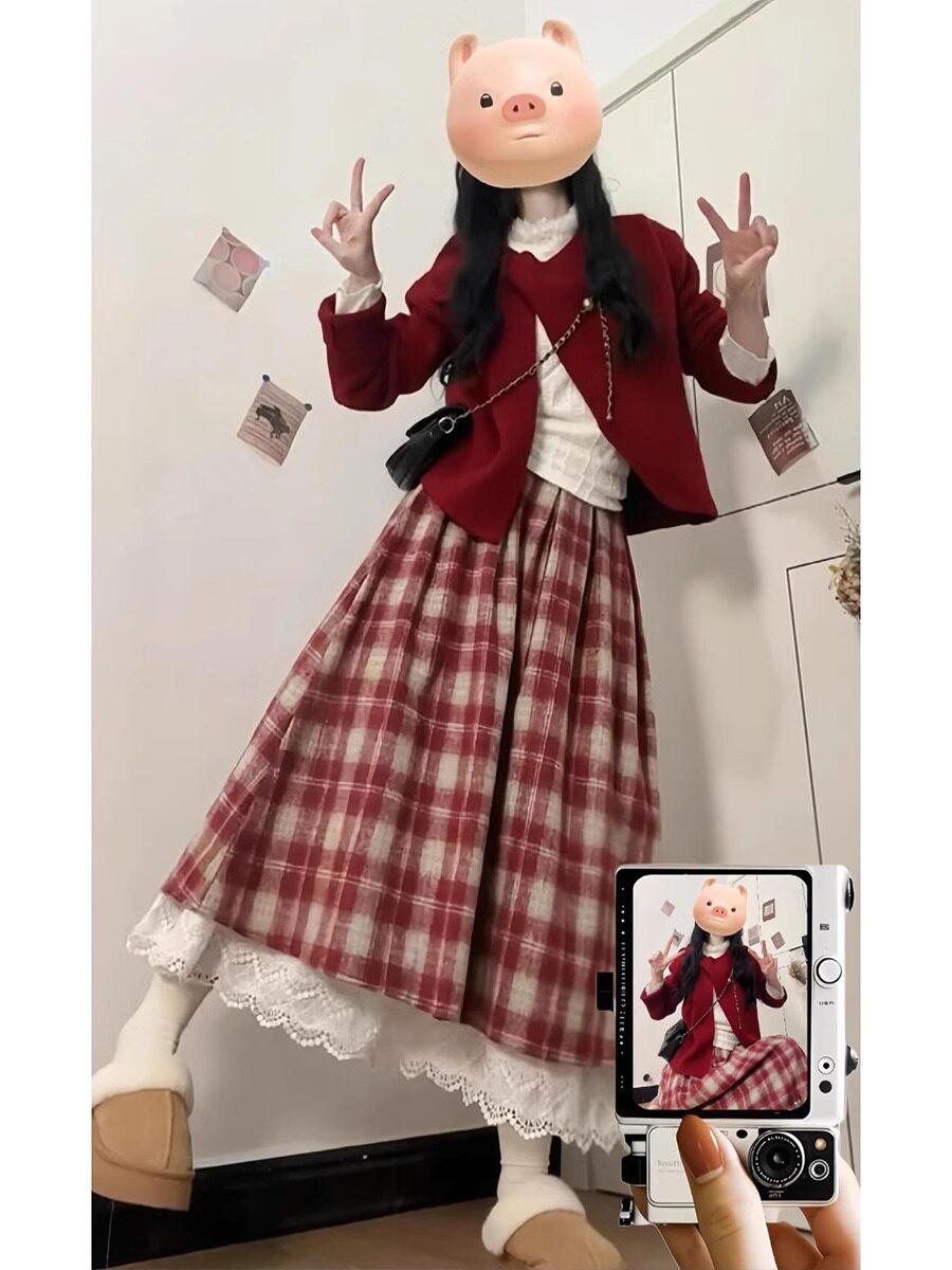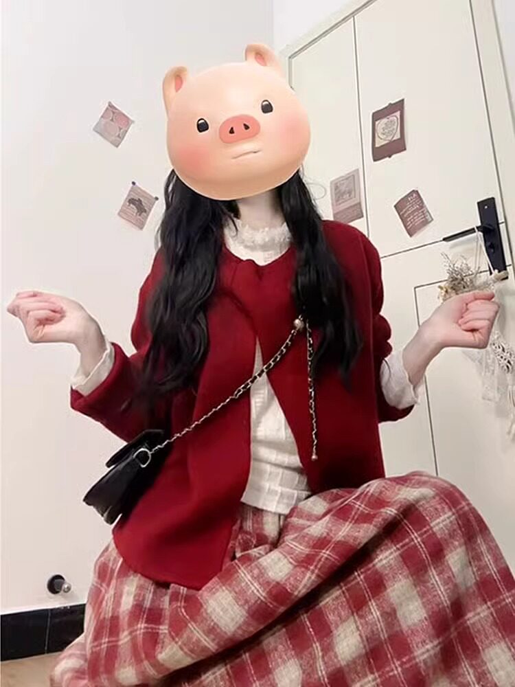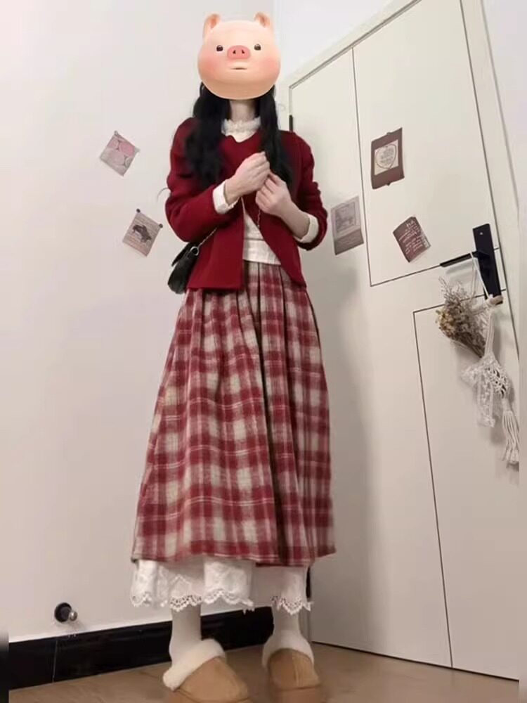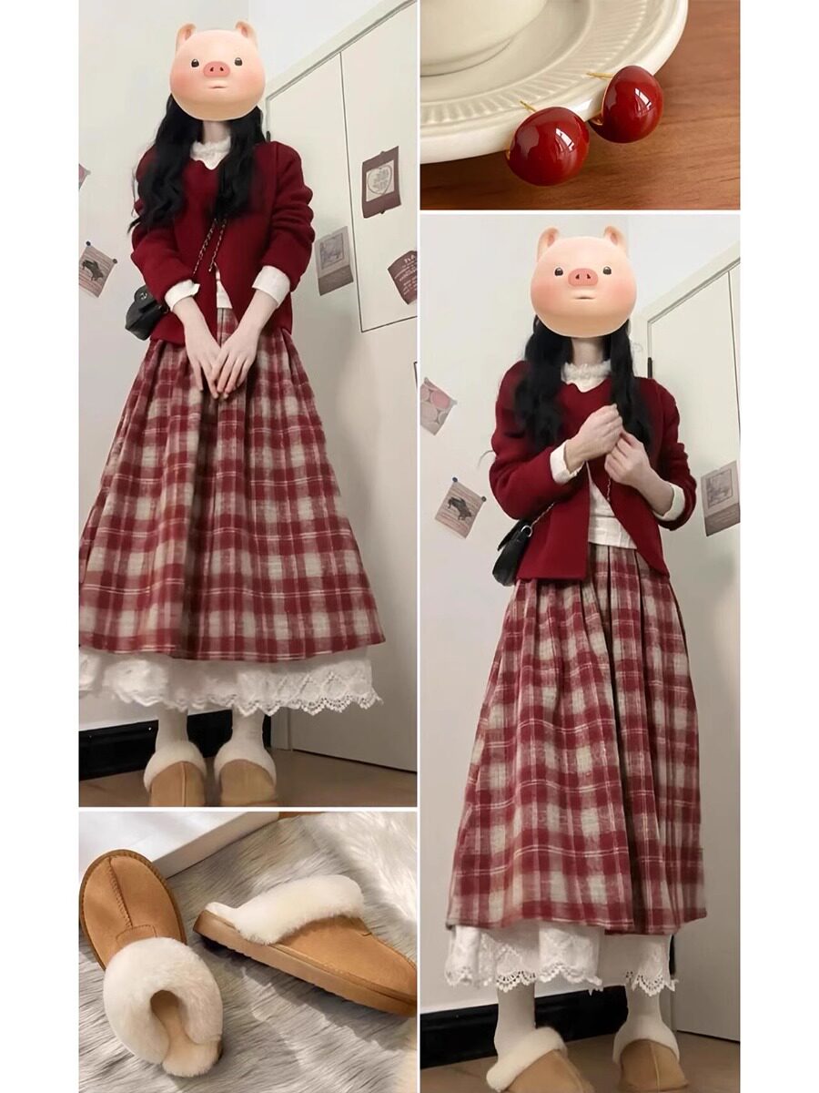 入冬搭配一整套大碼胖mm新年聖誕紅色毛衣裙子韓系減齡復古套裝女