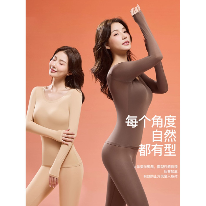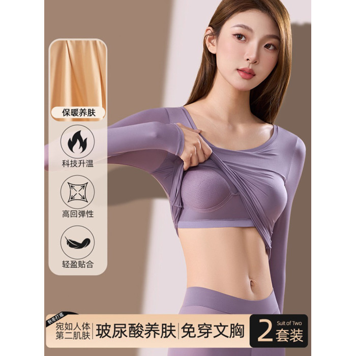 保暖內衣女帶胸墊隱形無痕打底秋衣秋褲套裝超薄玻尿酸美膚肌底衣