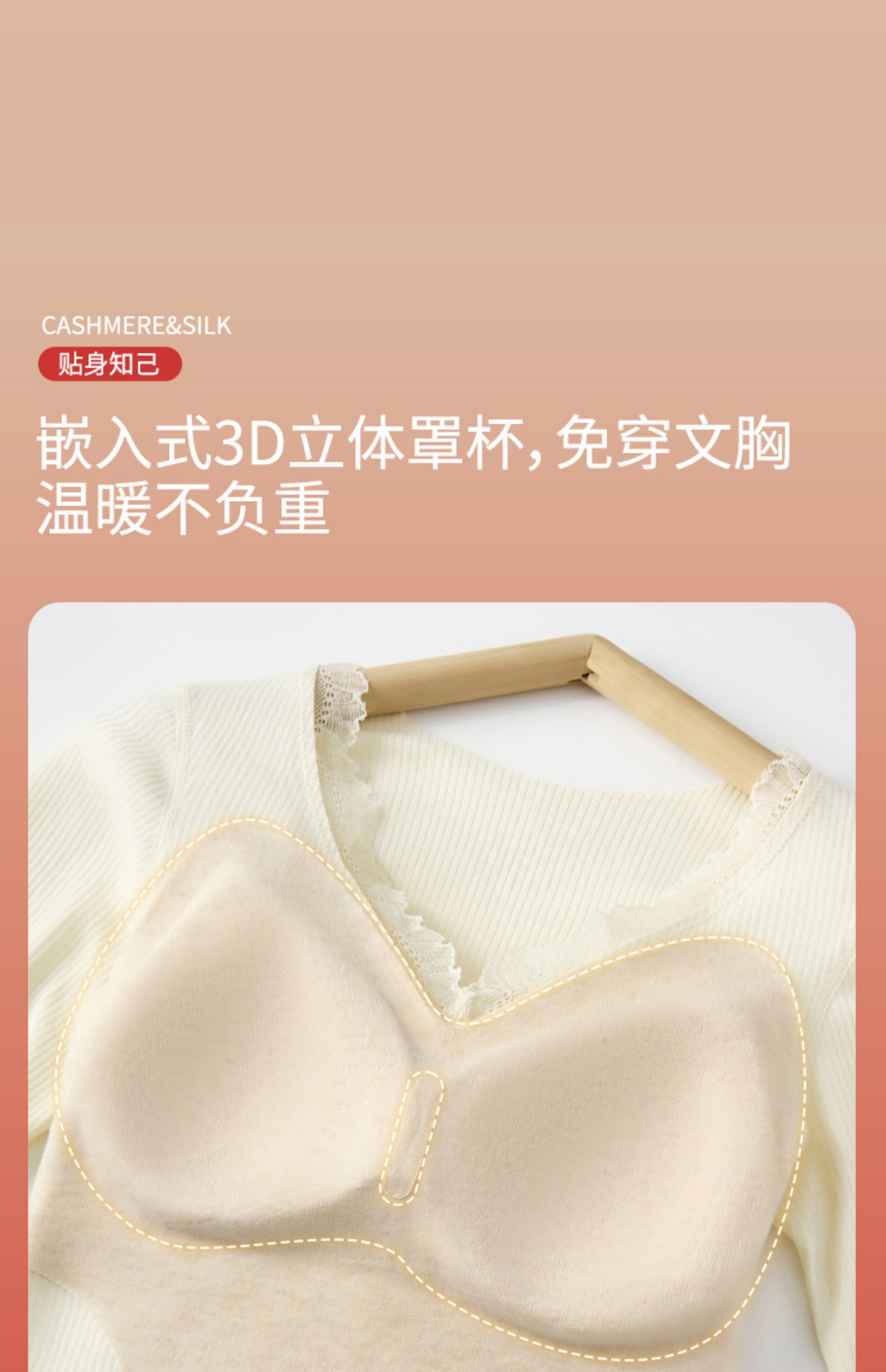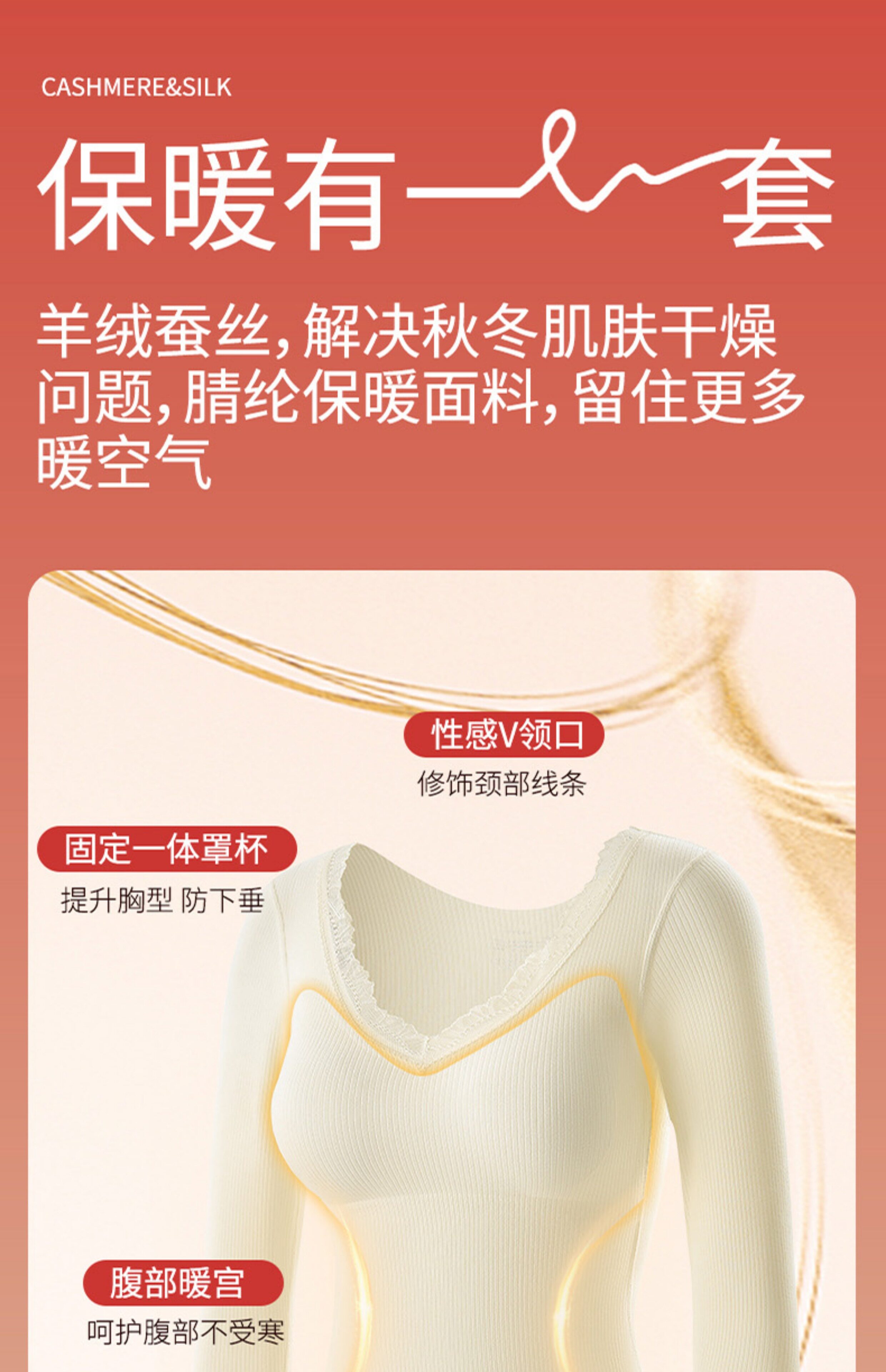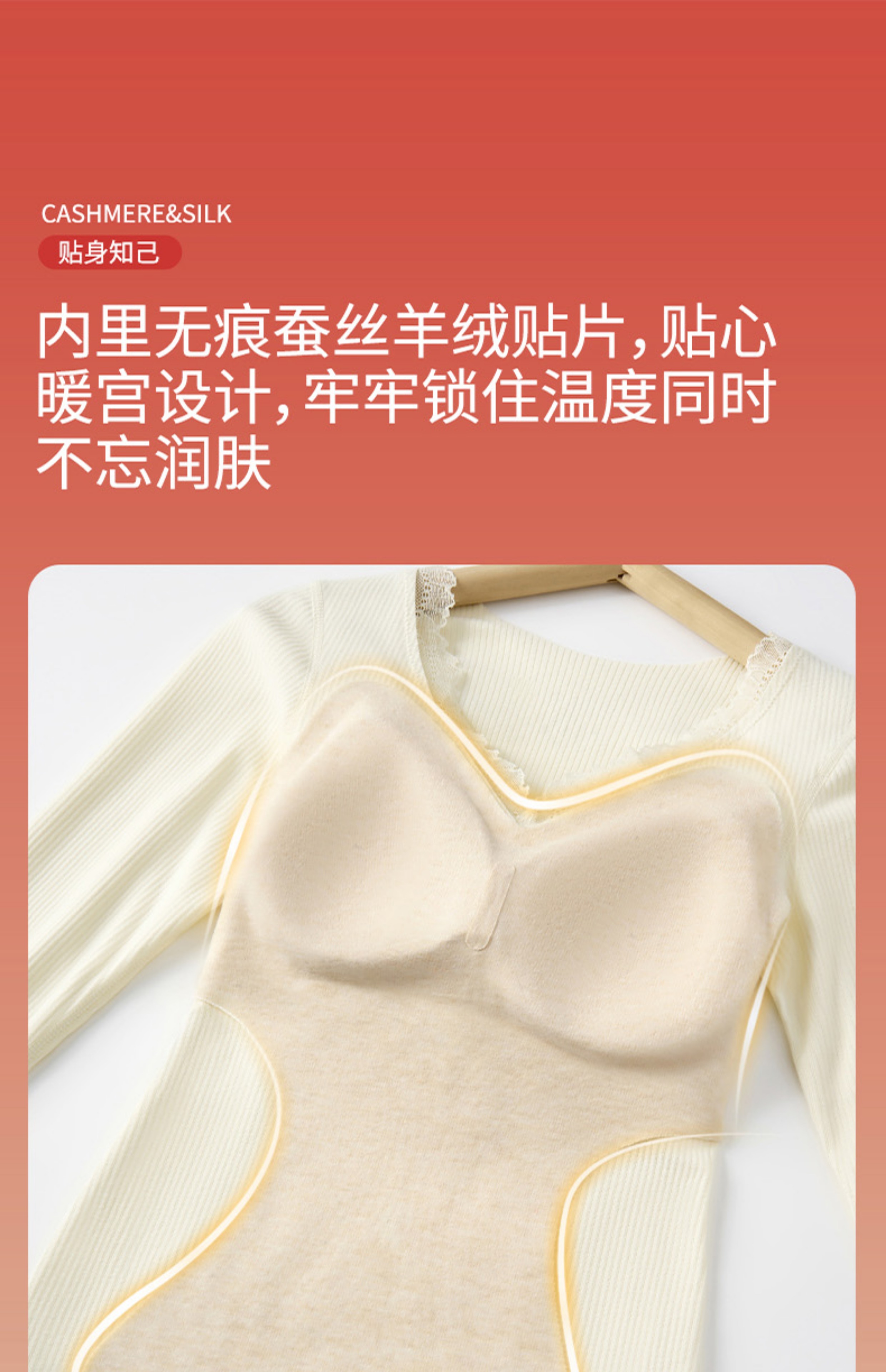 7A羊絨保暖內衣女加絨加厚秋衣秋褲套裝2025秋冬季新款帶胸墊上衣