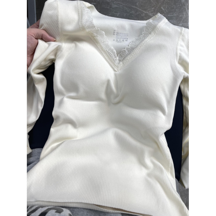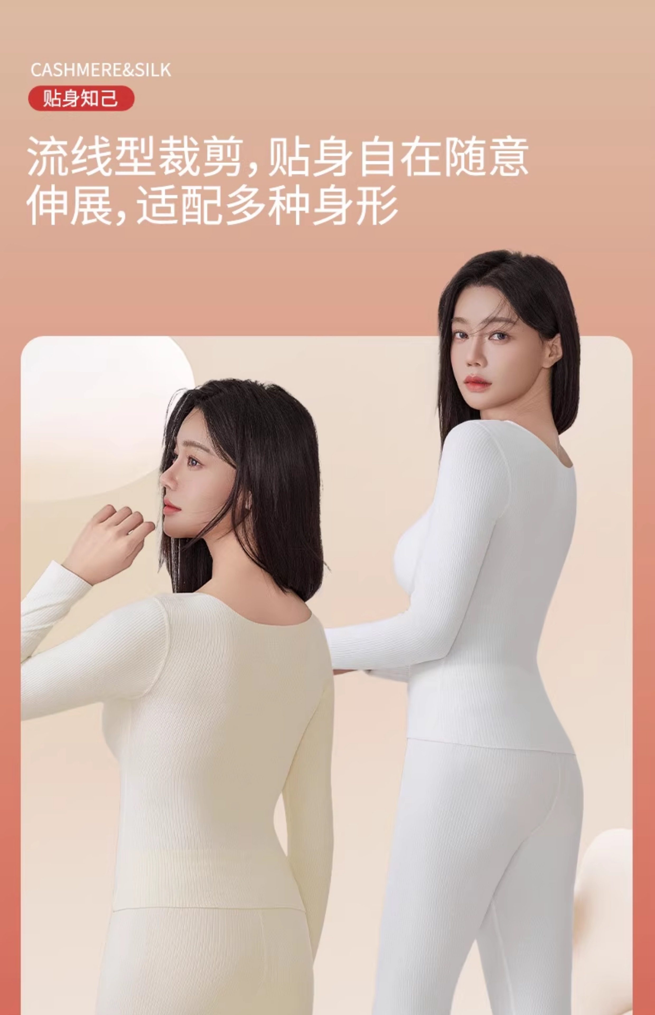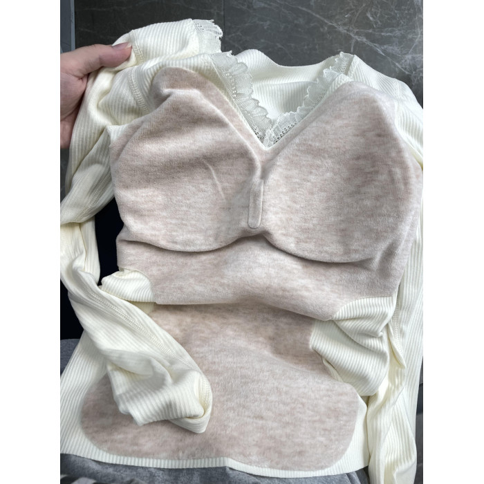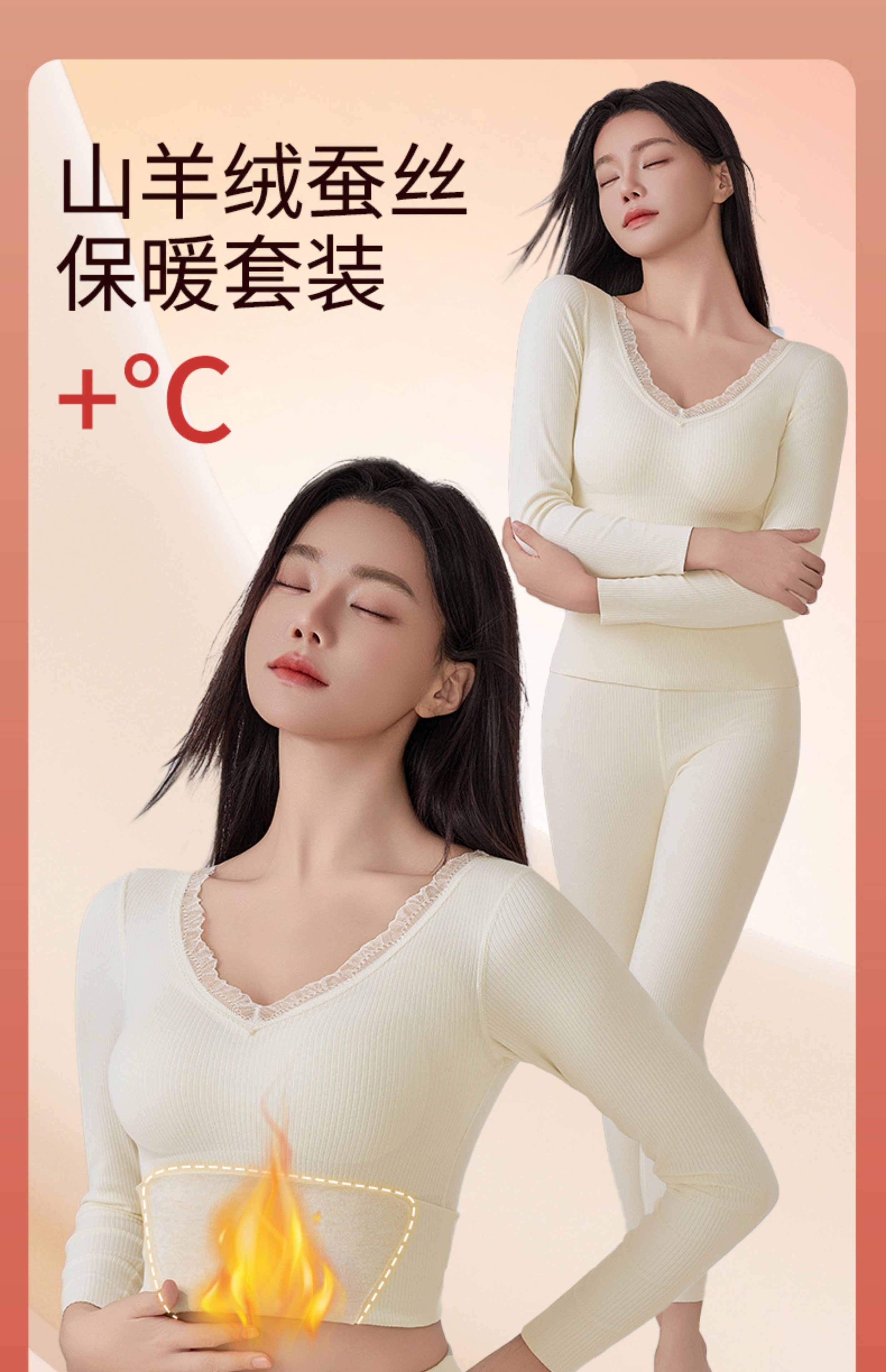 7A羊絨保暖內衣女加絨加厚秋衣秋褲套裝2025秋冬季新款帶胸墊上衣