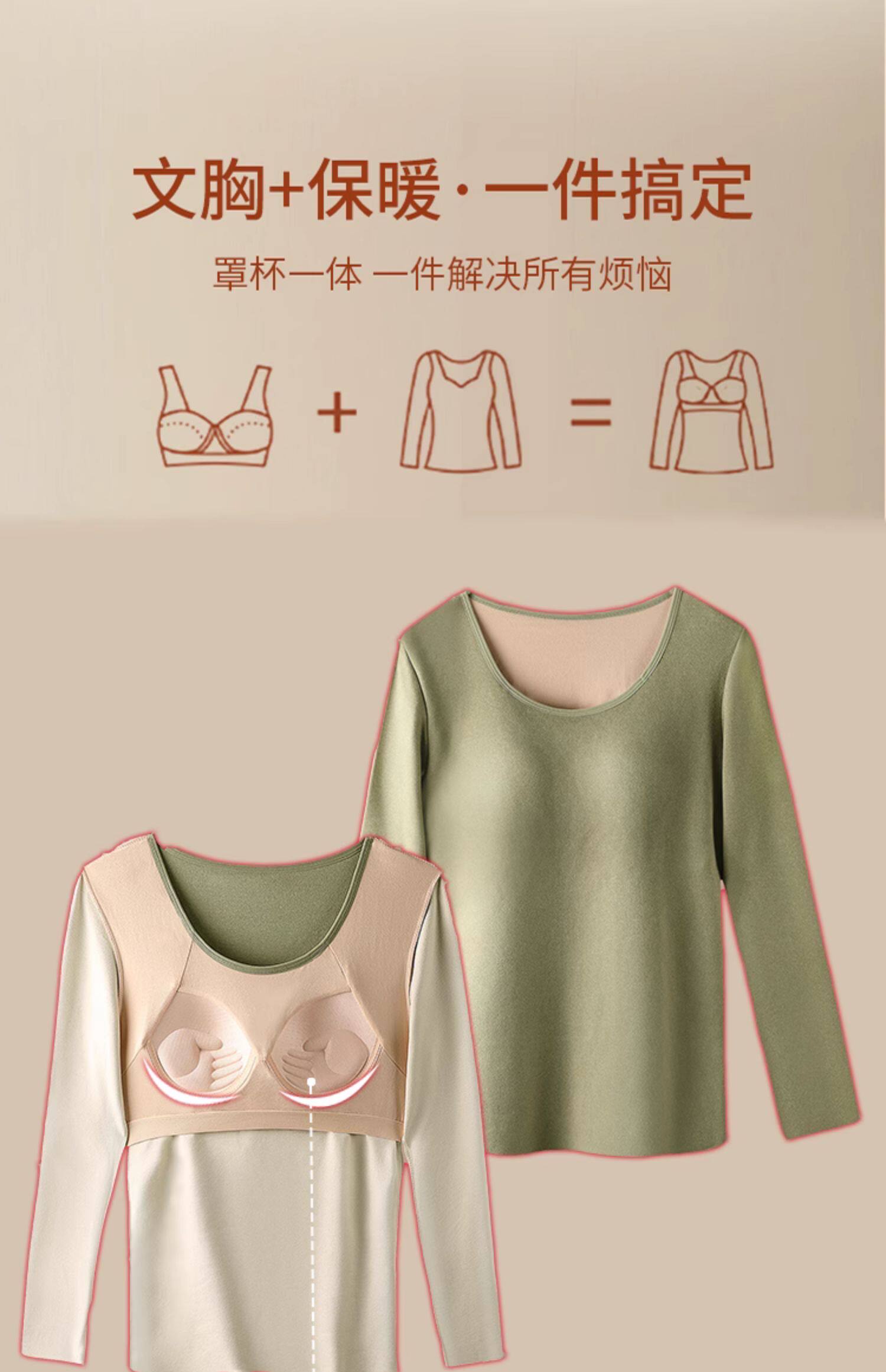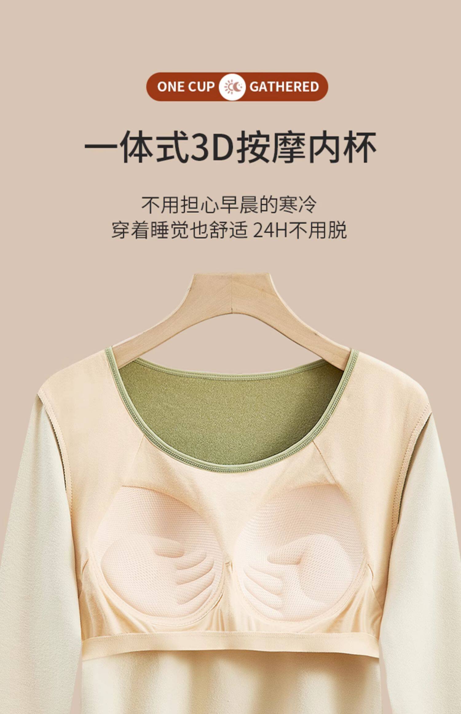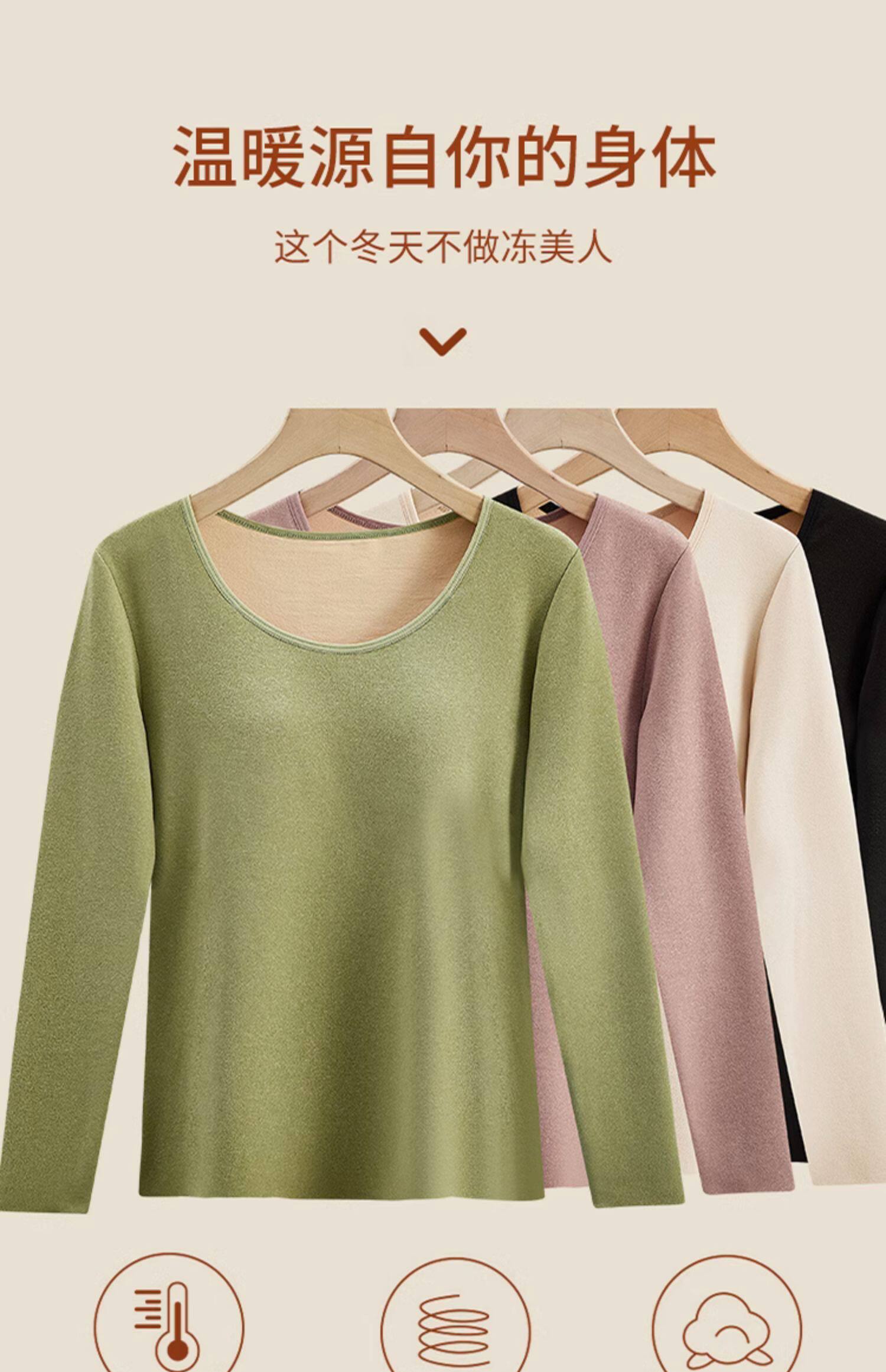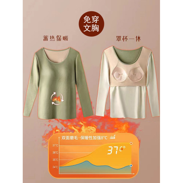 德絨保暖內衣女士套裝加絨加厚帶胸墊打底衫冬季秋衣秋褲髮熱上衣