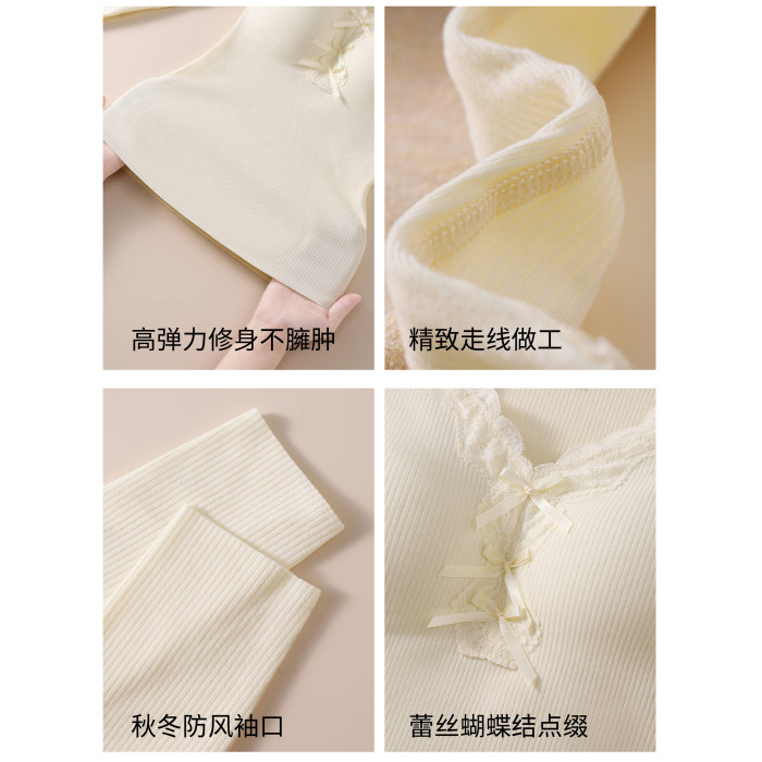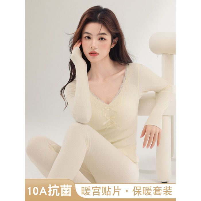 保暖內衣女士帶胸墊加絨加厚髮熱綿羊毛打底秋衣秋褲2025新款冬季