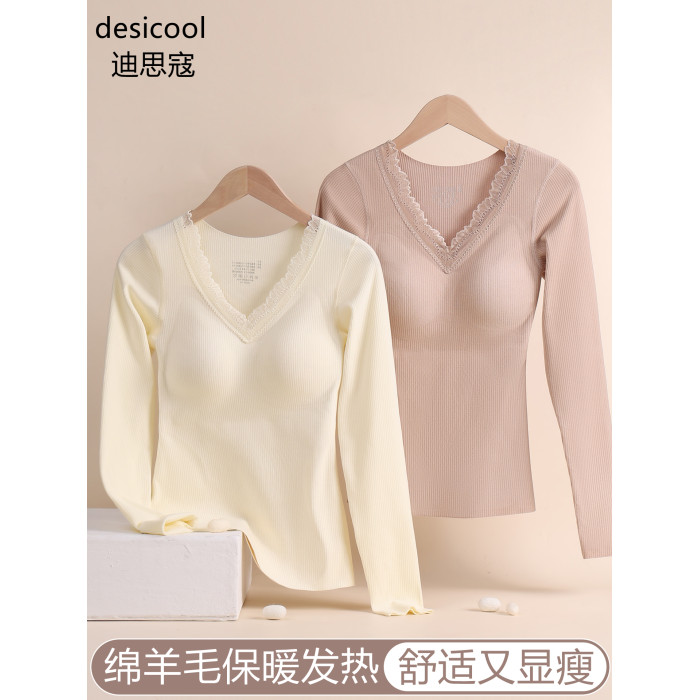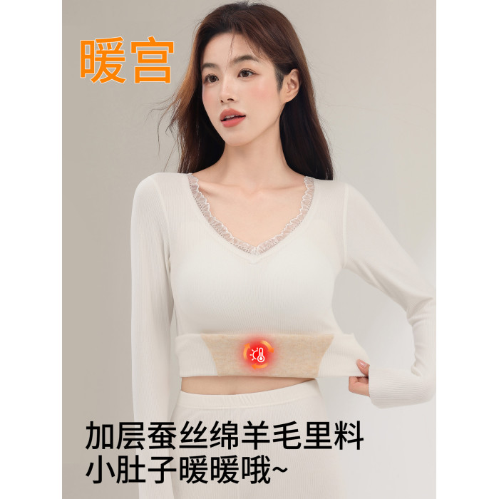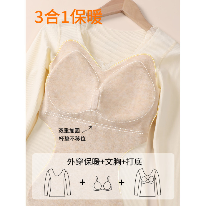 保暖內衣女士打底帶胸墊加絨加厚髮熱綿羊毛秋衣秋褲套裝女款冬季