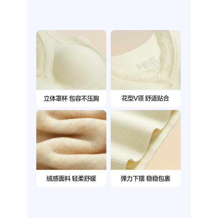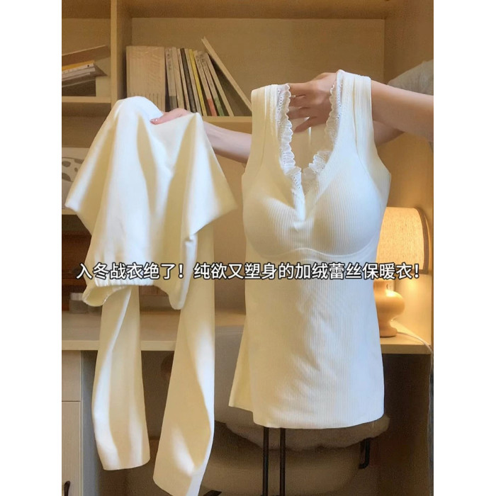 羊絨蠶絲保暖背心女2025新款帶胸墊一體式秋冬款蕾絲邊打底衫套裝