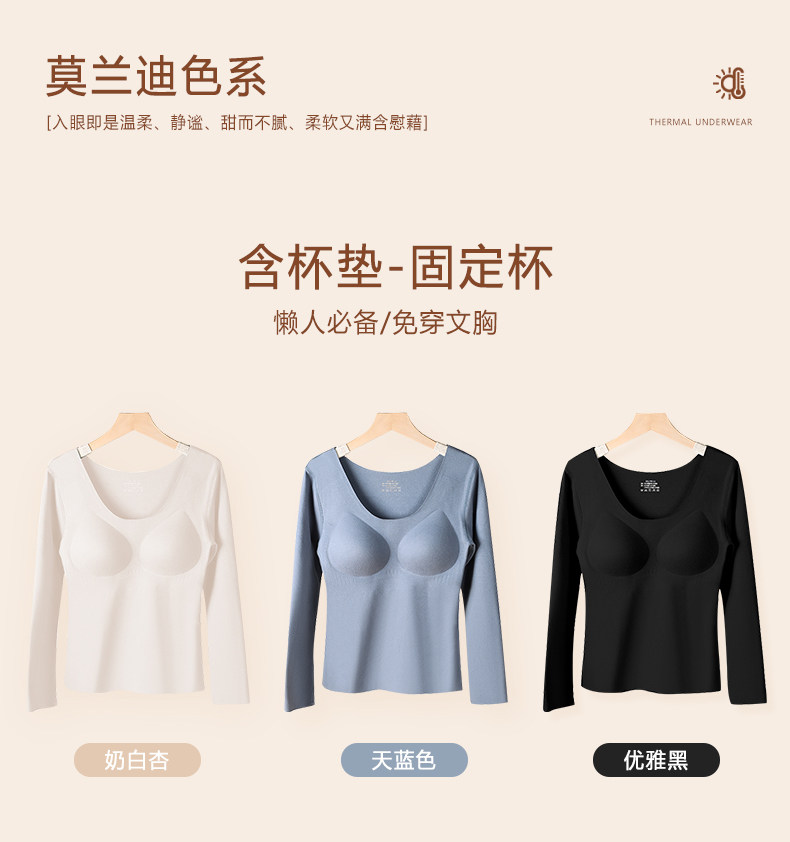 固定杯德絨自髮熱保暖內衣女帶胸墊羊毛蠶絲秋衣秋褲美膚冬季套裝
