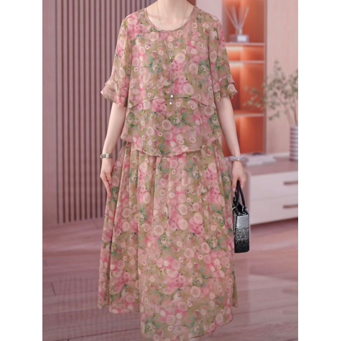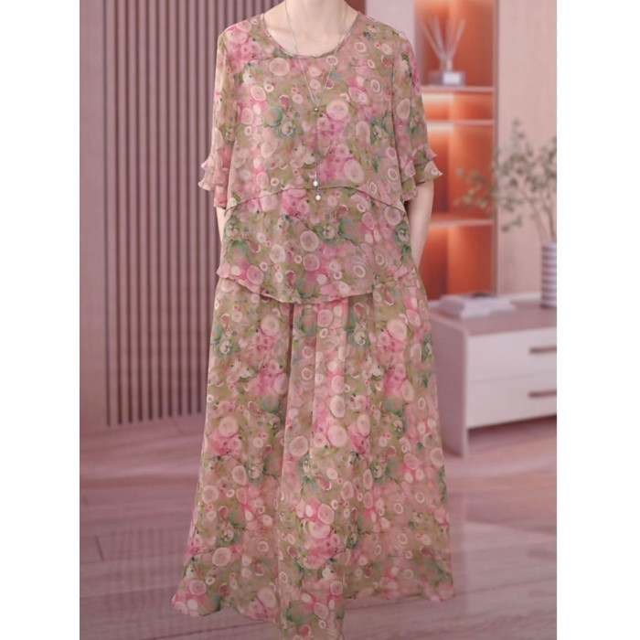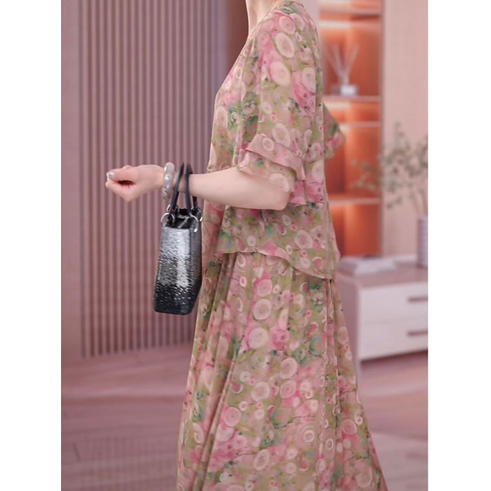 胖媽媽碎花裙子夏季加肥加大碼中老年女裝顯瘦遮肚氣質雪紡連衣裙