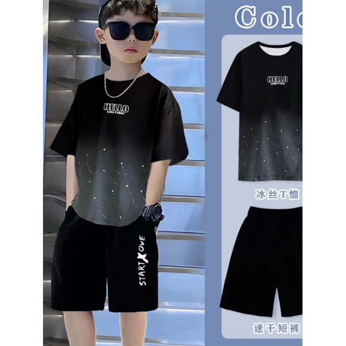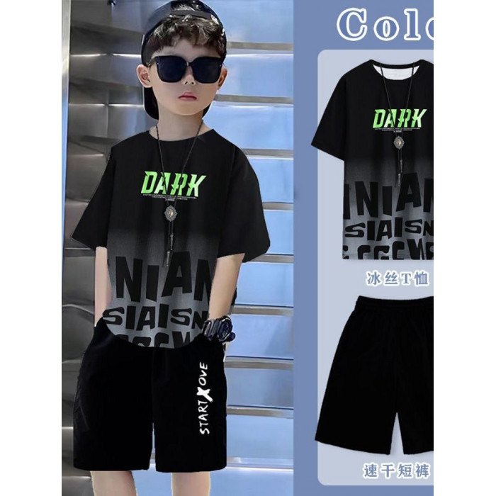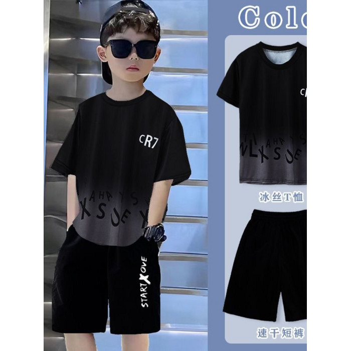 安哼安哼男童短袖套裝兒童夏季冰絲速乾上衣短褲中大童男孩夏裝薄