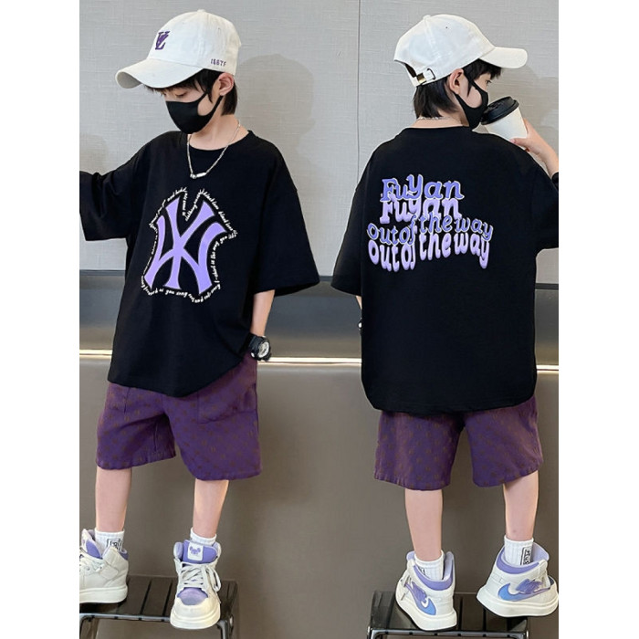 男童夏裝套裝2025新款時髦中大童運動洋氣男孩夏季短袖兒童兩件套