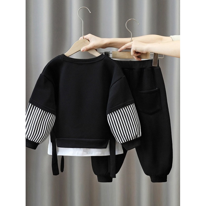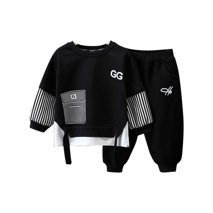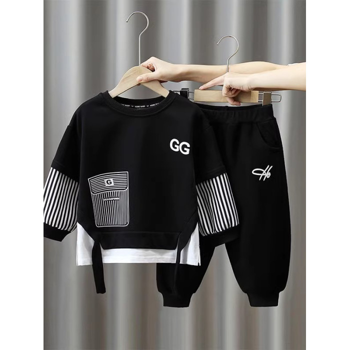 男童薄款春秋套裝2025新款小童時髦運動服男孩帥氣衣服早秋兒童裝