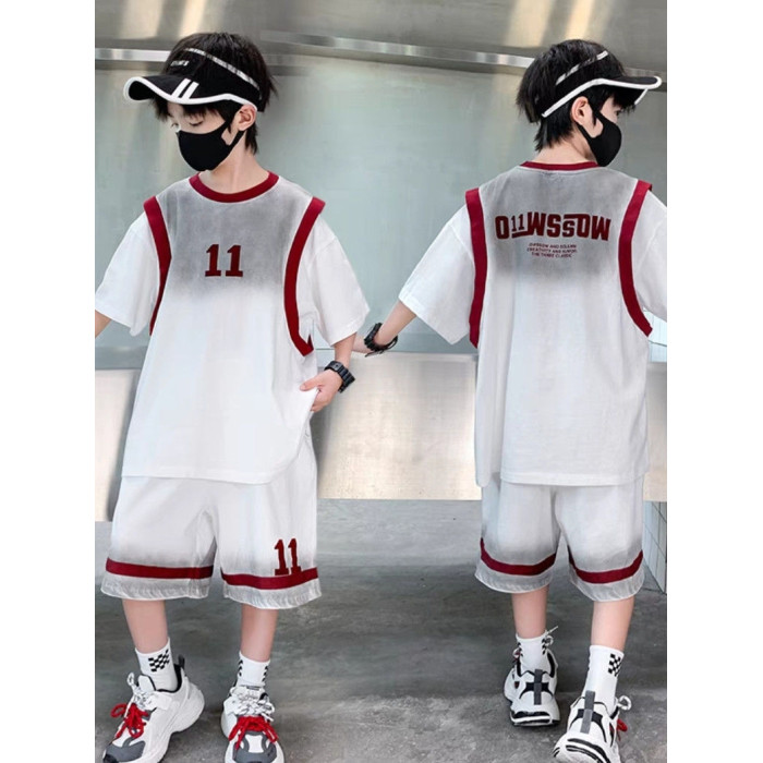 安哼安哼男童潮款運動籃球服夏季薄款2025新款中大童漸變假兩件短