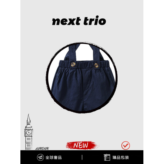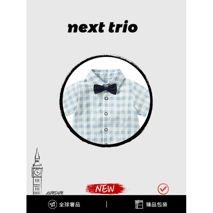 英國Next男童套裝夏2025新款格子襯衫短袖背帶褲紳士周嵗男寶禮服