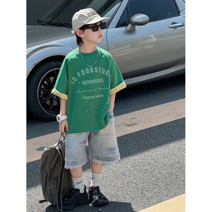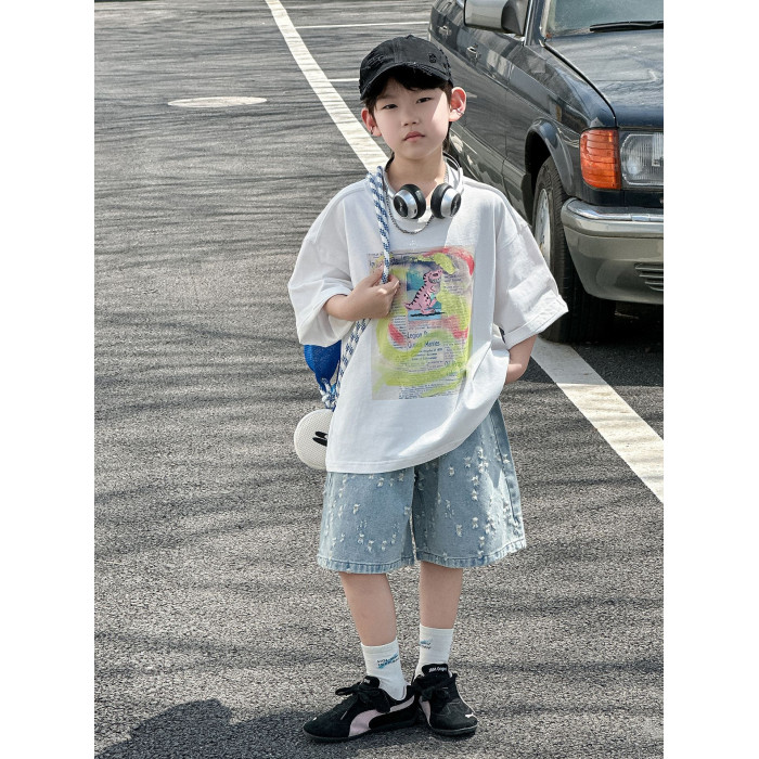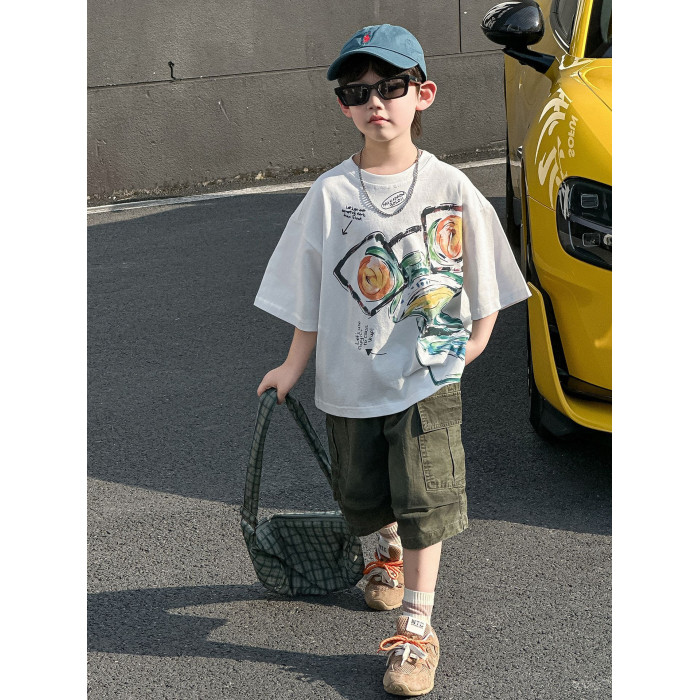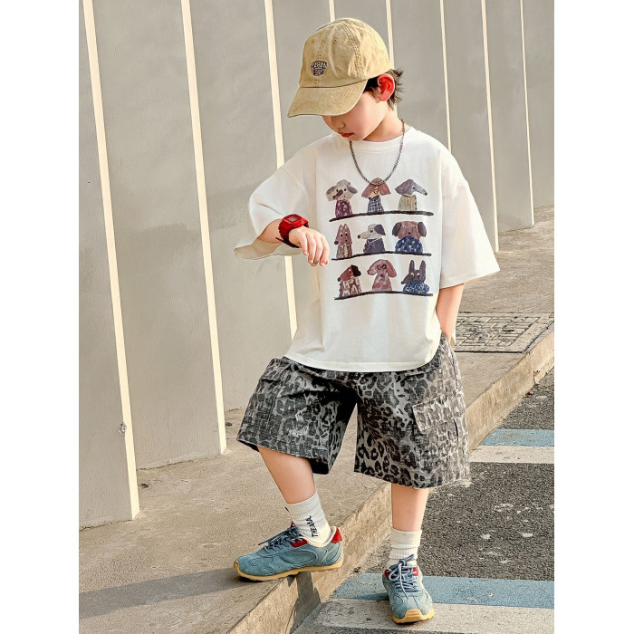 男童夏季短袖套裝兒童夏款韓版2025新款中小童卡通工裝五分褲童裝