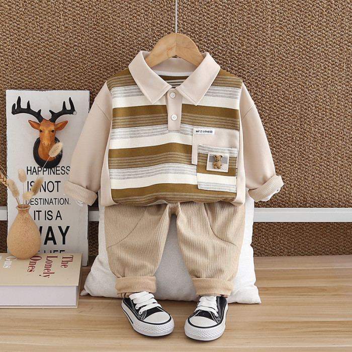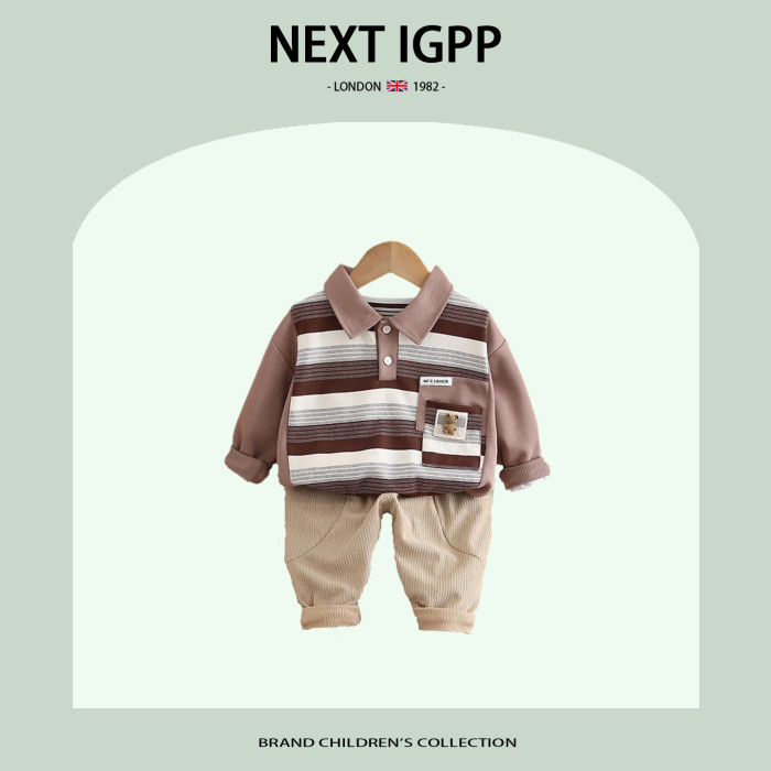 英國NEXT IGPP男童洋氣條紋衛衣春秋新款男孩休閒運動休閒褲套裝