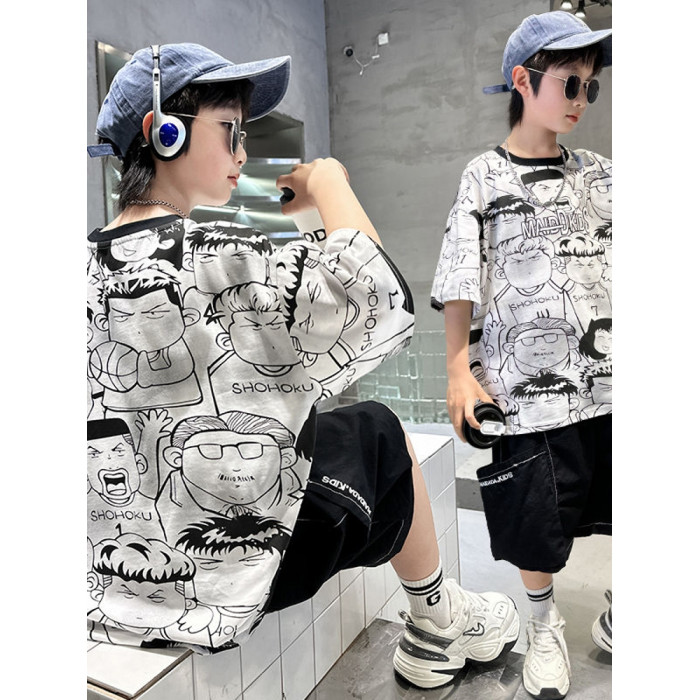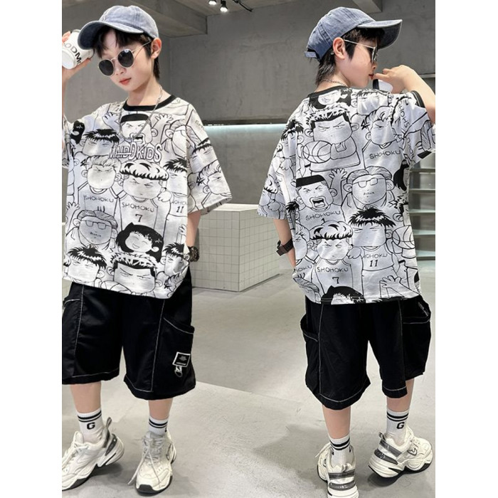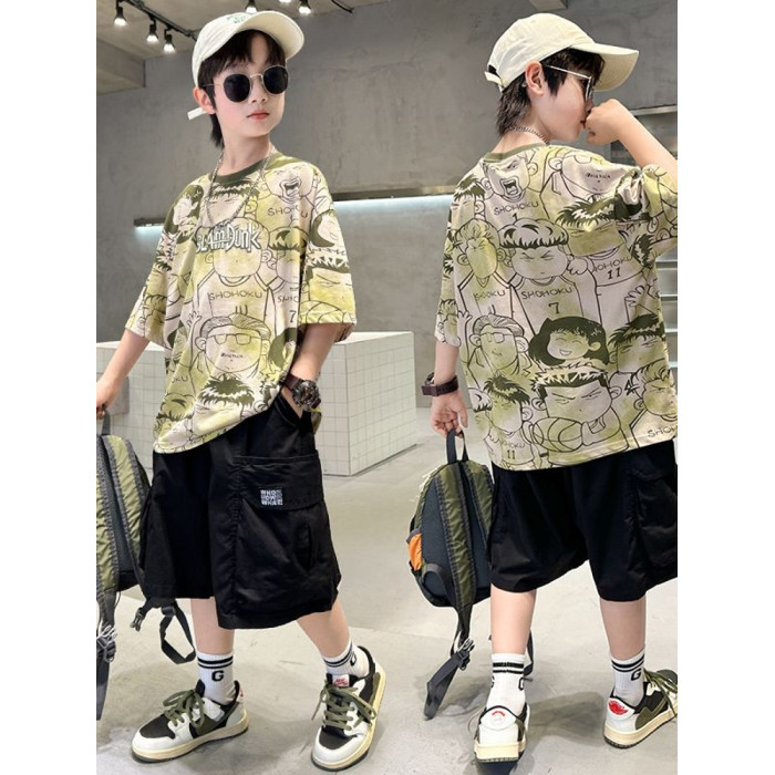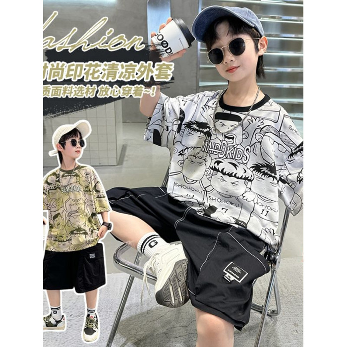 安哼安哼男童套裝夏裝2025新款夏季兒童衣服潮酷帥中大童時髦男孩