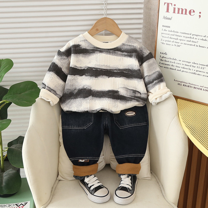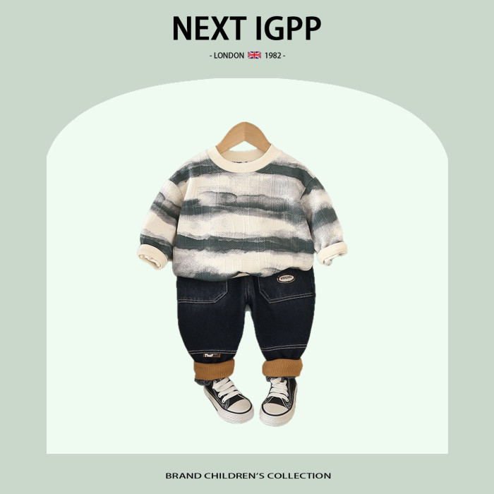 英國NEXT IGPP 秋季新款男童紥染條紋圓領童裝衛衣兩件套休閒時尚