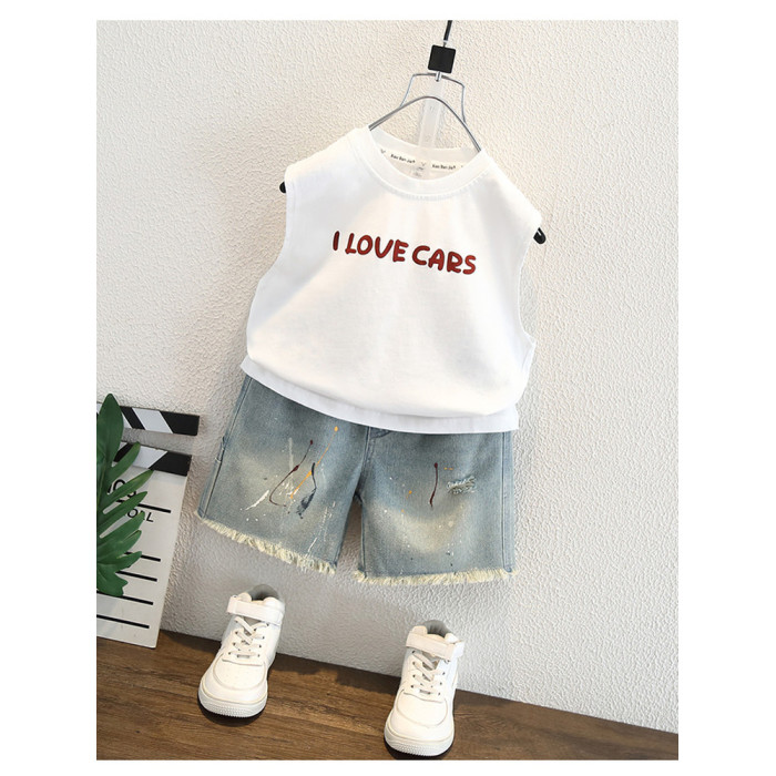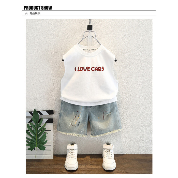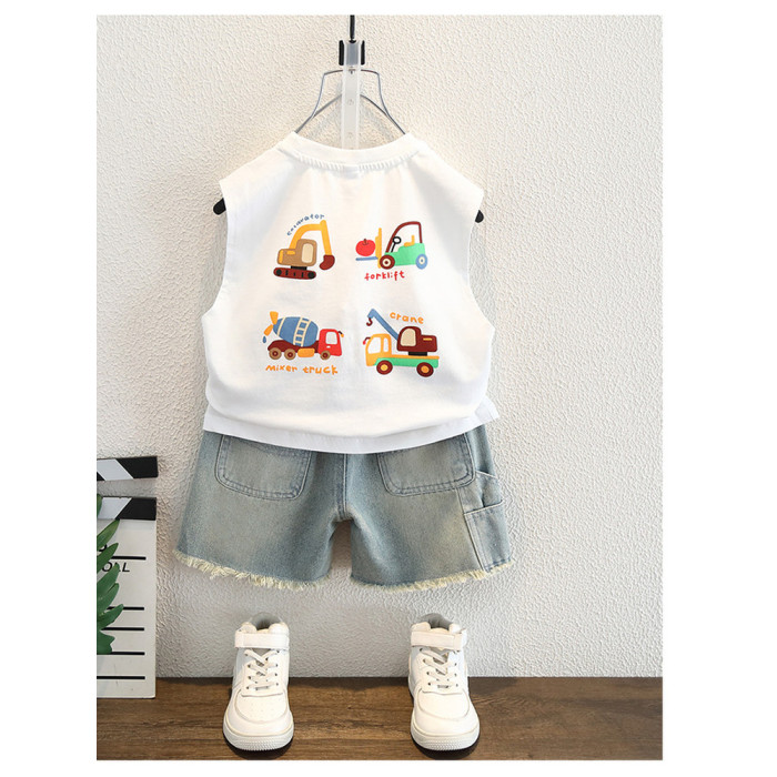 兒童夏季衣服洋氣小孩子韓版圓領無袖衫男童夏裝背心卡通潮童裝
