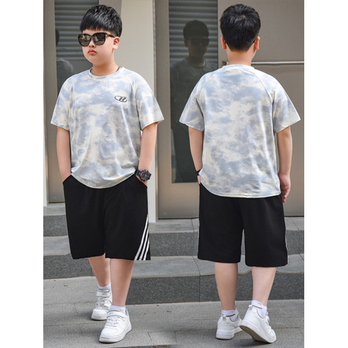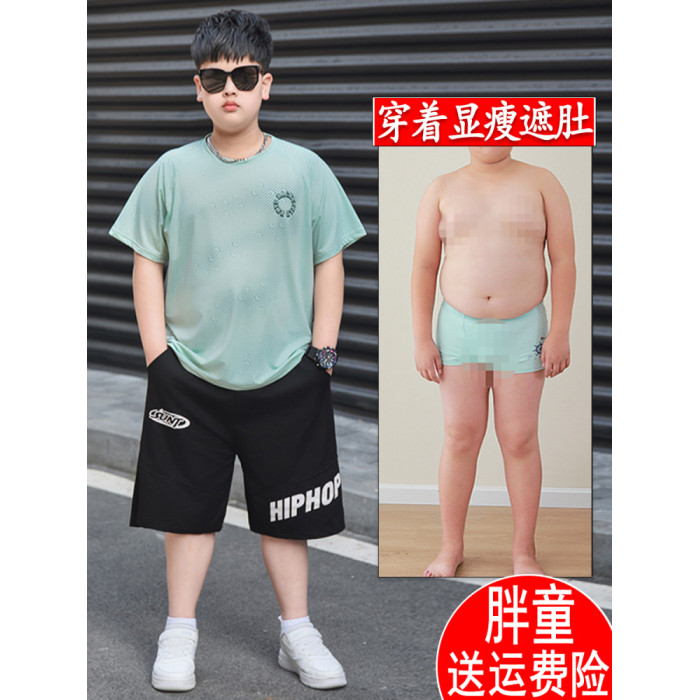 胖童裝男童加肥加大速乾短袖套裝夏裝青少年寬松冰絲兩件套洋氣薄