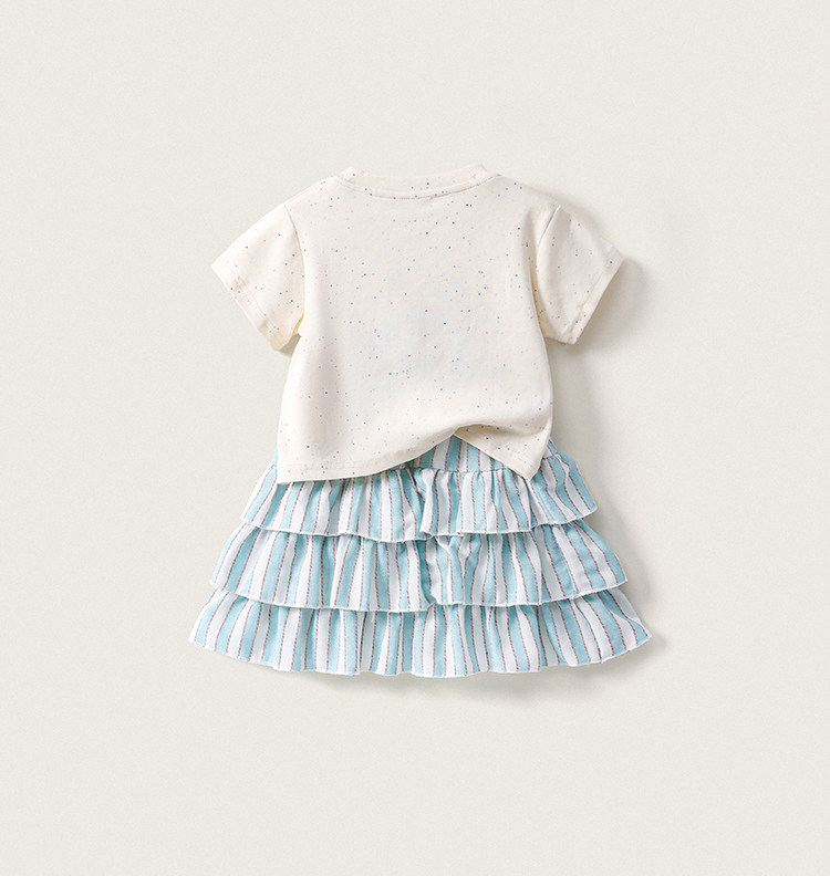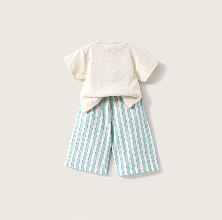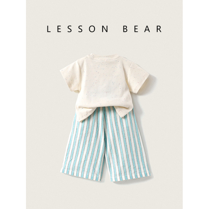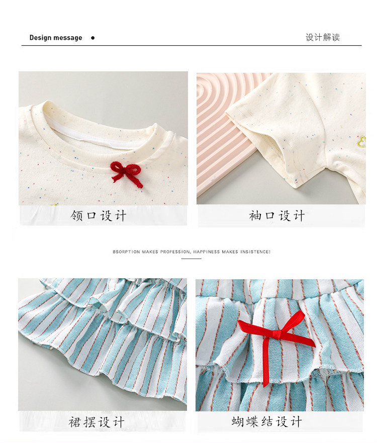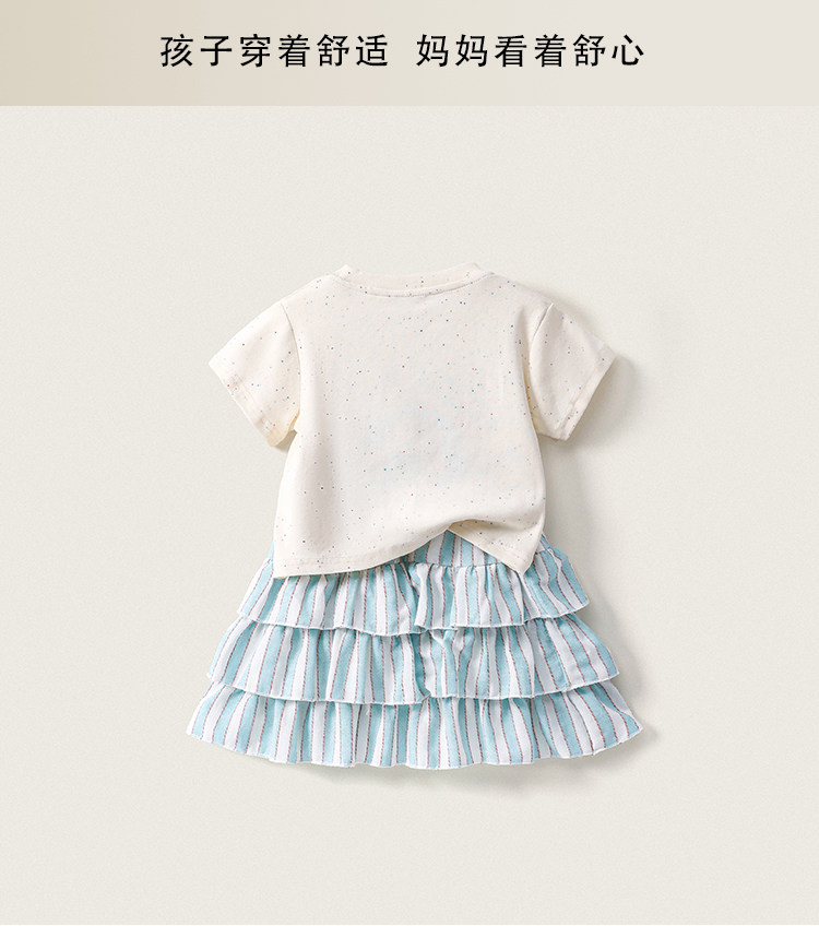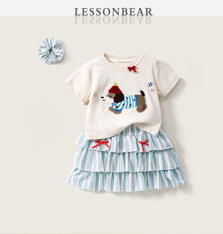女童夏季套裝2025新款T恤卡通臘腸狗兒童條紋濶腿褲女寶裙子套裝