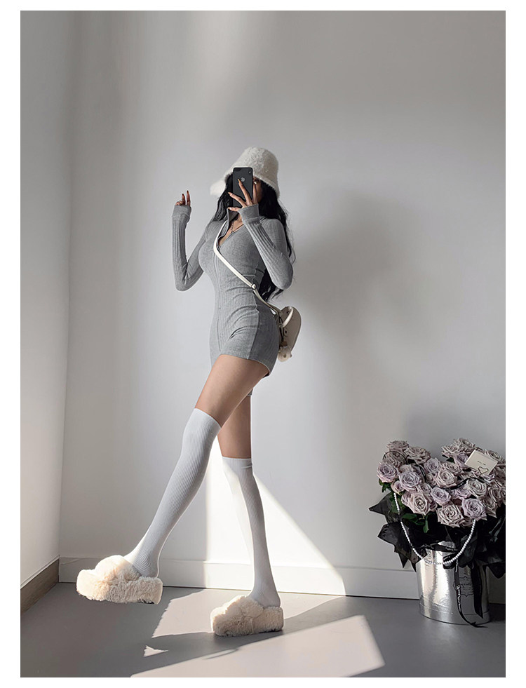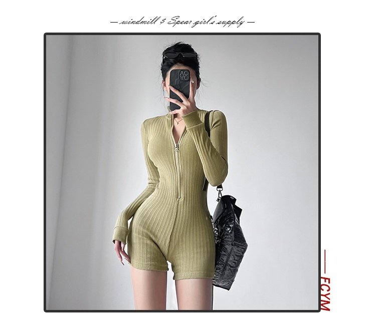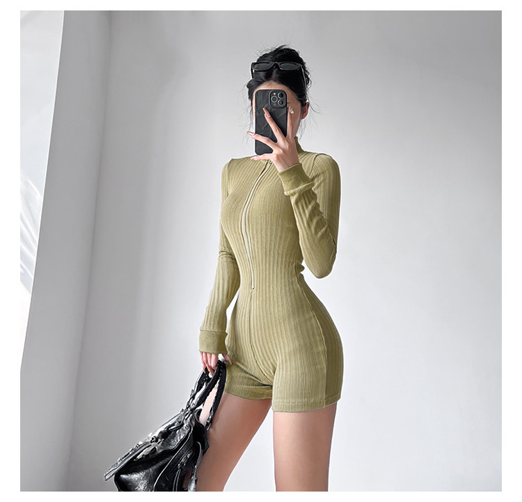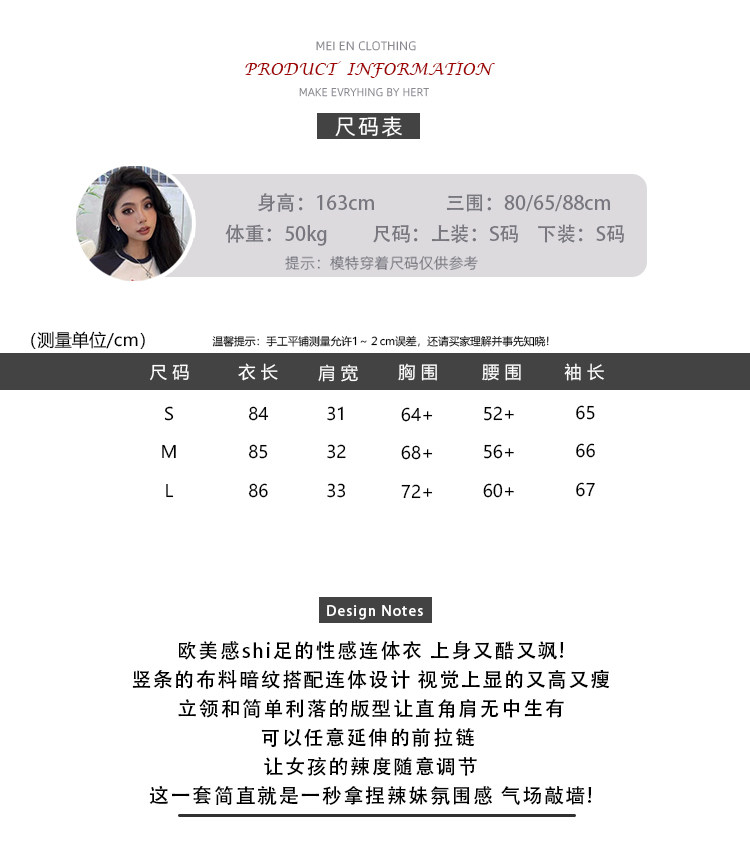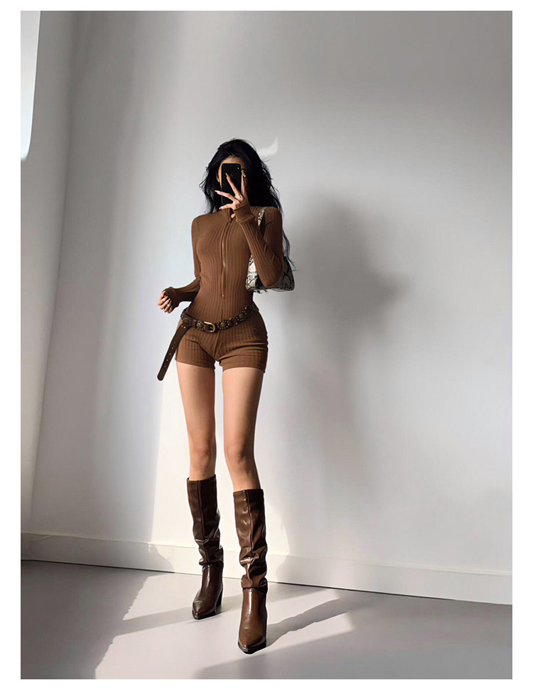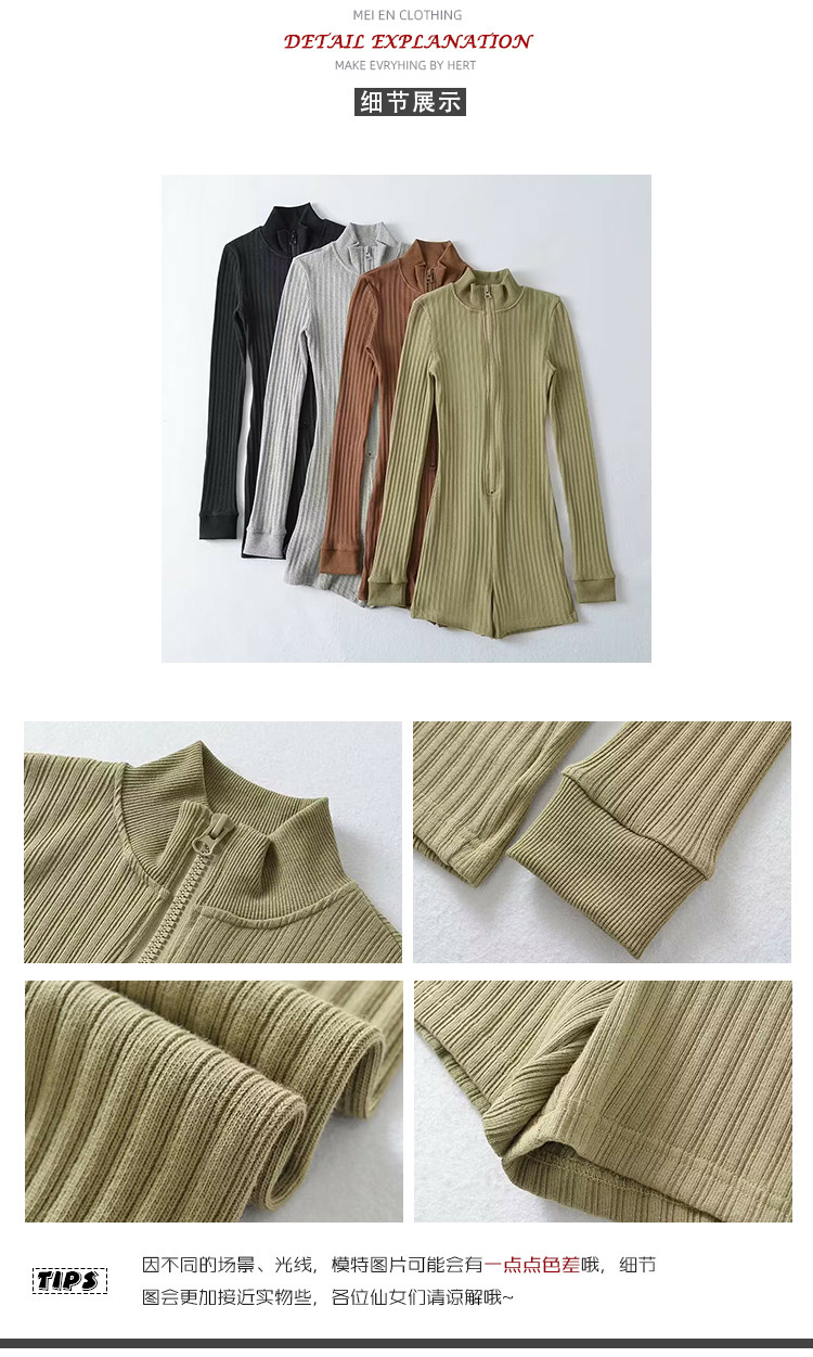 叛逆日記歐美風辣妹立領針織衫連體衣女性感拉鍊修身顯瘦連體短褲
