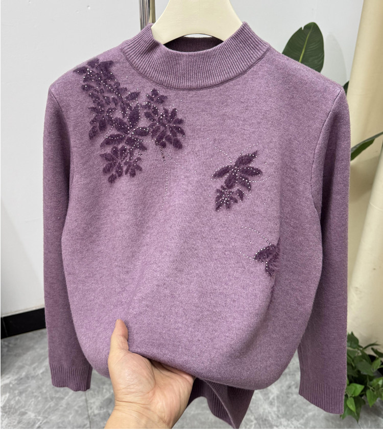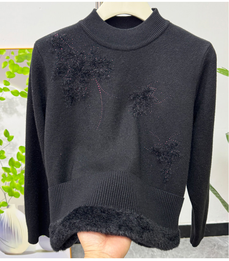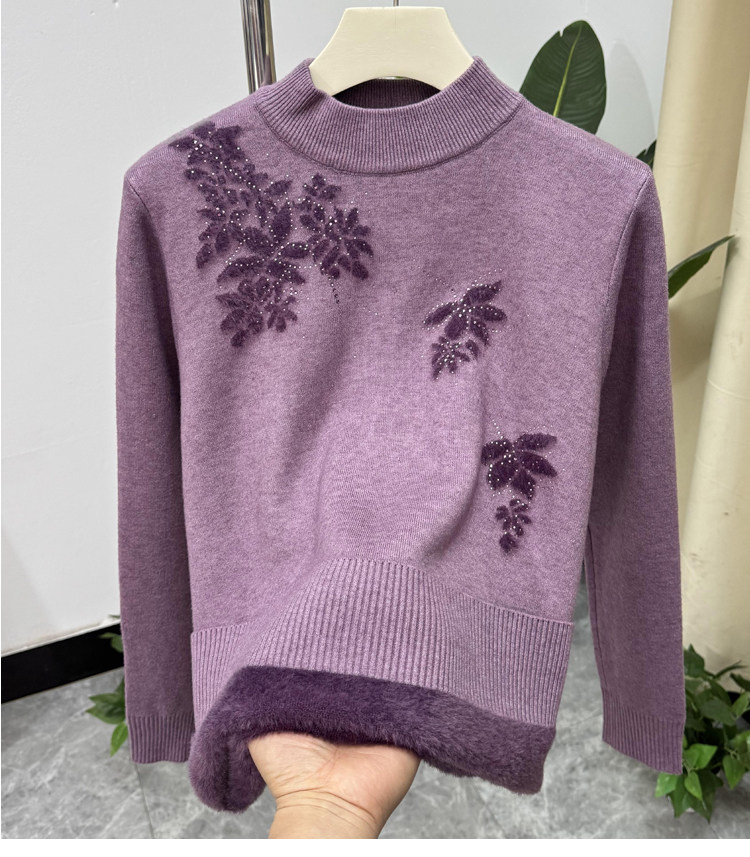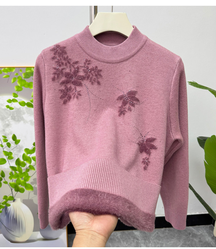 加絨媽媽冬裝時尚半高領打底衫加厚上衣洋氣質中老年女士保暖毛衣
