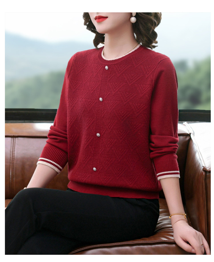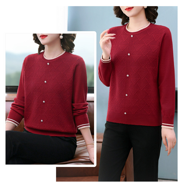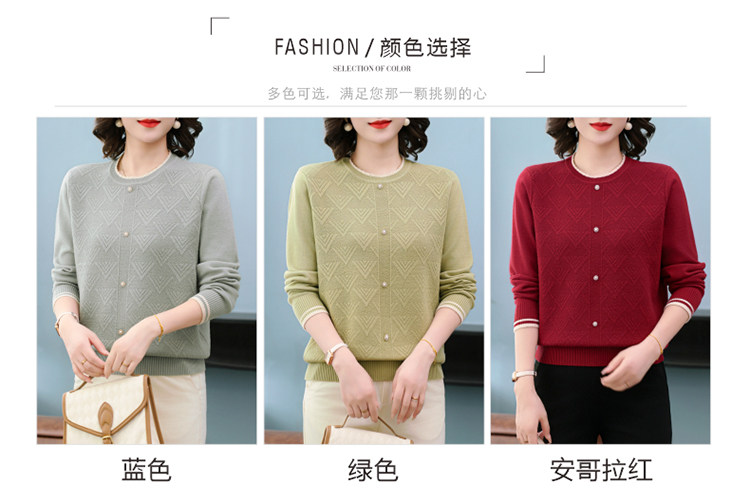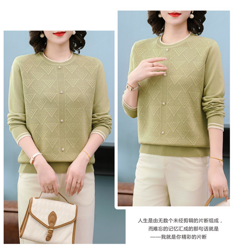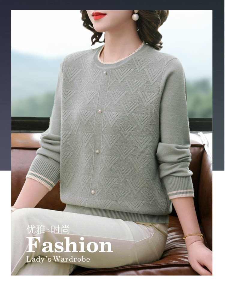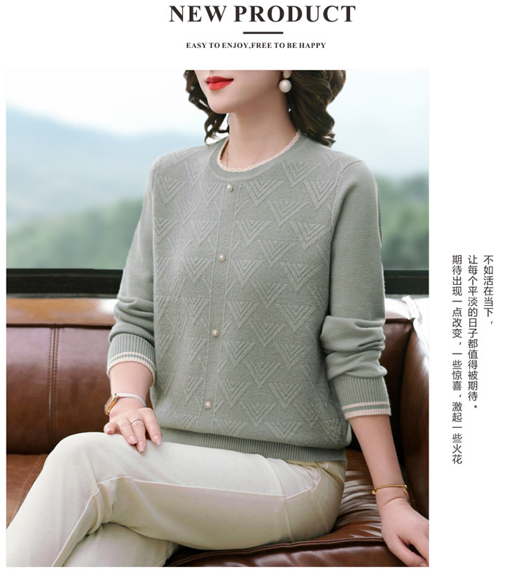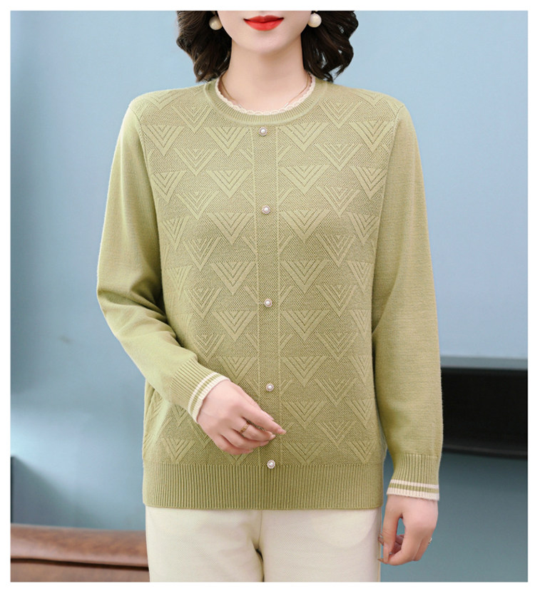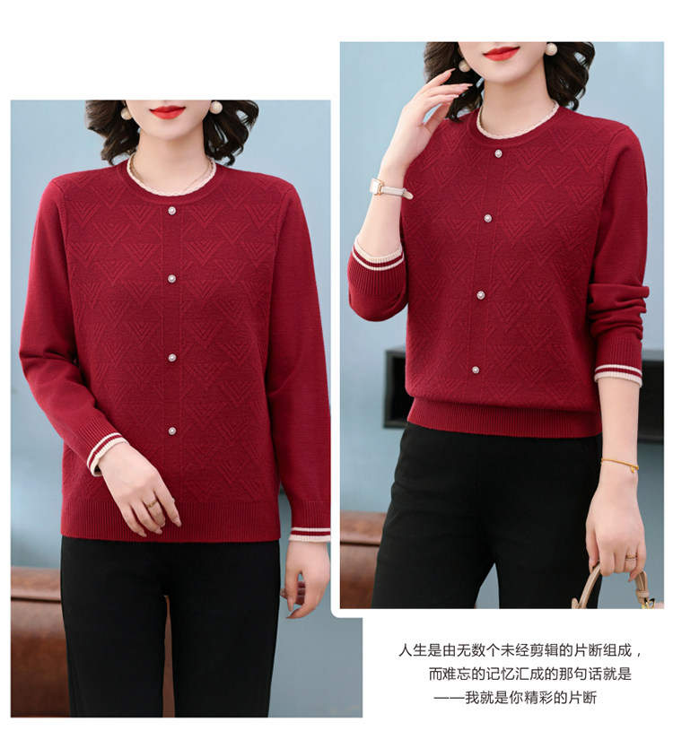 2025年媽媽新款春秋繙領毛衣中老年秋裝兩件套寬鬆針織上衣打底衫