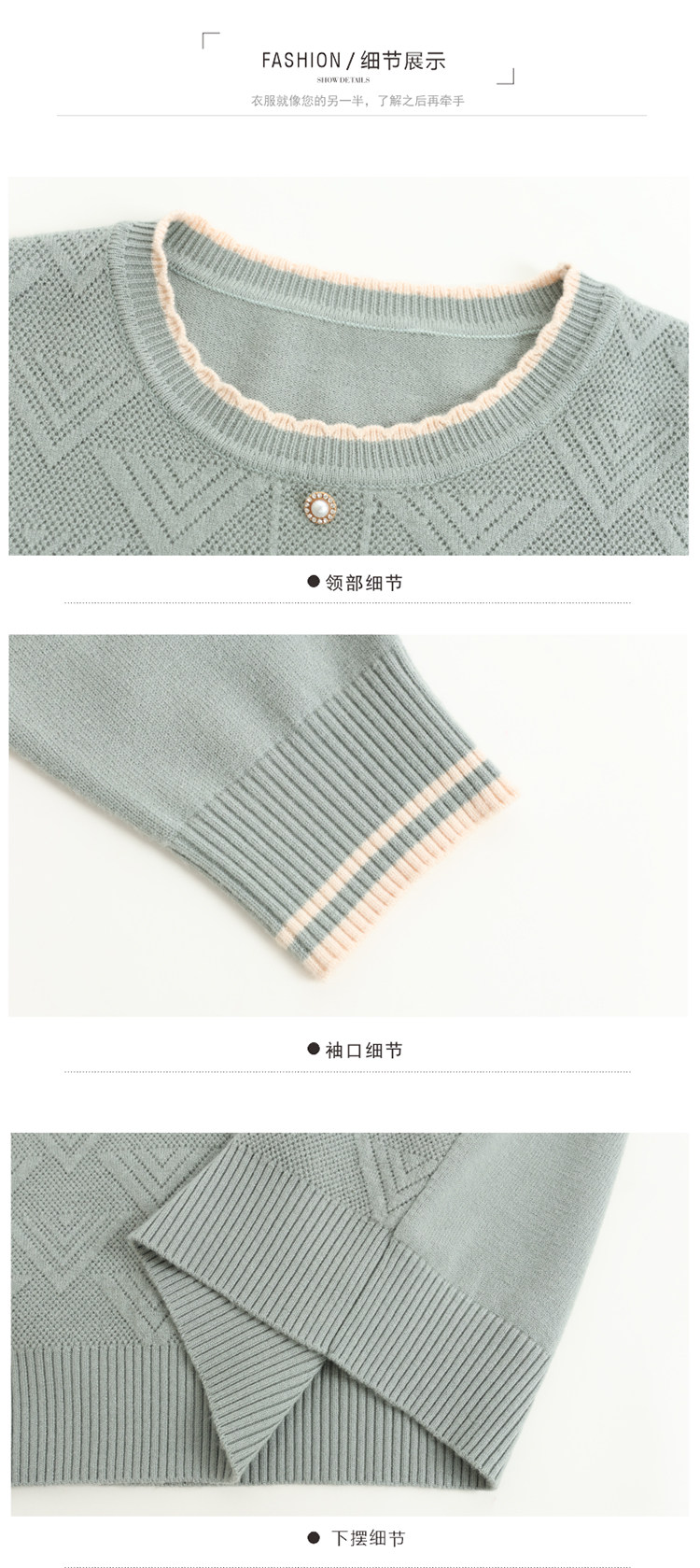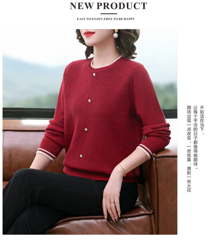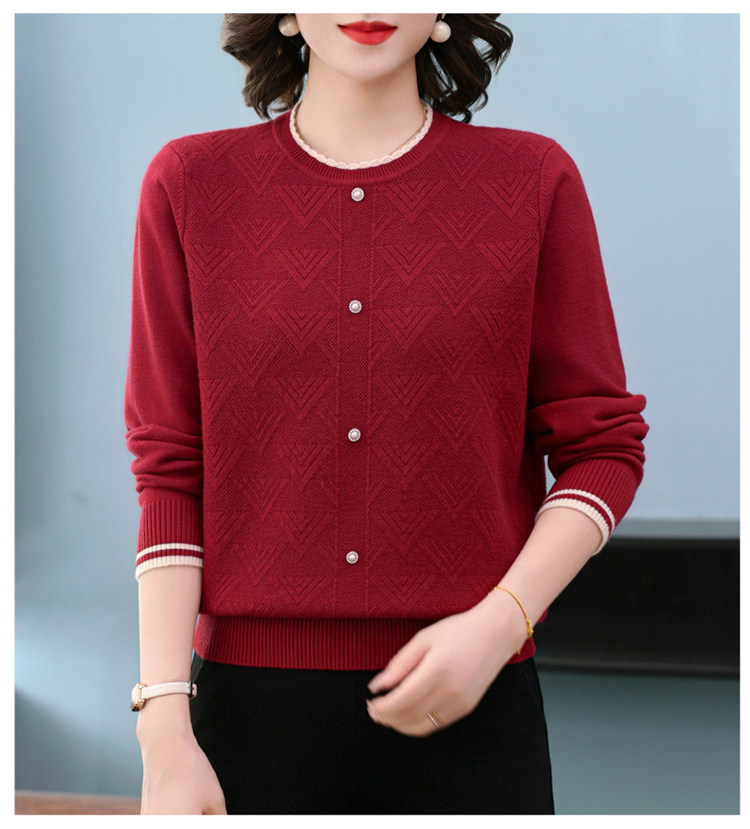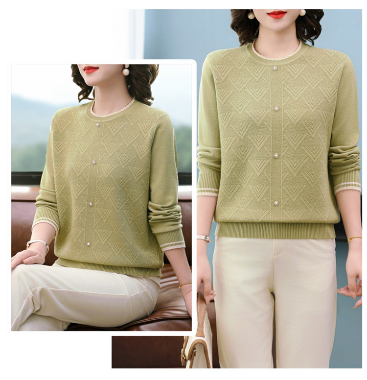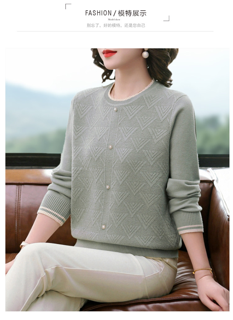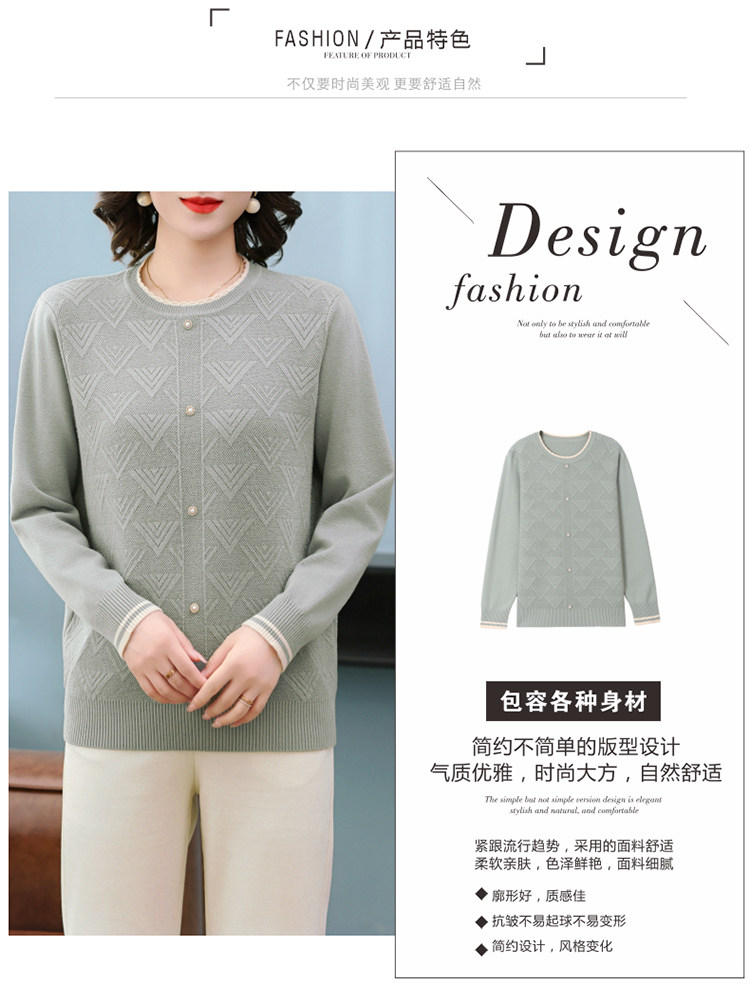 2025年媽媽新款春秋繙領毛衣中老年秋裝兩件套寬鬆針織上衣打底衫