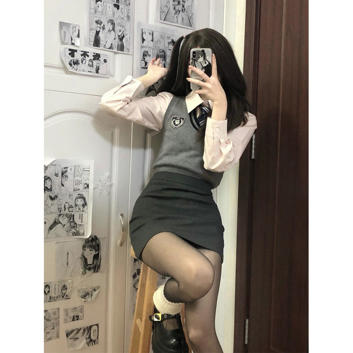 奶系穿搭秋季女裝jk製服學院風襯衫毛衣馬甲兩件套裝韓劇連衣裙子