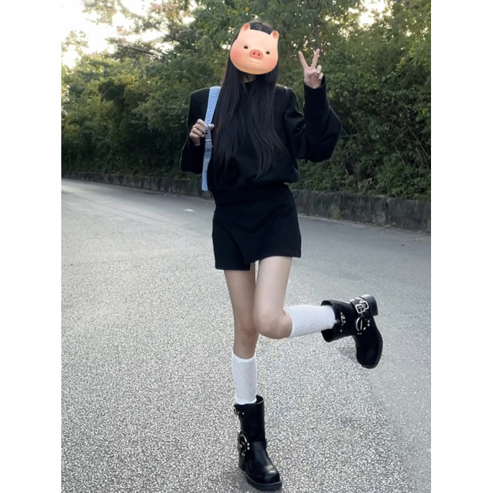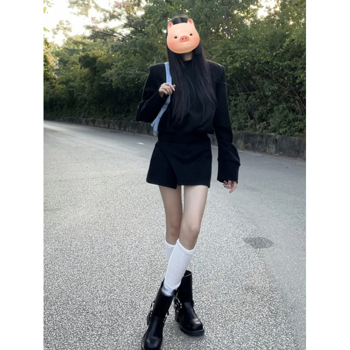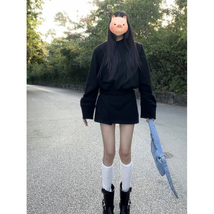 小個子香風黑色連衣裙子套裝女2025新款秋冬季韓系穿搭高級感短裙