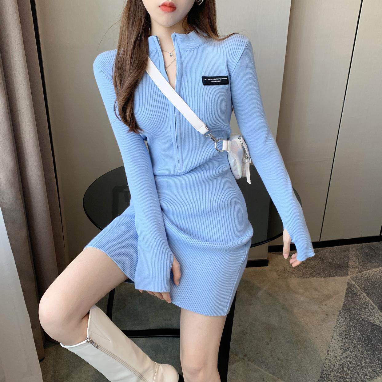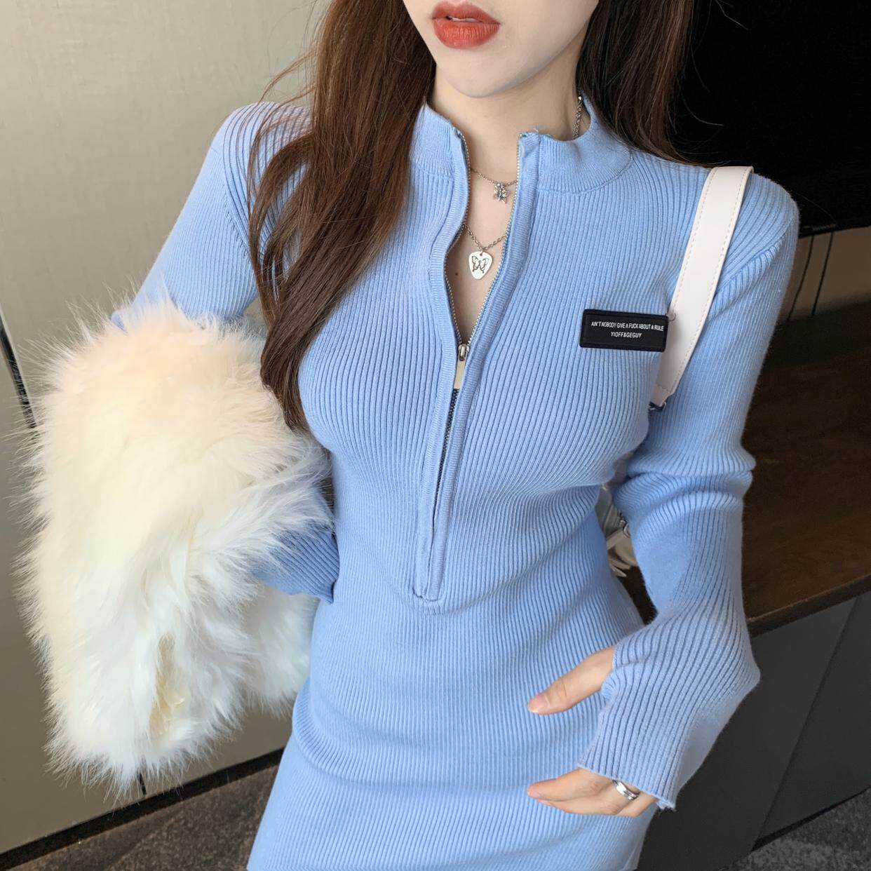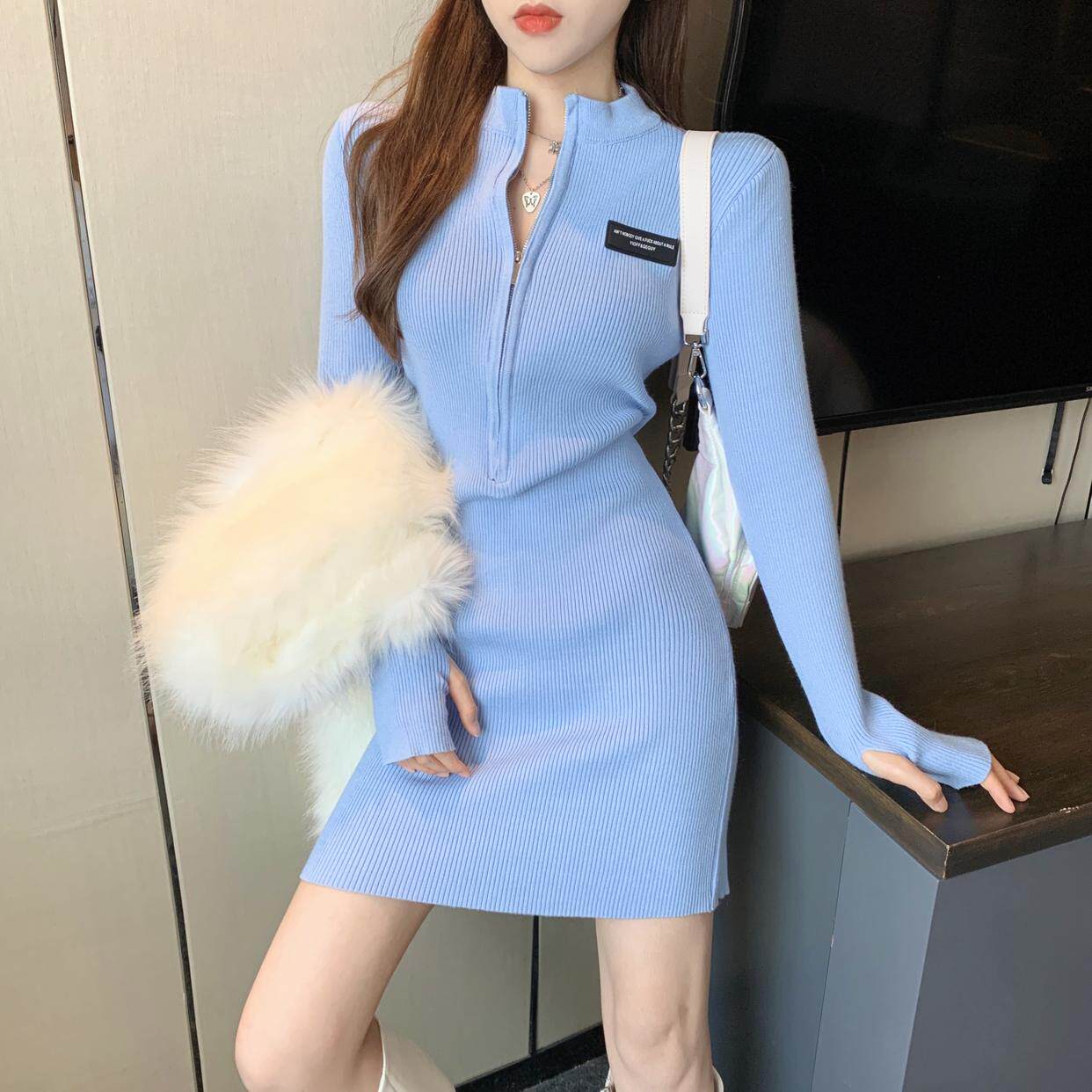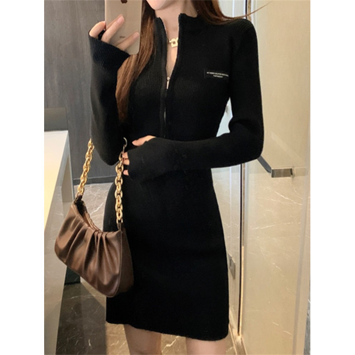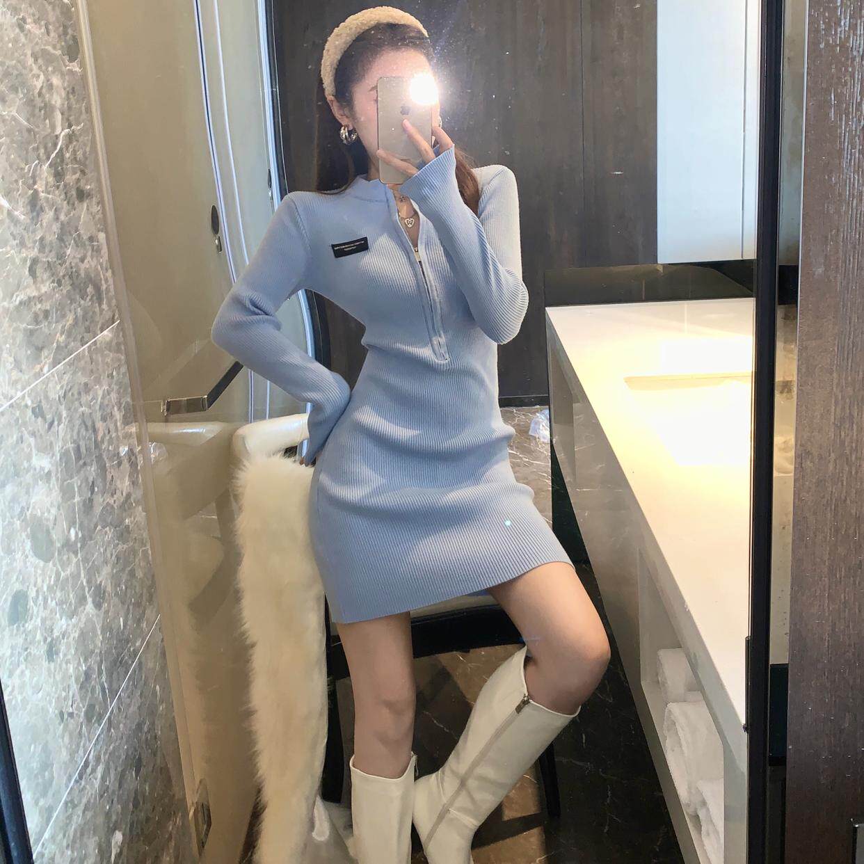 秋冬禦姐高級感純欲風黑色包臀裙子收腰修身內搭針織打底連衣裙女