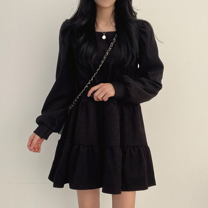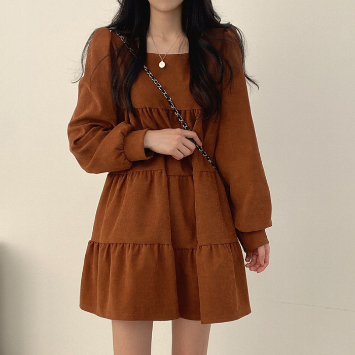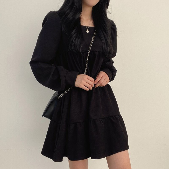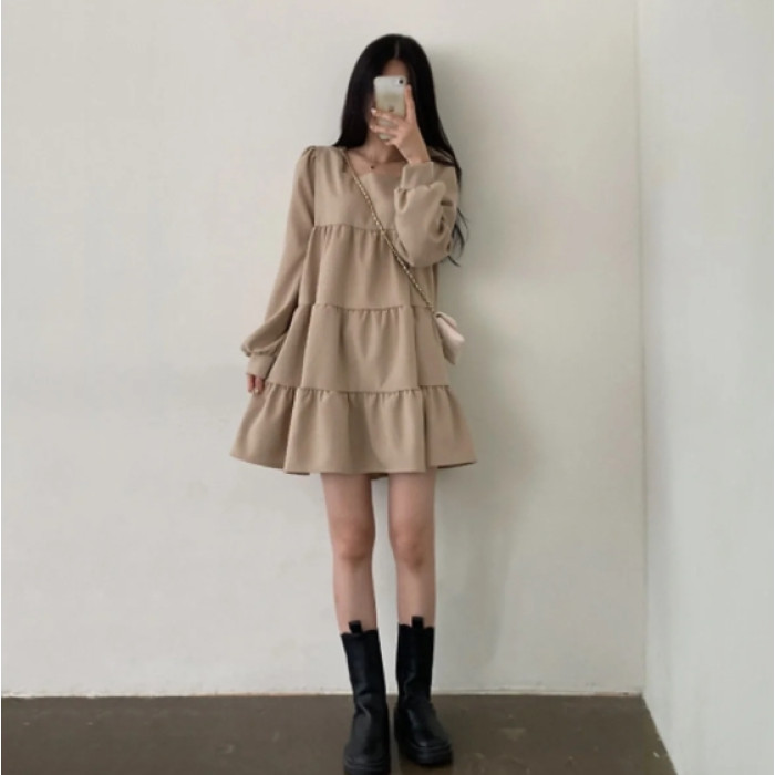 寬松小個子孕婦春秋氣質方口領娃娃森系初戀裙長袖連衣裙甜美高級