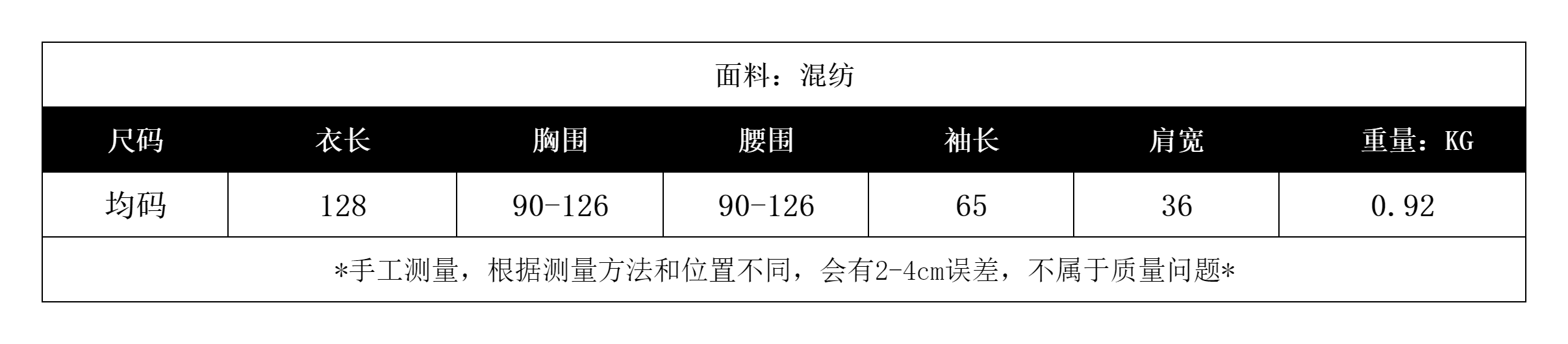 * 尺寸均爲手工測量,存在2-4cm誤差屬於正常範圍 *