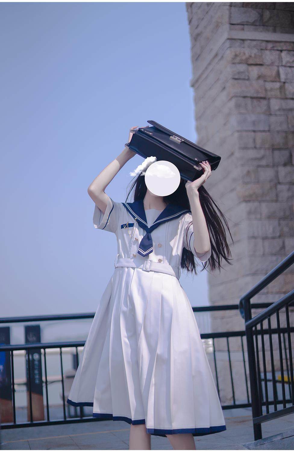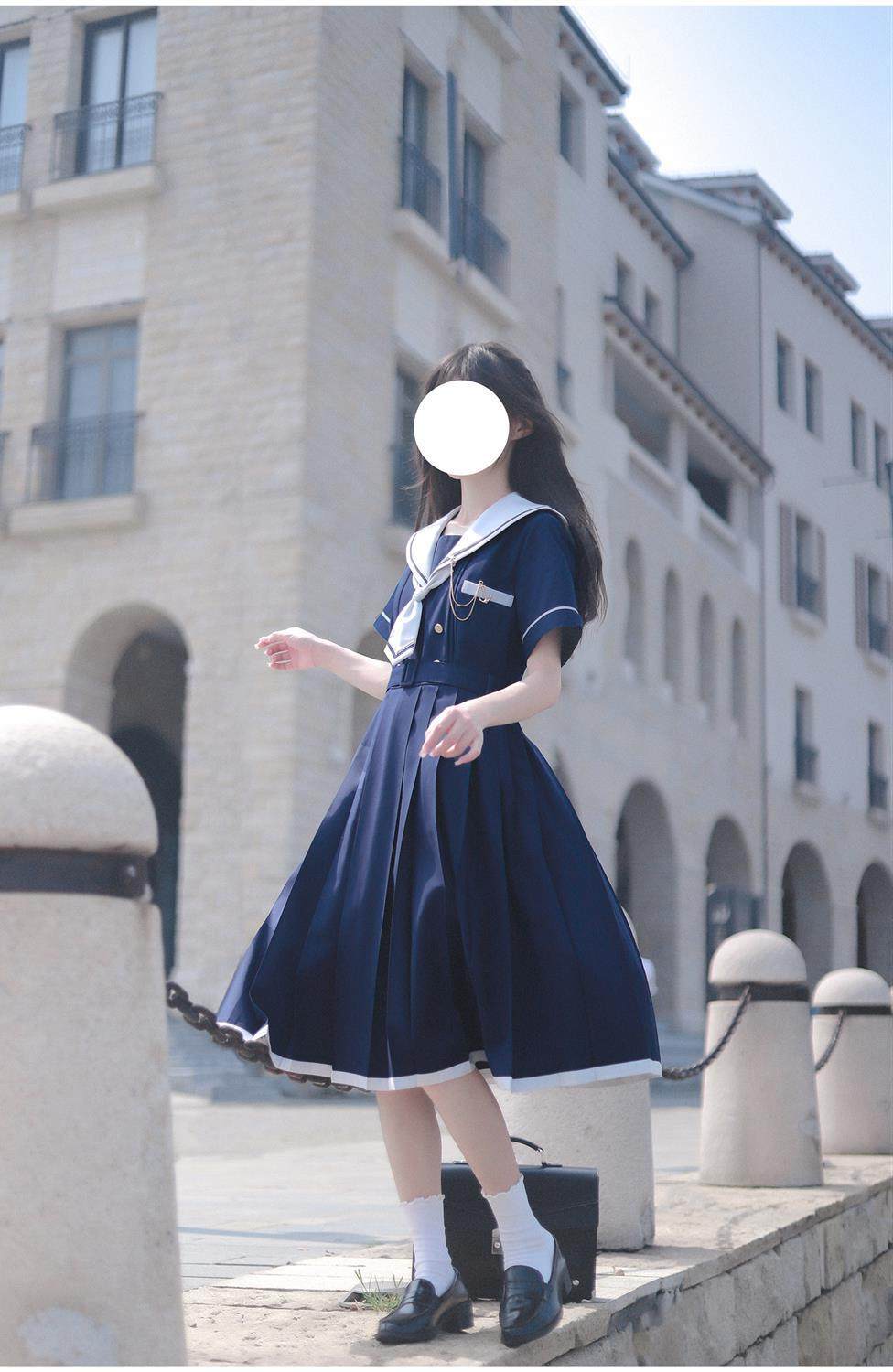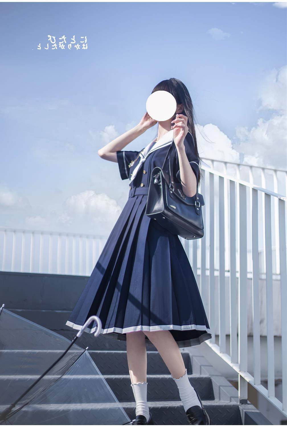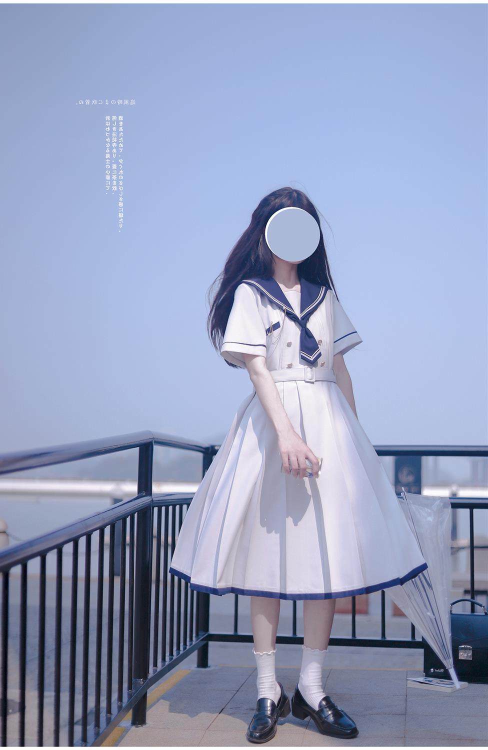 2024夏季新款日系JK水手服海軍領連衣裙學生收腰中長款百褶a字裙