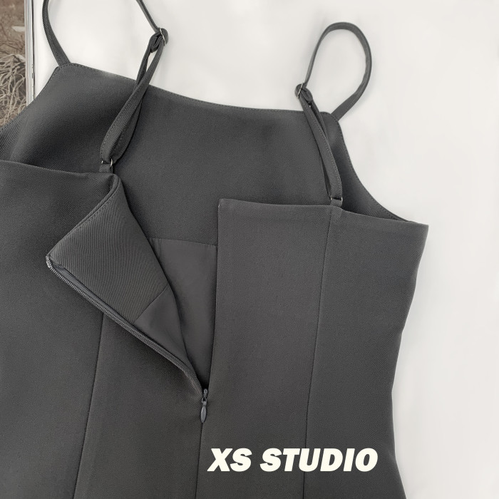 性感吊帶法式西裝連衣裙女2025春秋新款顯瘦氣質收腰百搭a字長裙