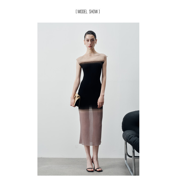 Z老板 蟬翼膚感 針織連衣裙女夏薄款氣質修身彈力漸變後開叉長裙