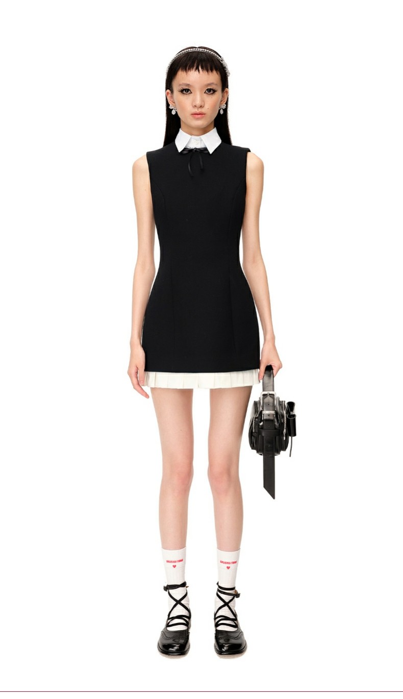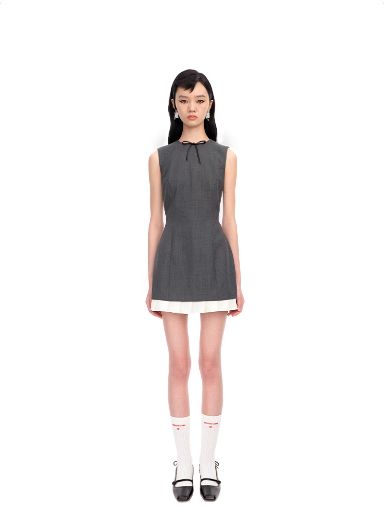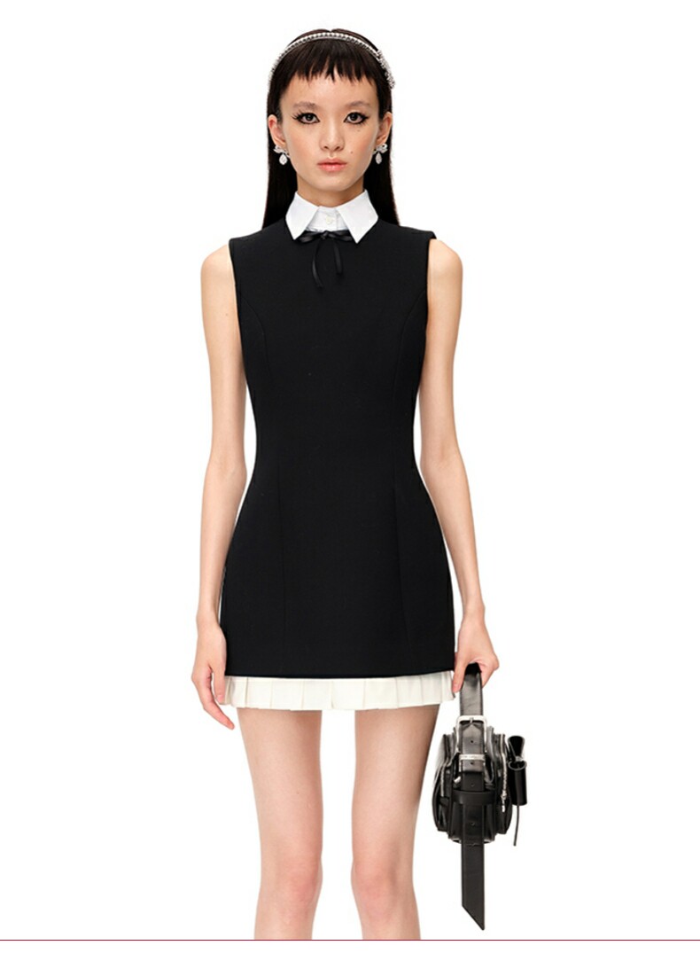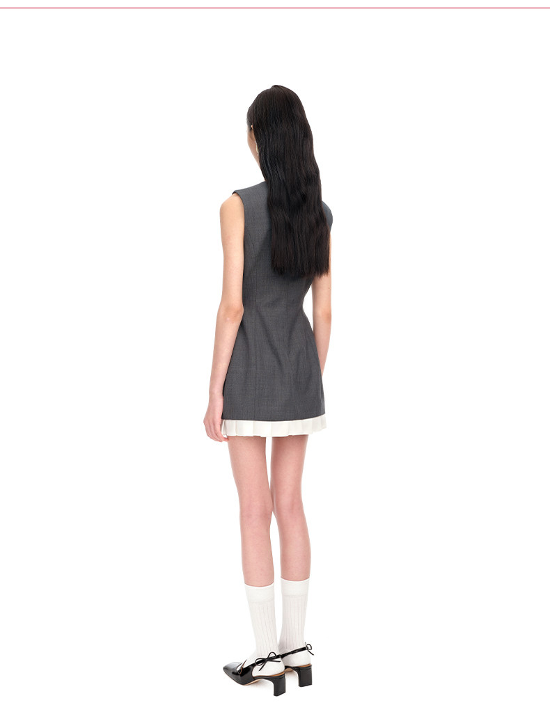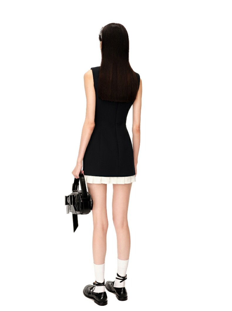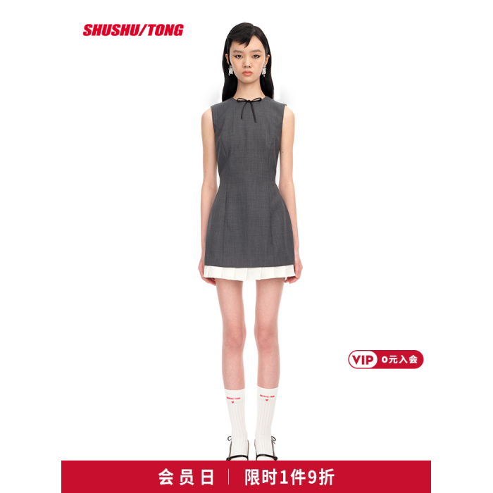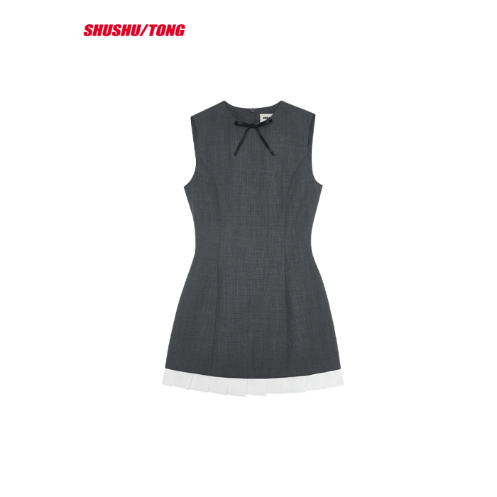 【SHUSHUTONG】女款時尚氣質優雅精緻荷葉邊無袖修身連衣裙A字裙