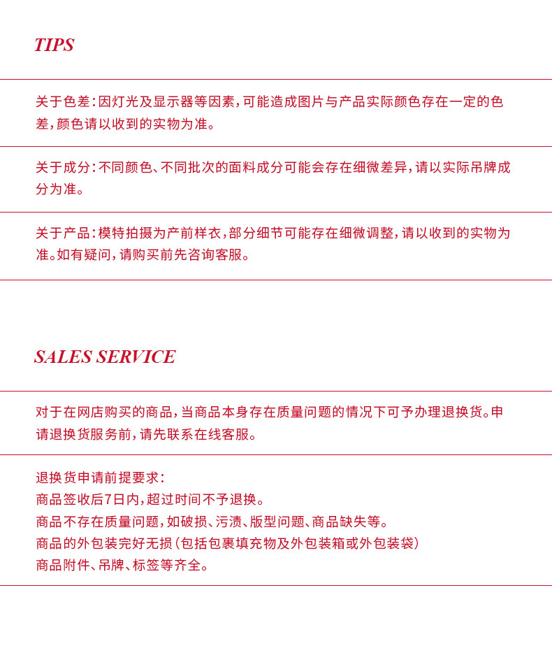 款式及尺寸: