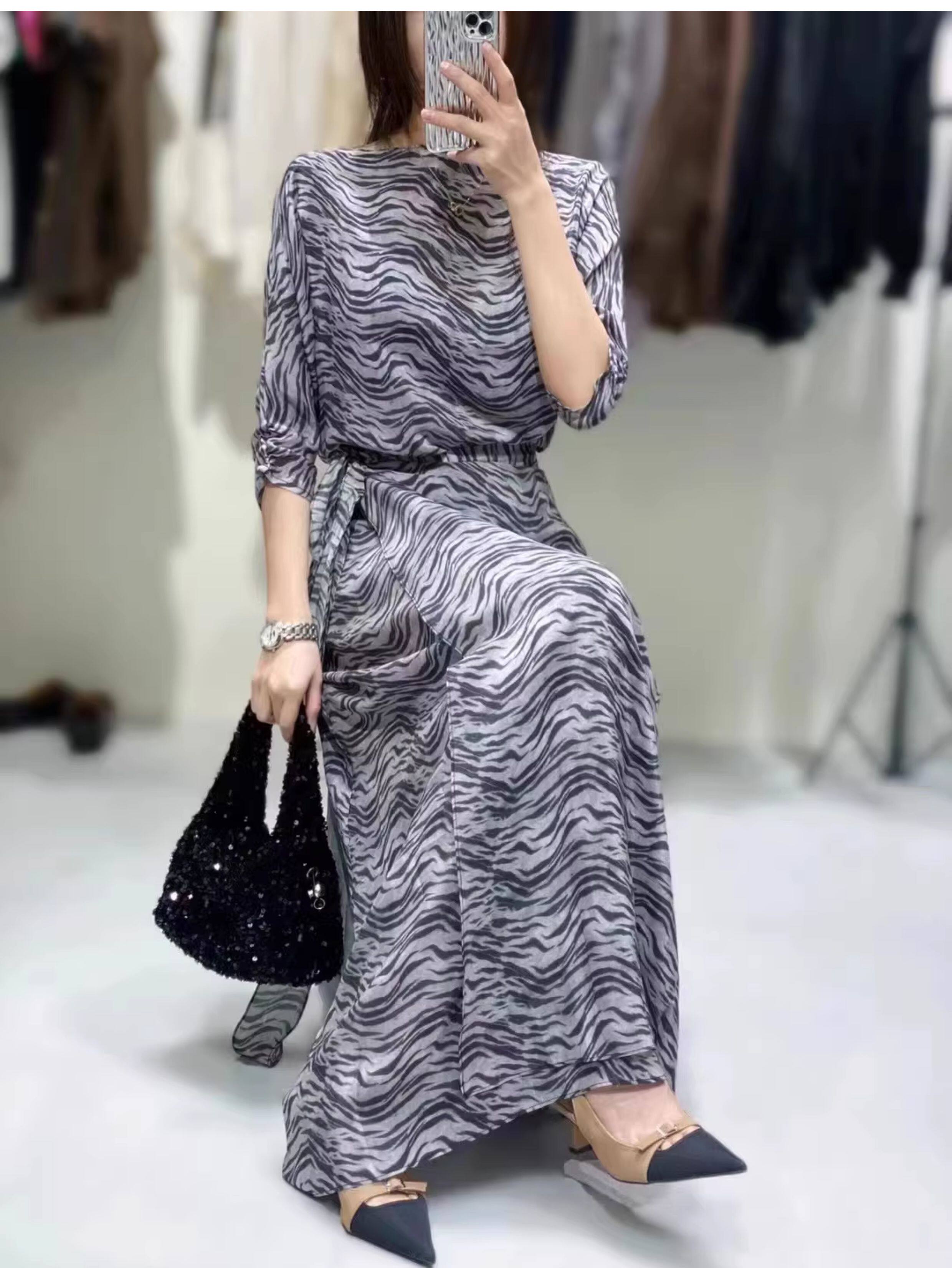 法式真絲桑蠶絲碎花連衣裙歐洲站2026夏季新款韓系帶中長款裙子女