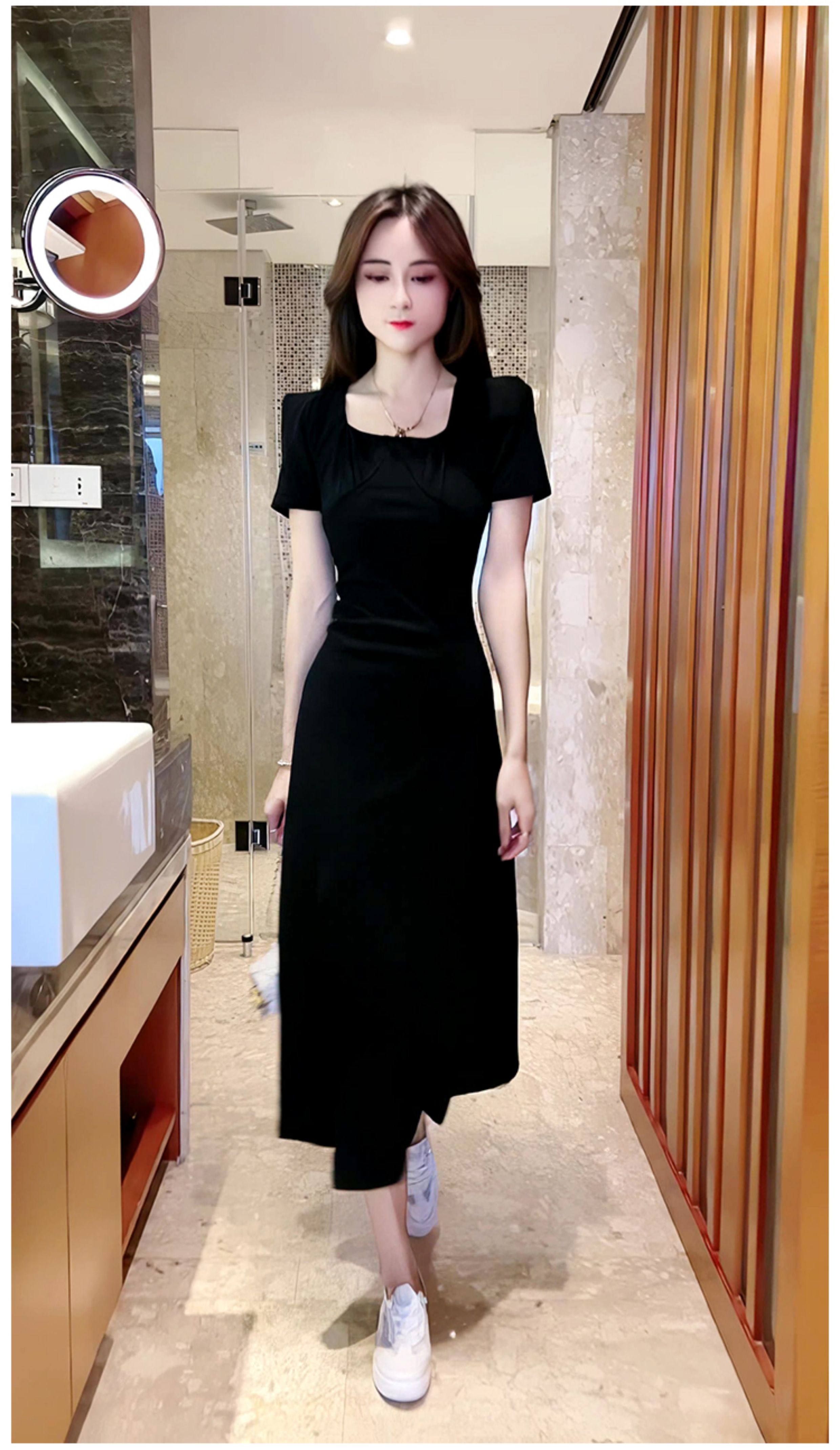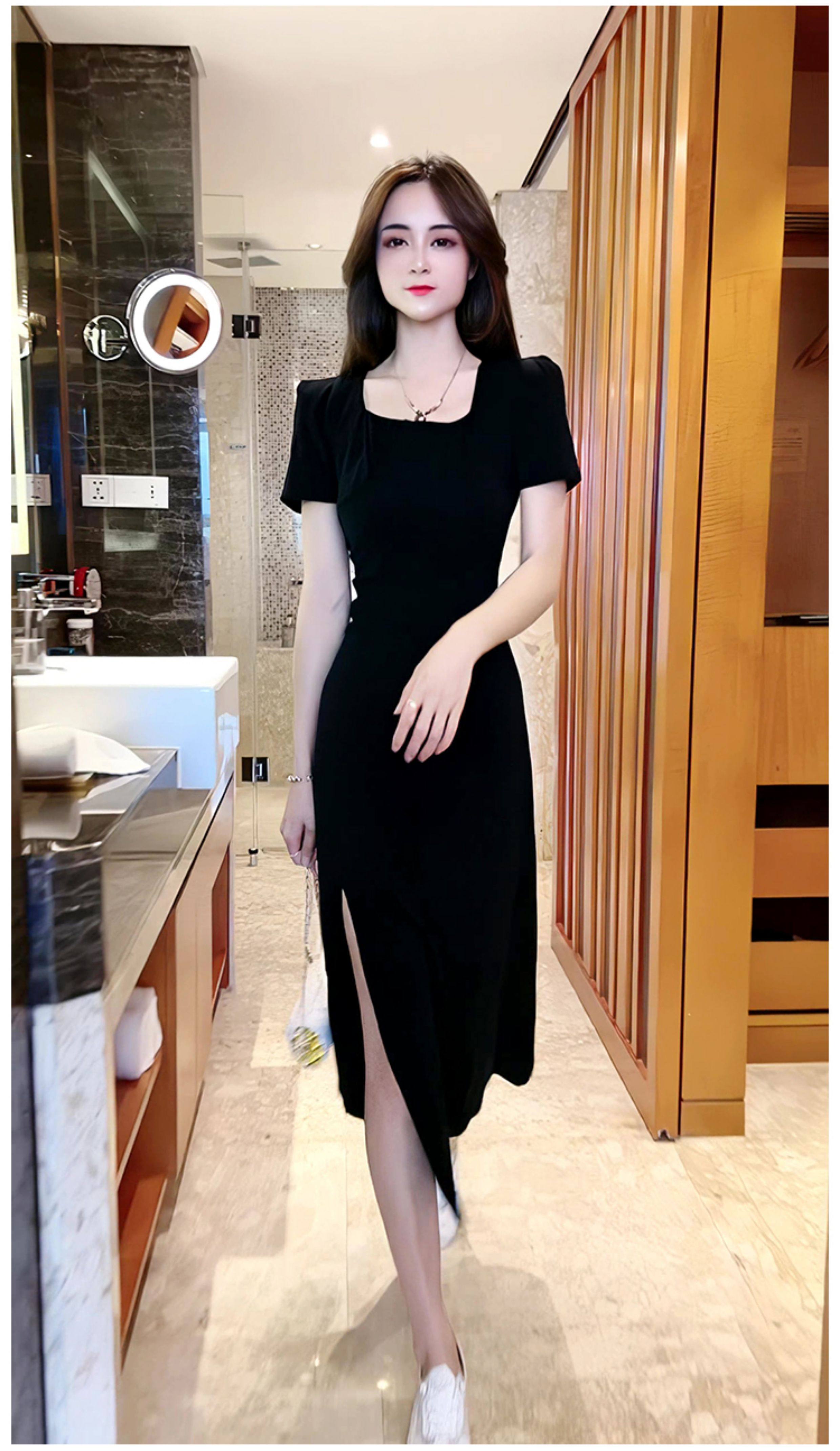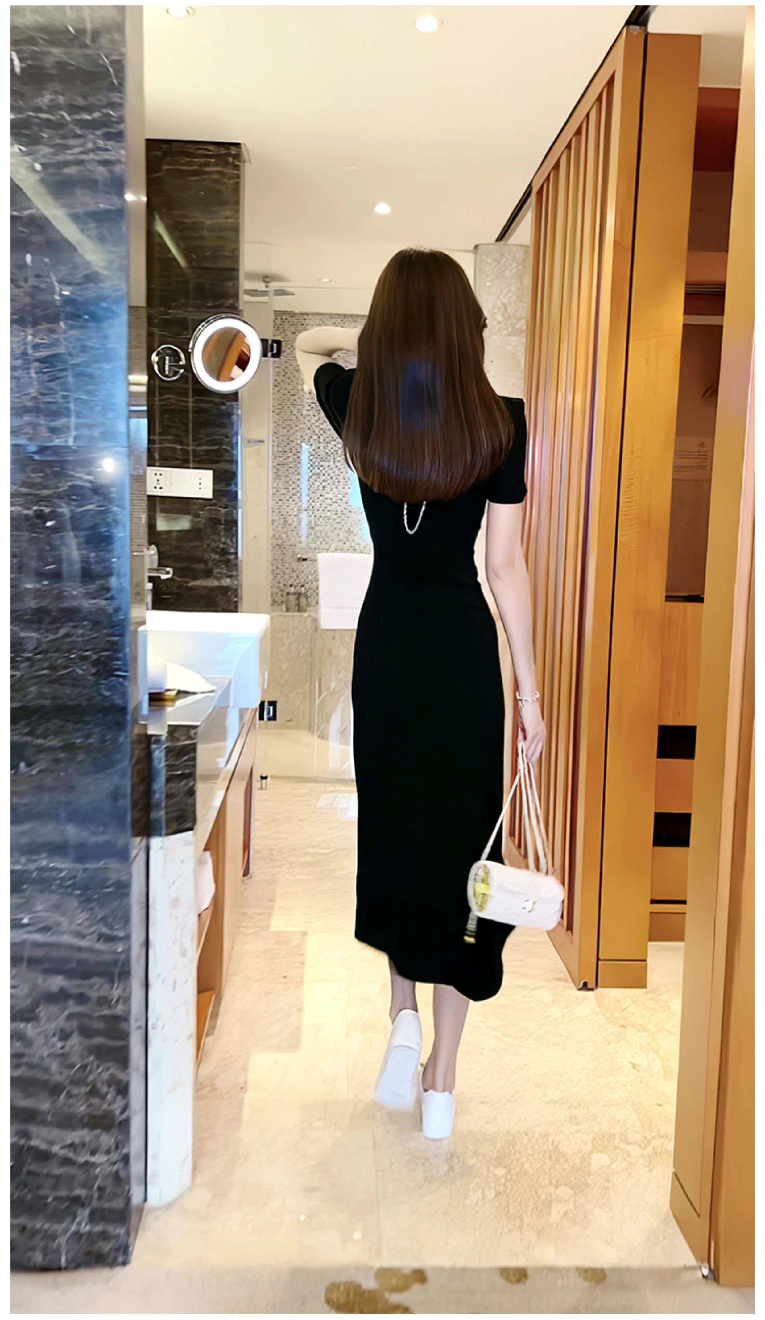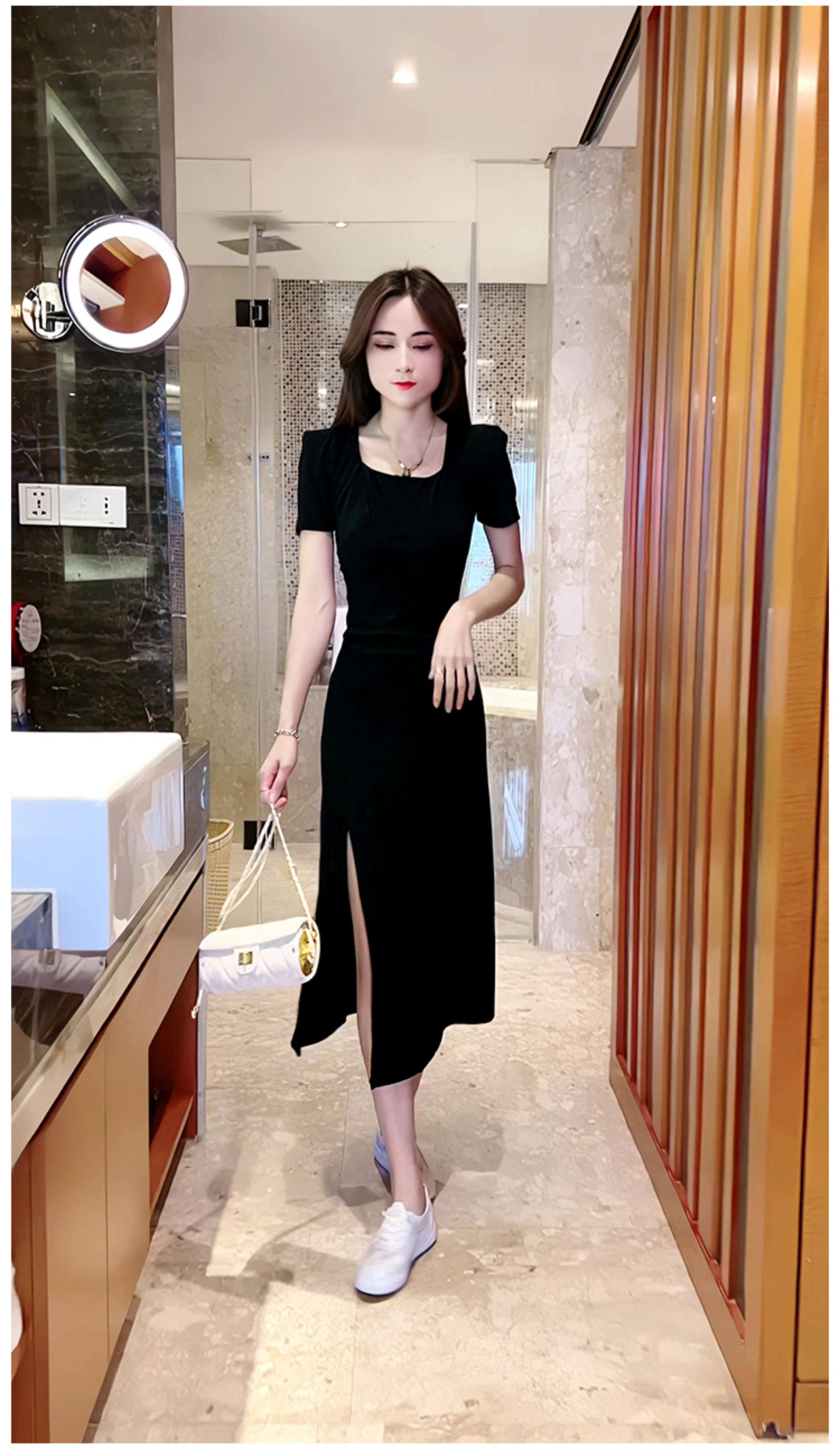 2026夏新款黑色連衣裙女收腰顯瘦氣質赫本風泡泡袖法式開叉長裙潮