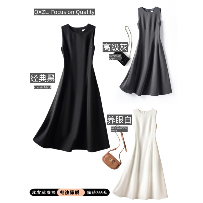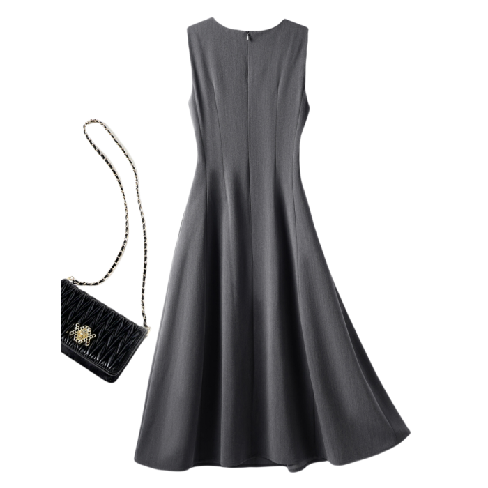 優雅氣質背心連衣裙女2025春夏新款高級感灰色無袖收腰中長a字裙