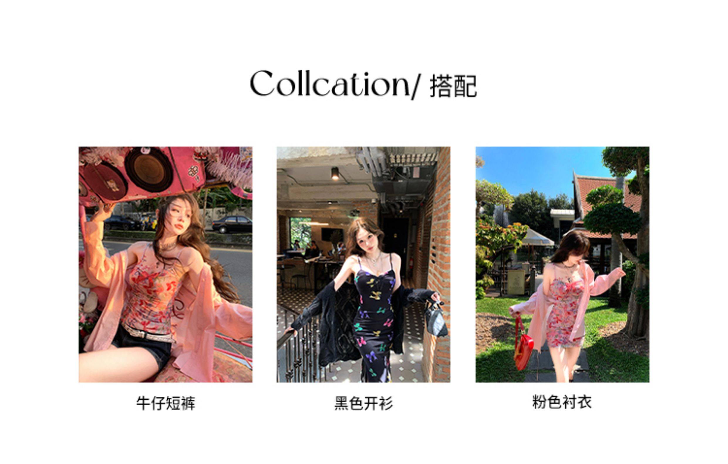 八蓋pinky piggy 蝴蝶逃逸 兩色印花連衣裙女甜辣吊帶上衣包臀裙