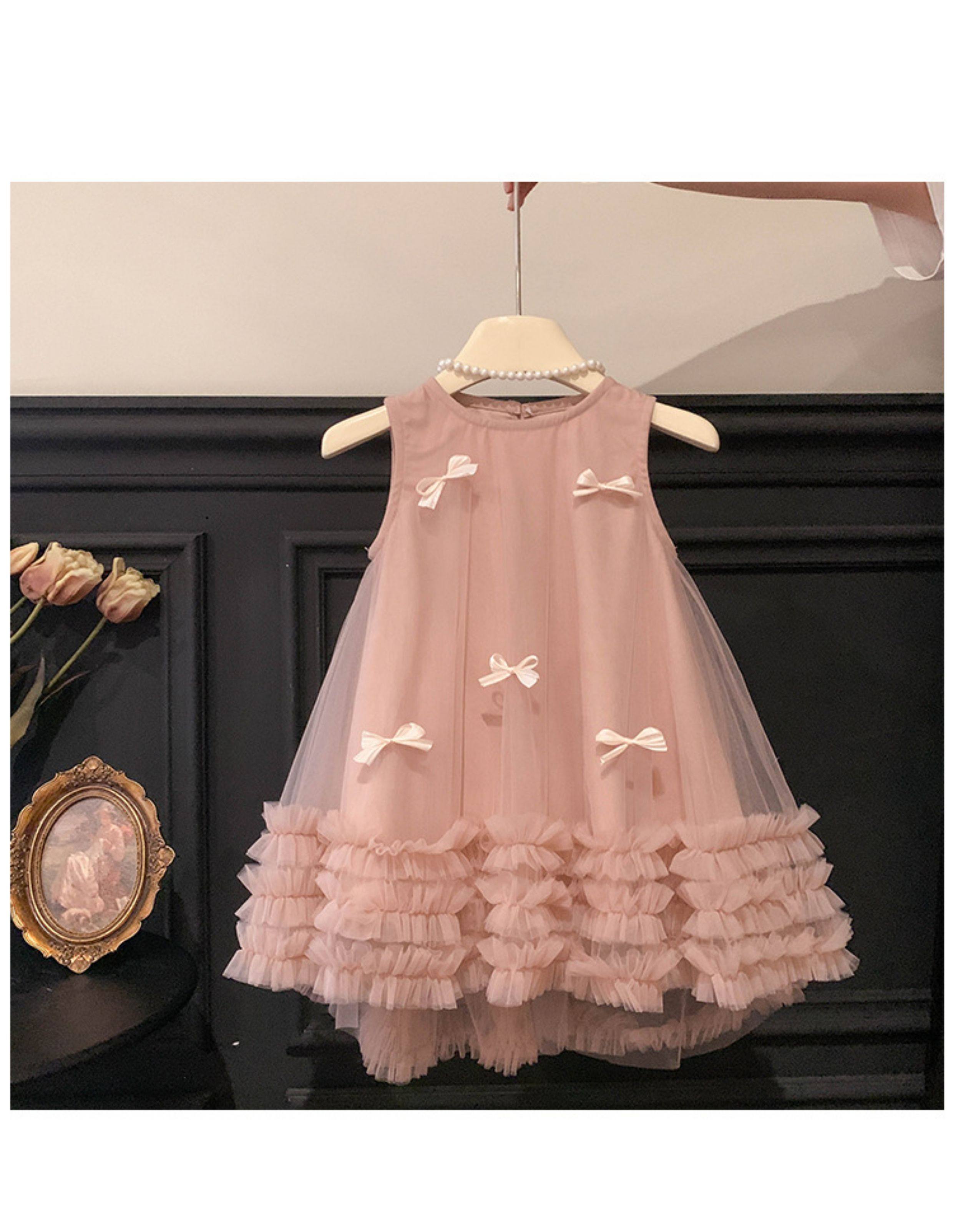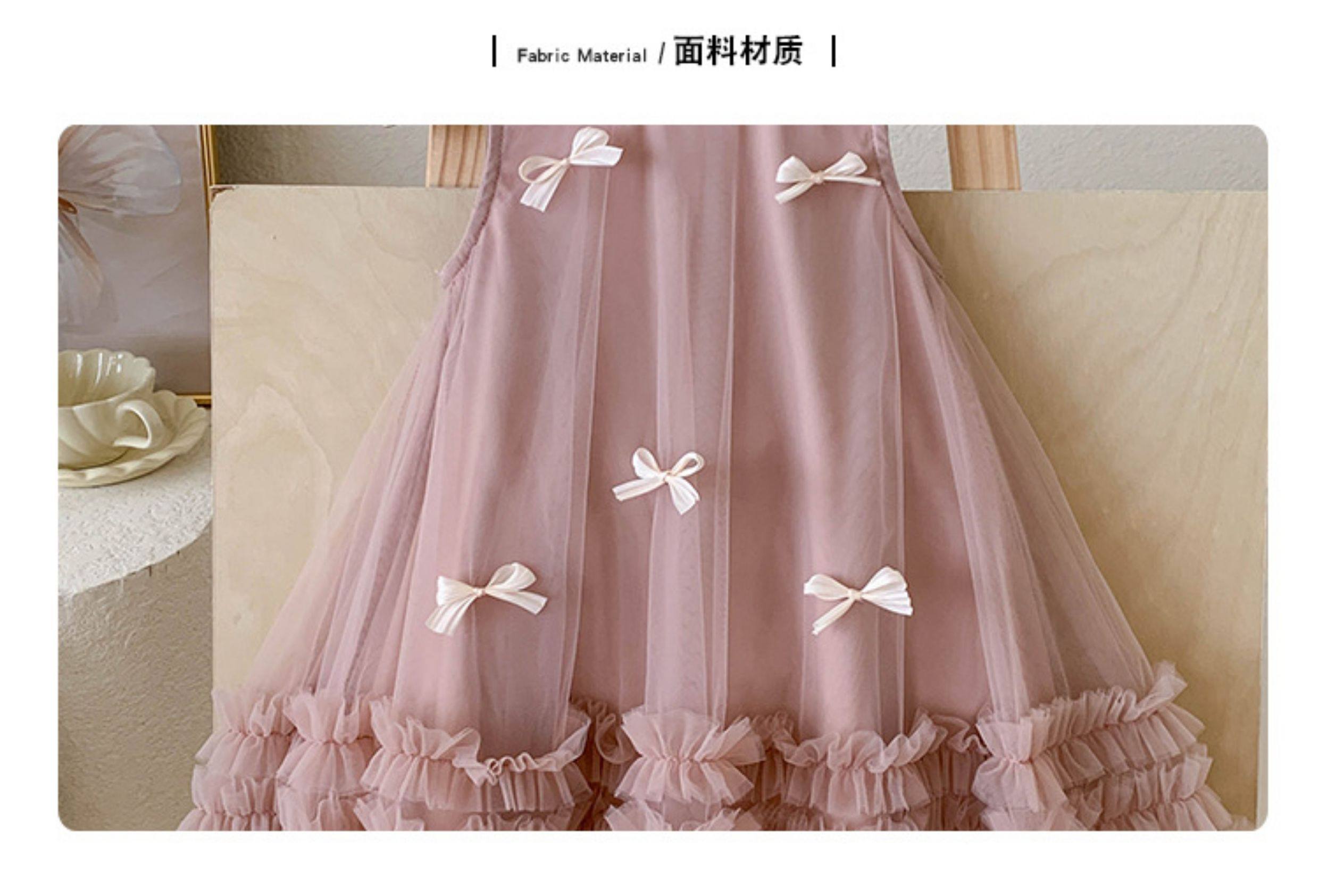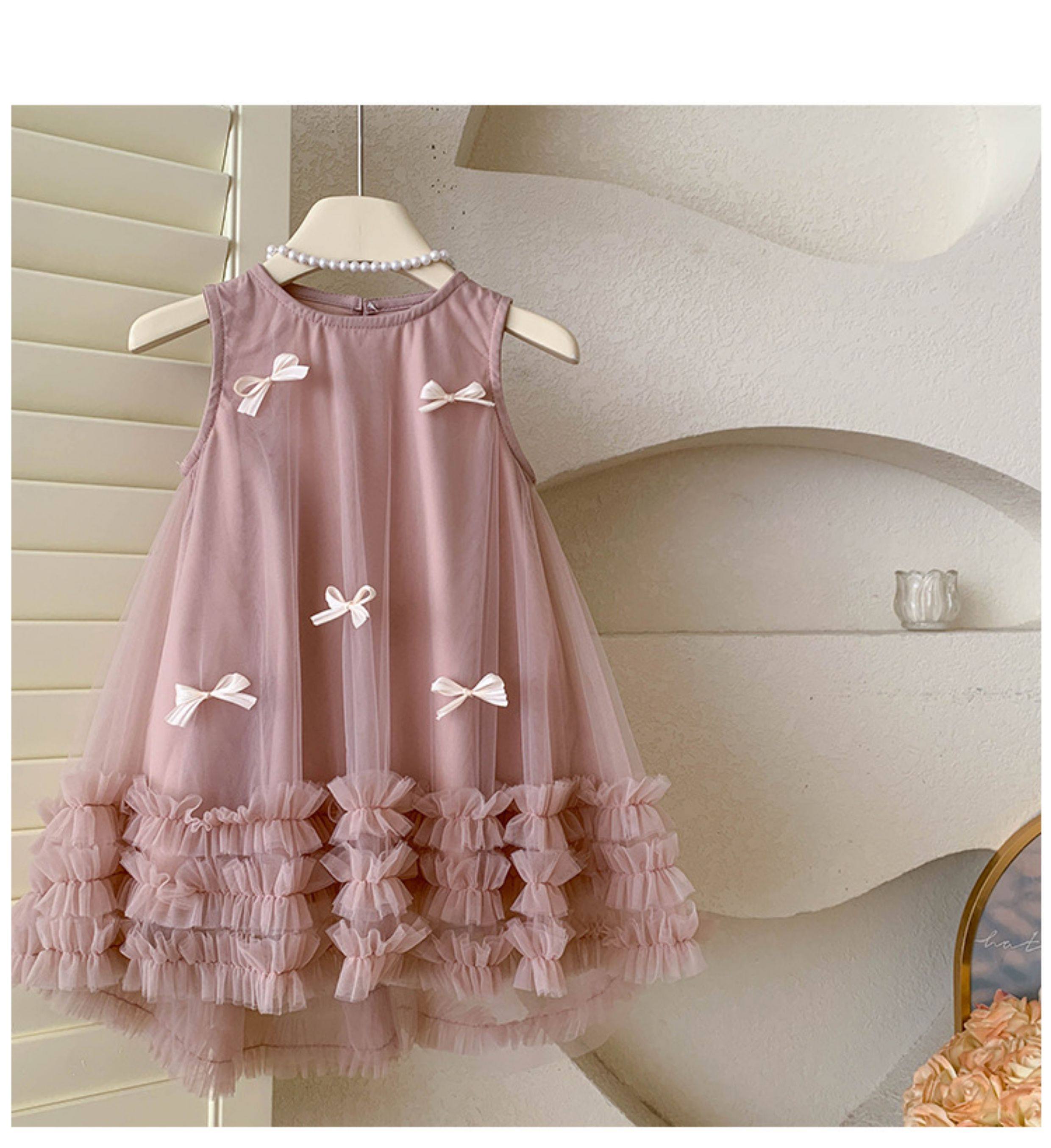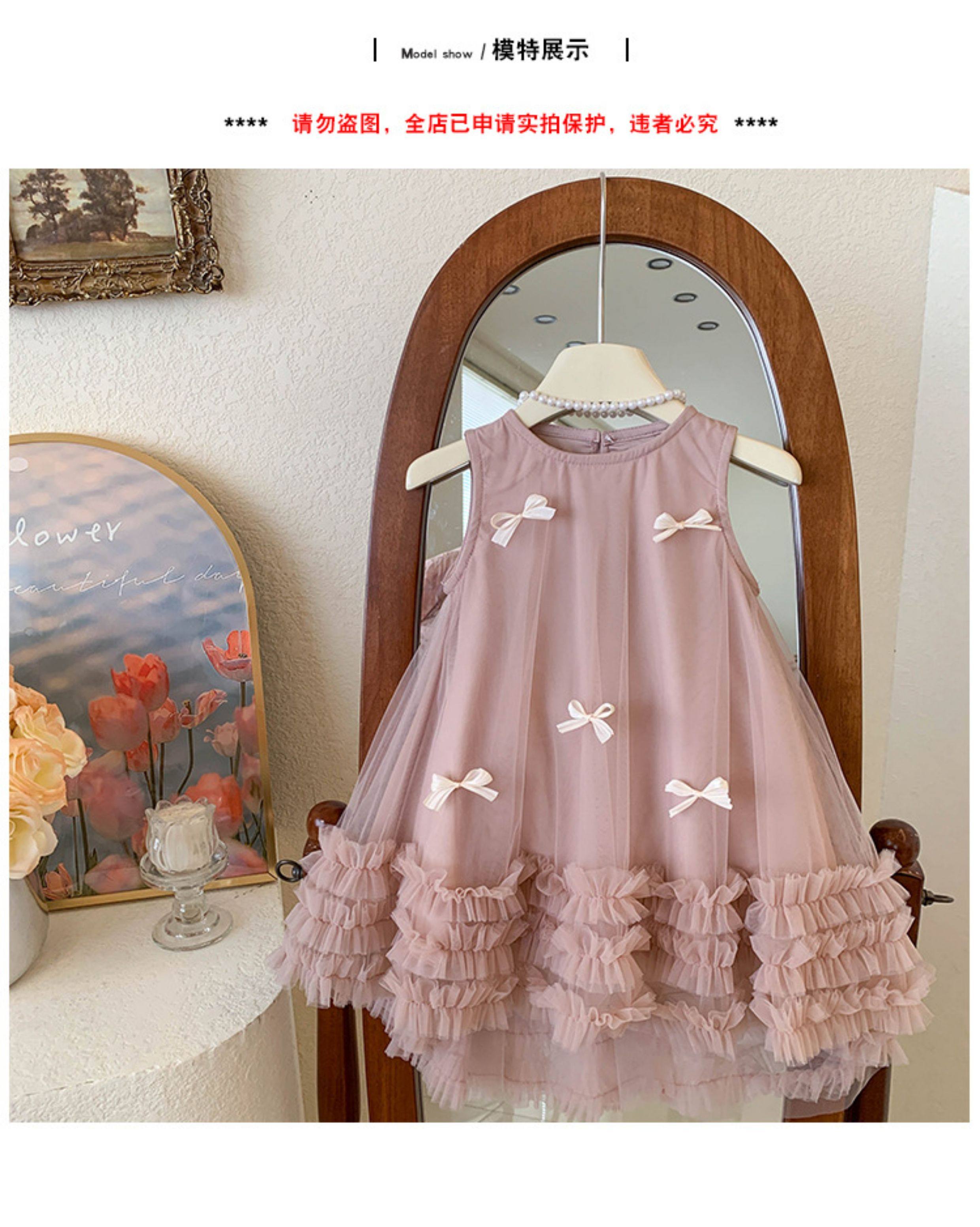 女童無袖立體蝴蝶結網紗裙2025夏裝女寶女童甜美連衣裙子