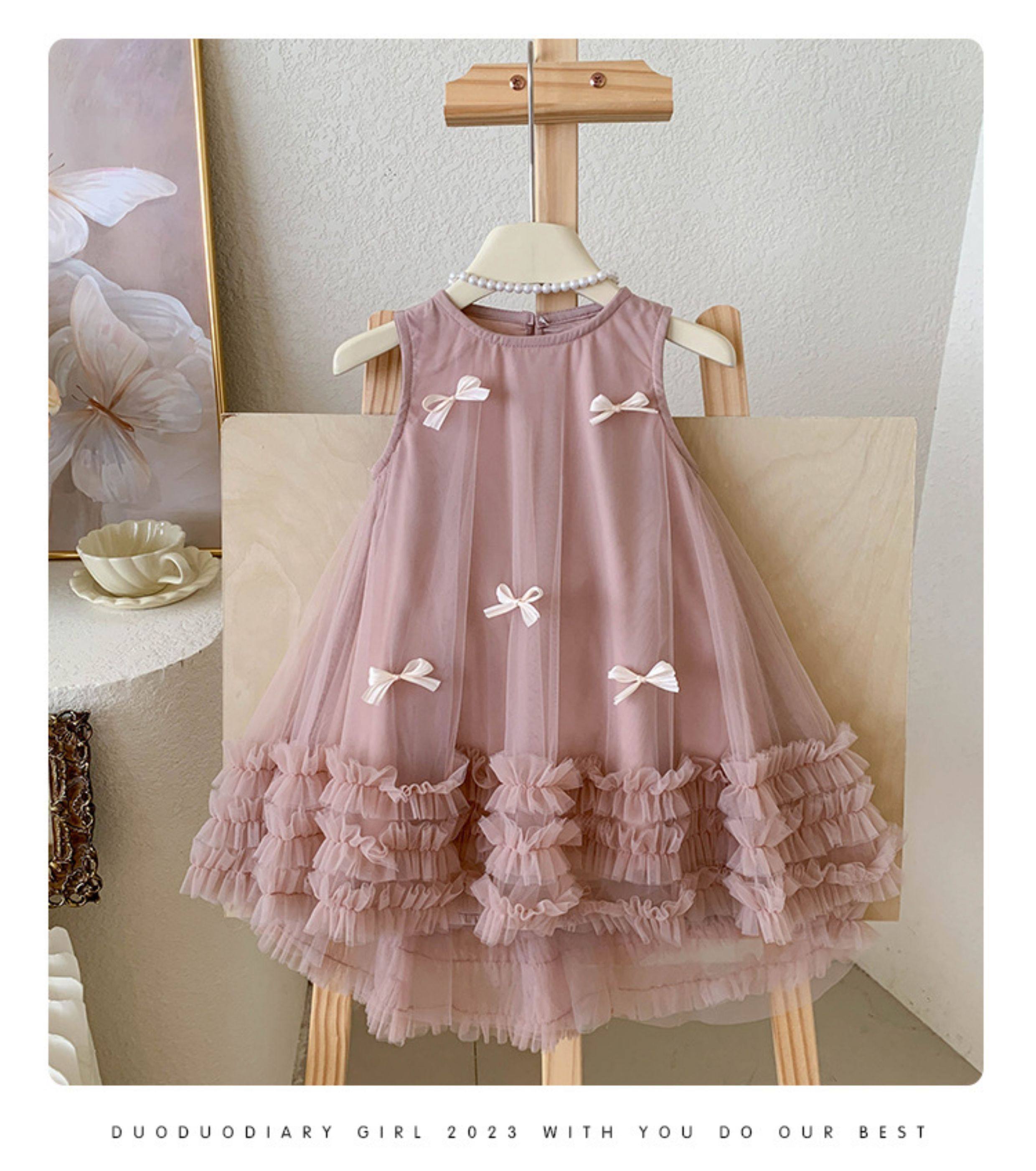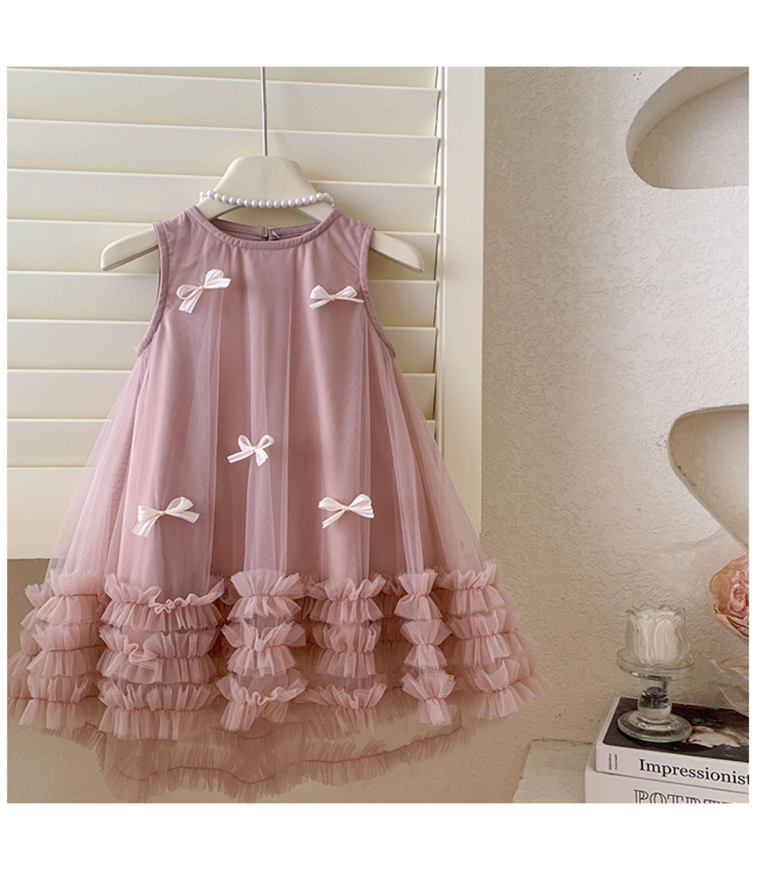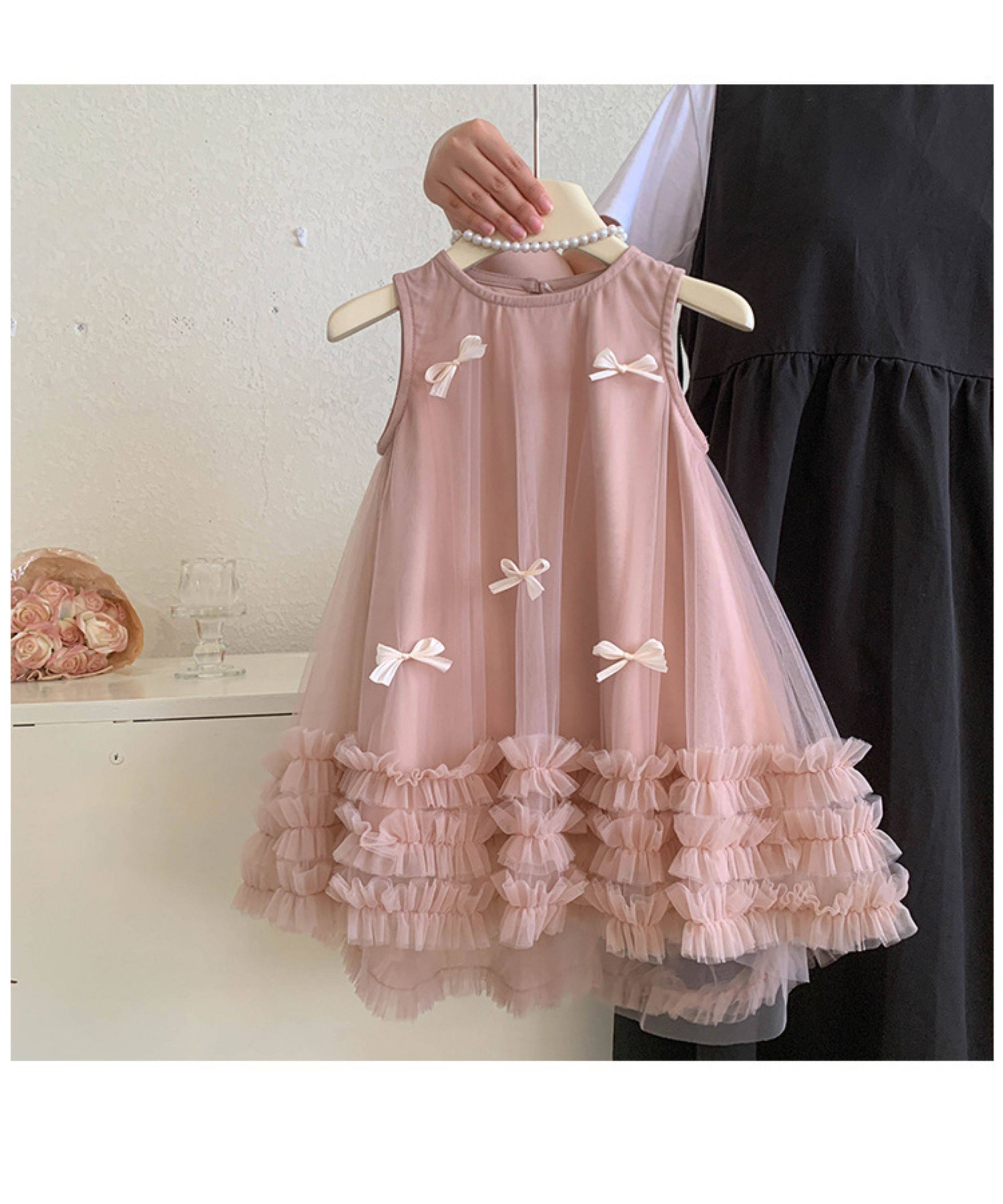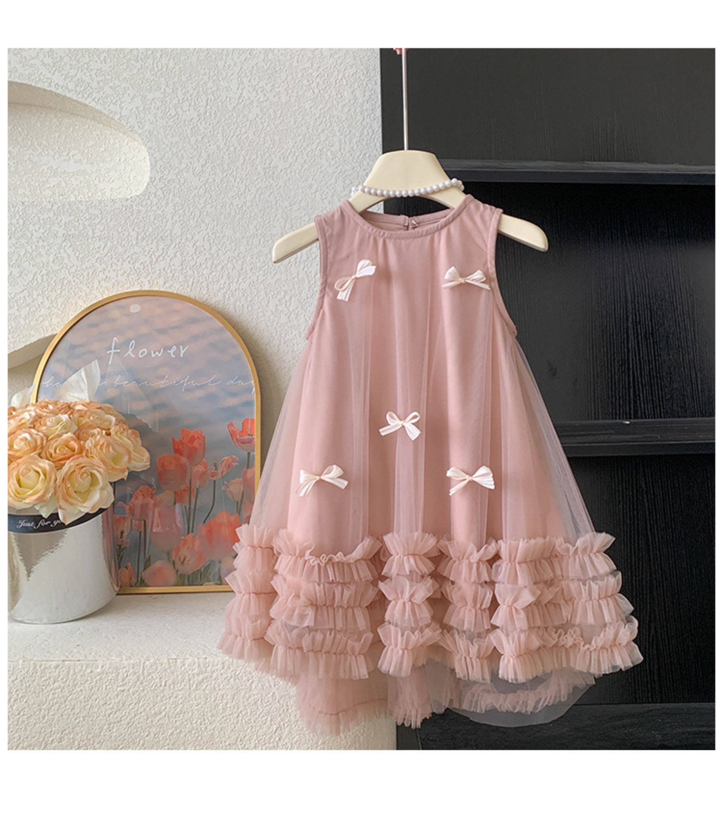 女童無袖立體蝴蝶結網紗裙2025夏裝女寶女童甜美連衣裙子
