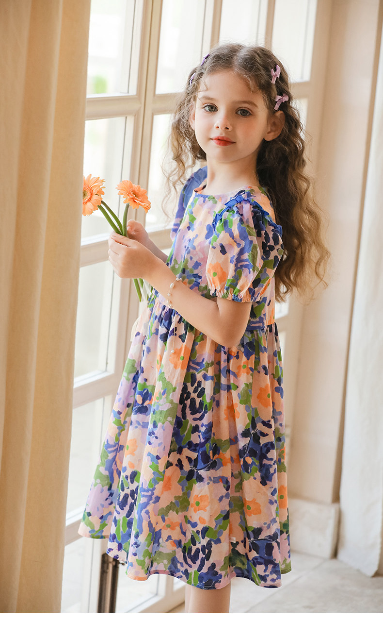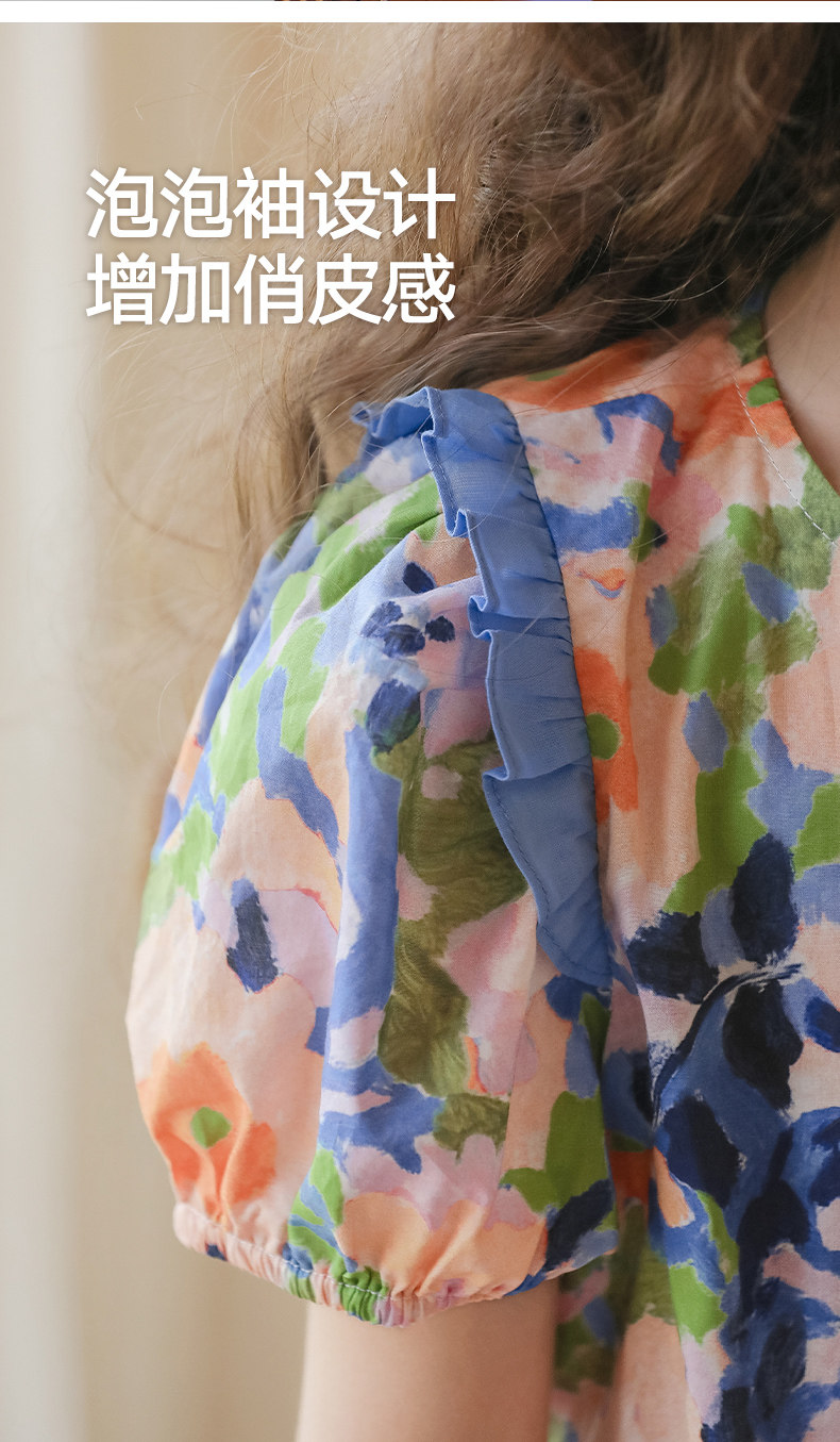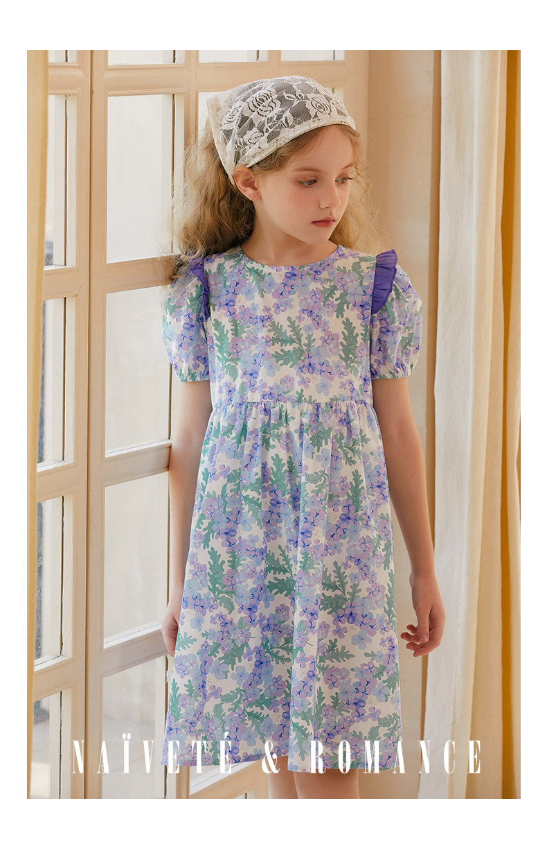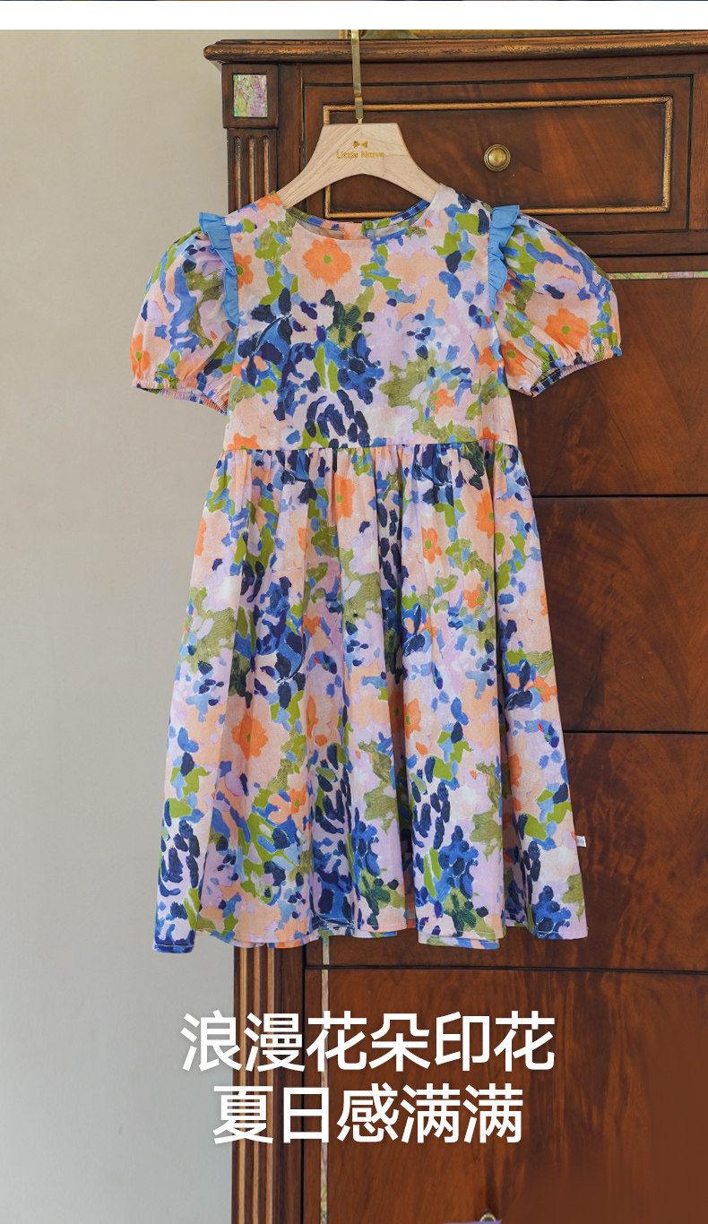 LittleNaive連衣裙女童浪漫甜美碎花裙子中大童度假風法式連衣裙